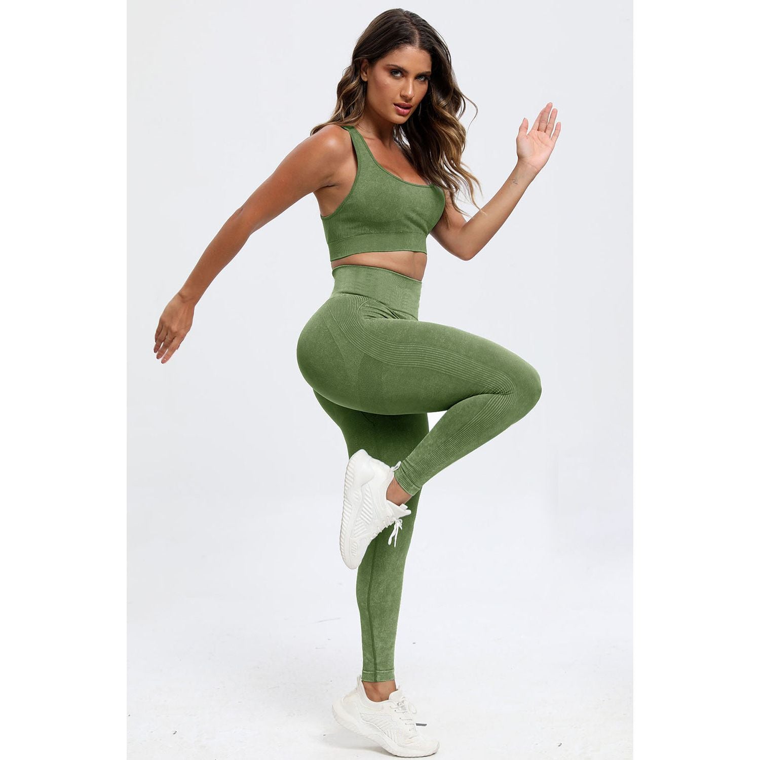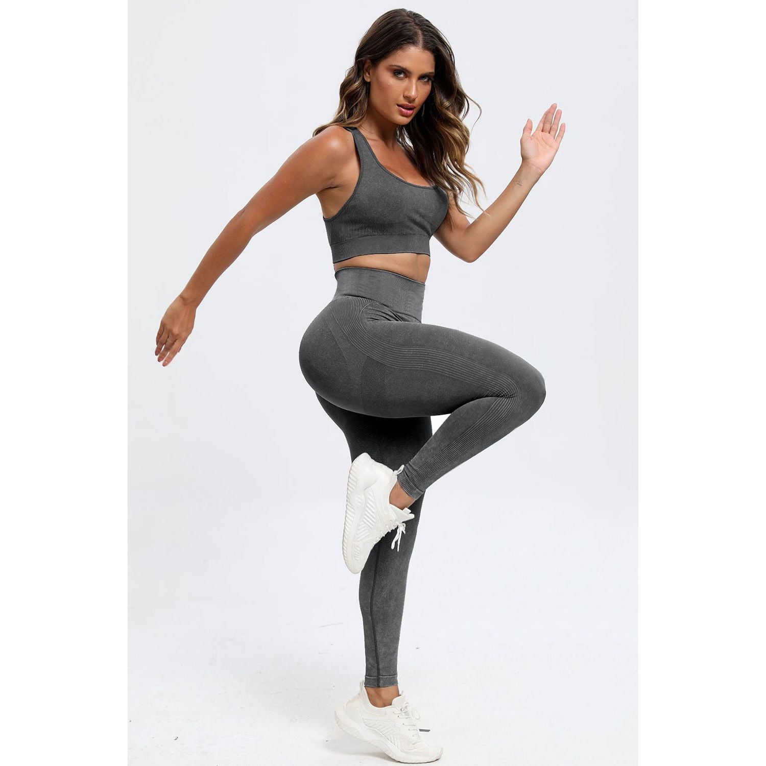 3 Piece Washed Square Neck Wide Strap Active Set