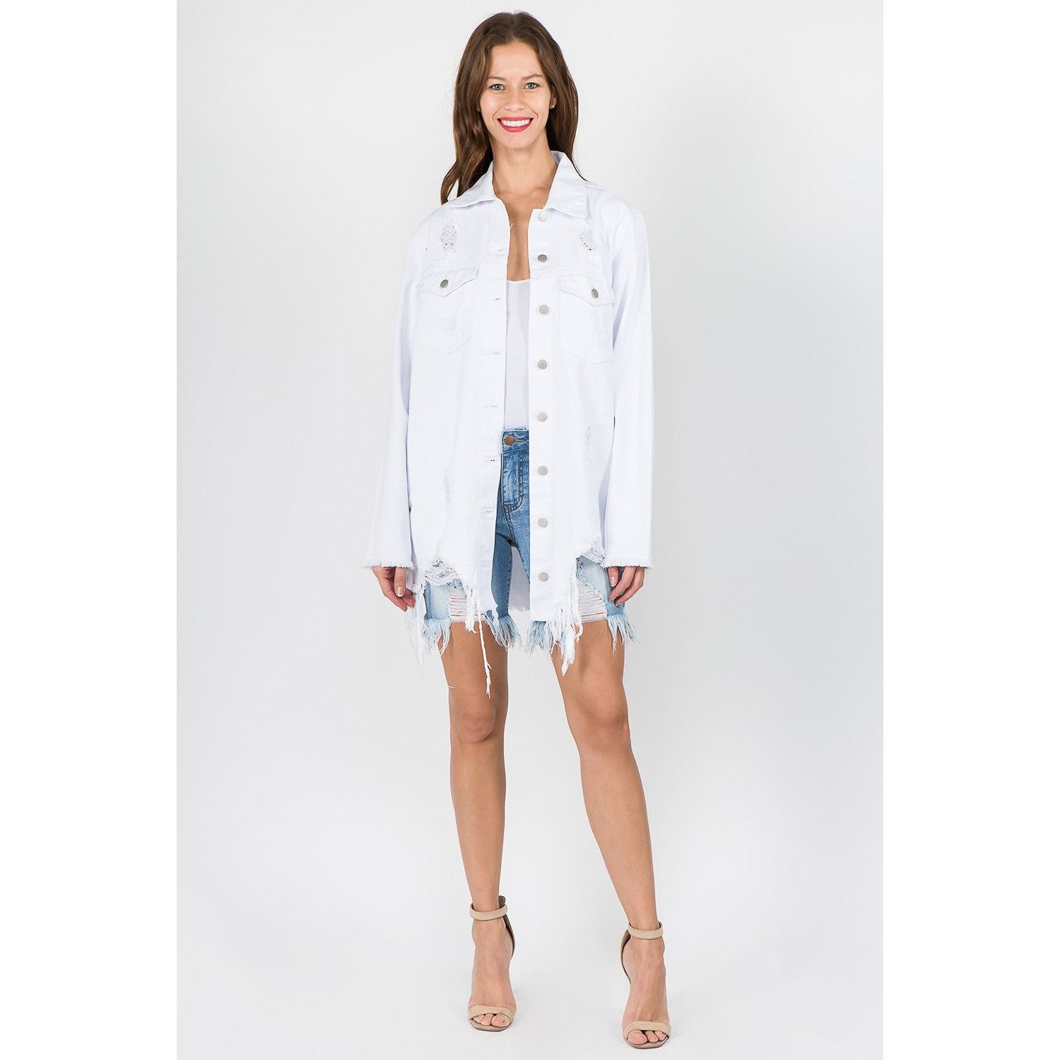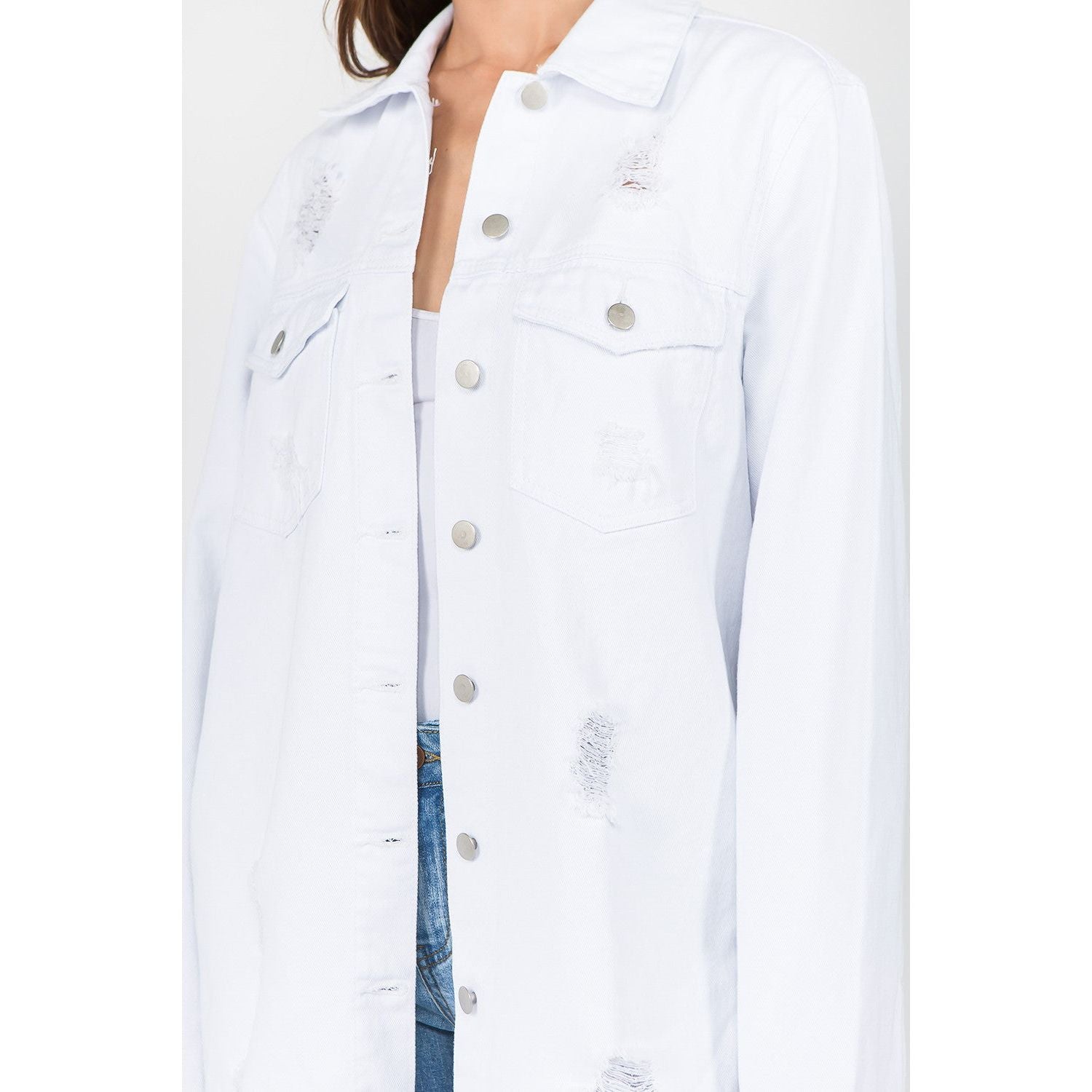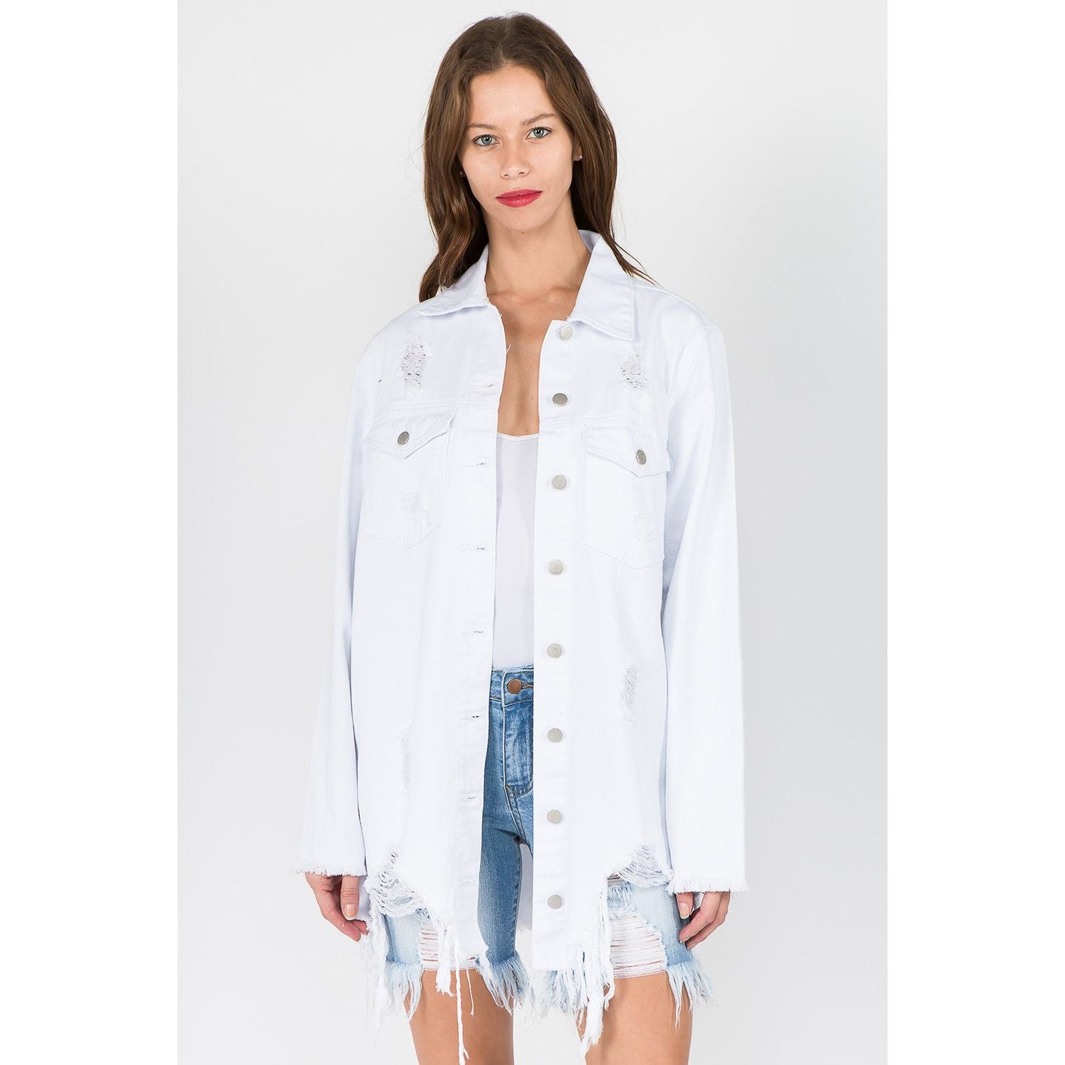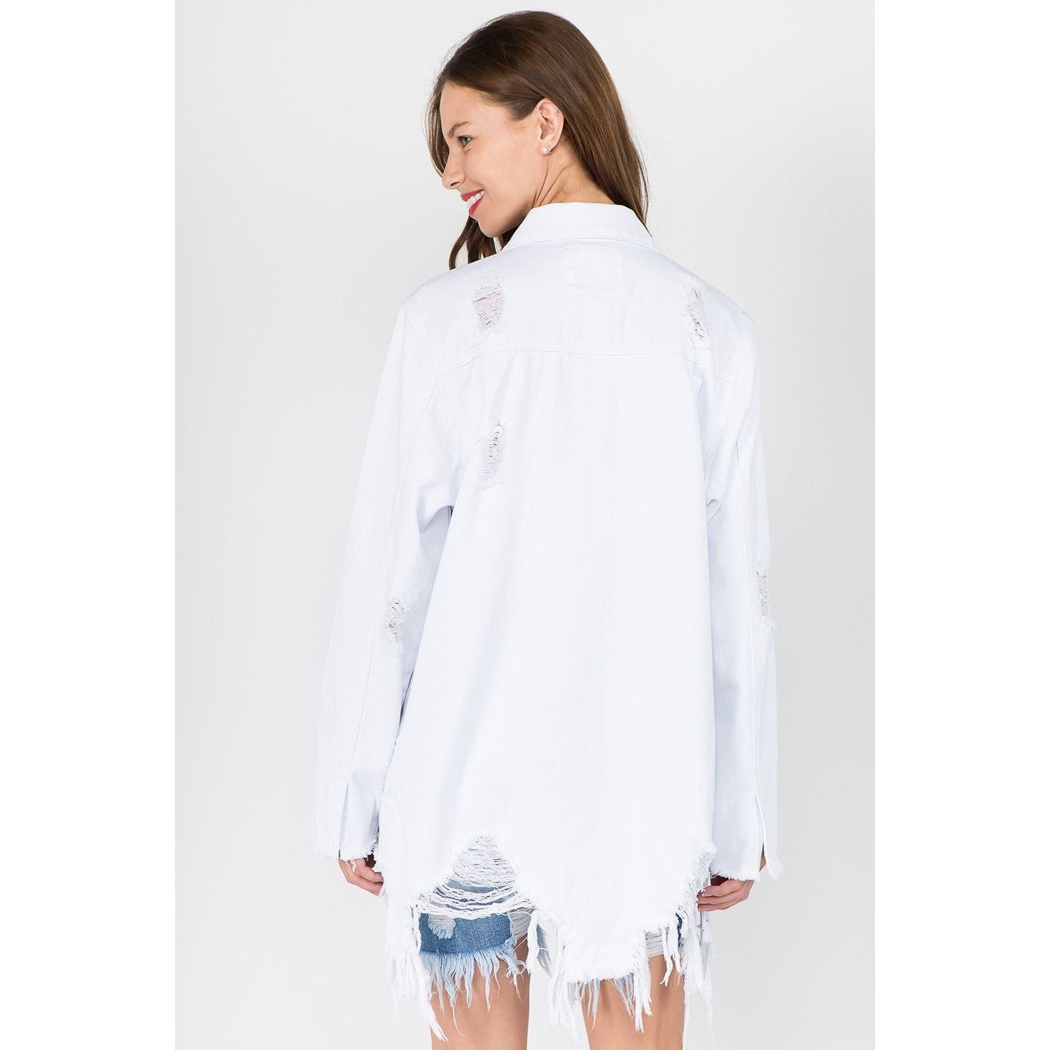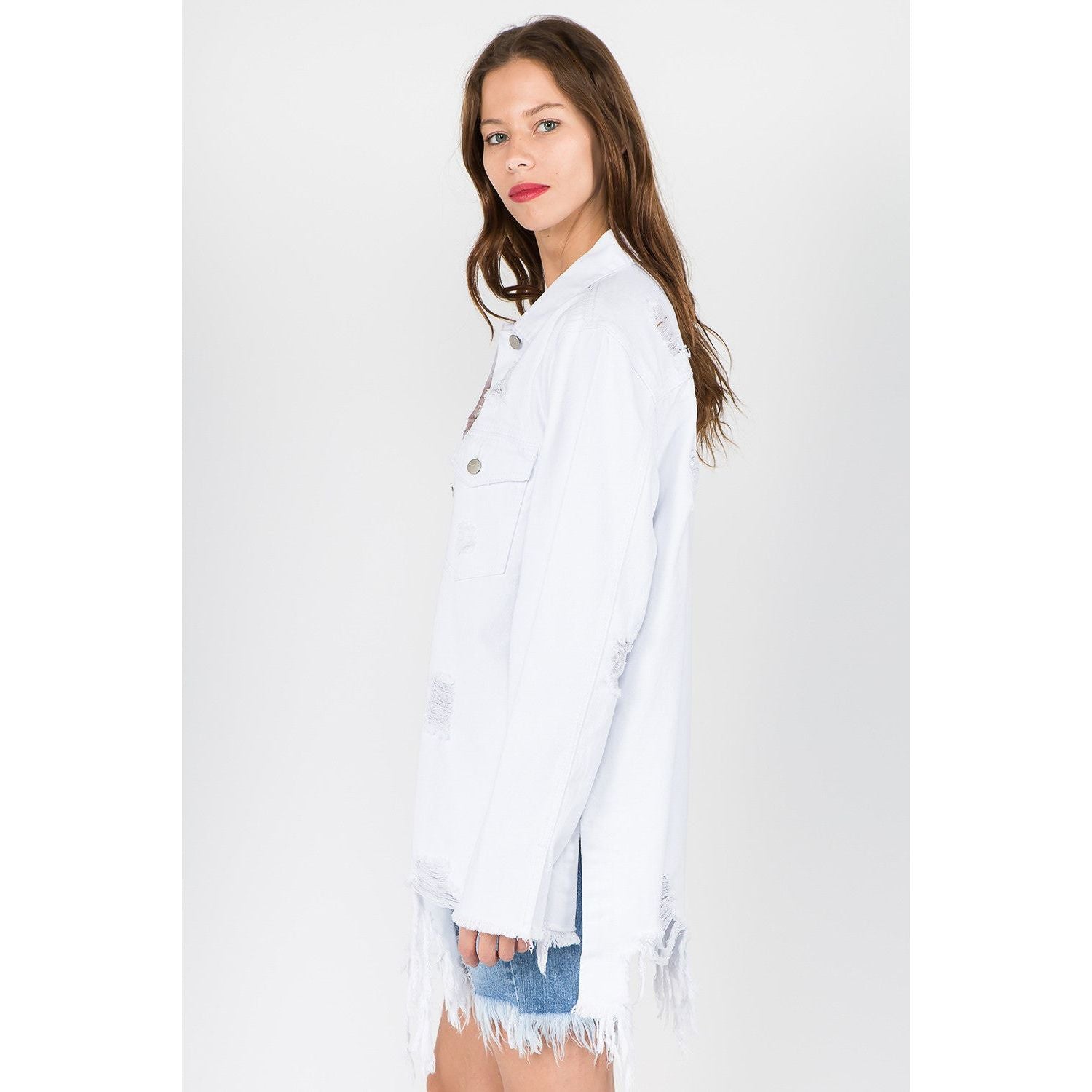 American Bazi Distressed Frayed Hem Denim Jacket