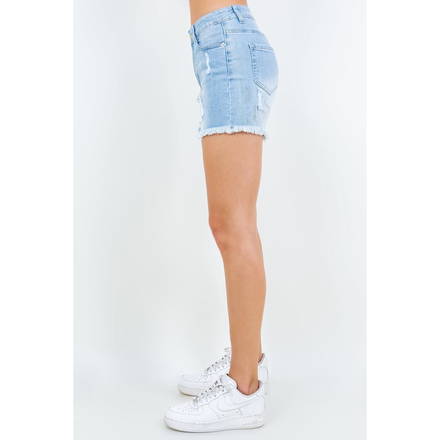 American Bazi High Waist Distressed Frayed Denim Shorts