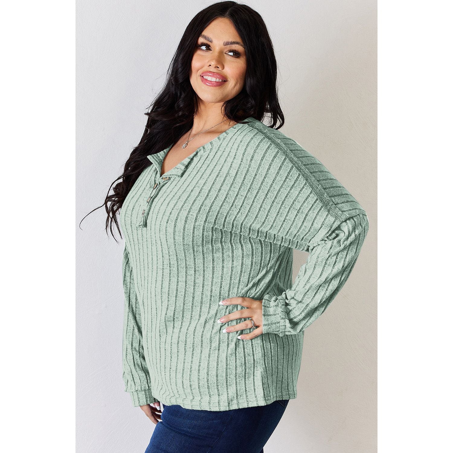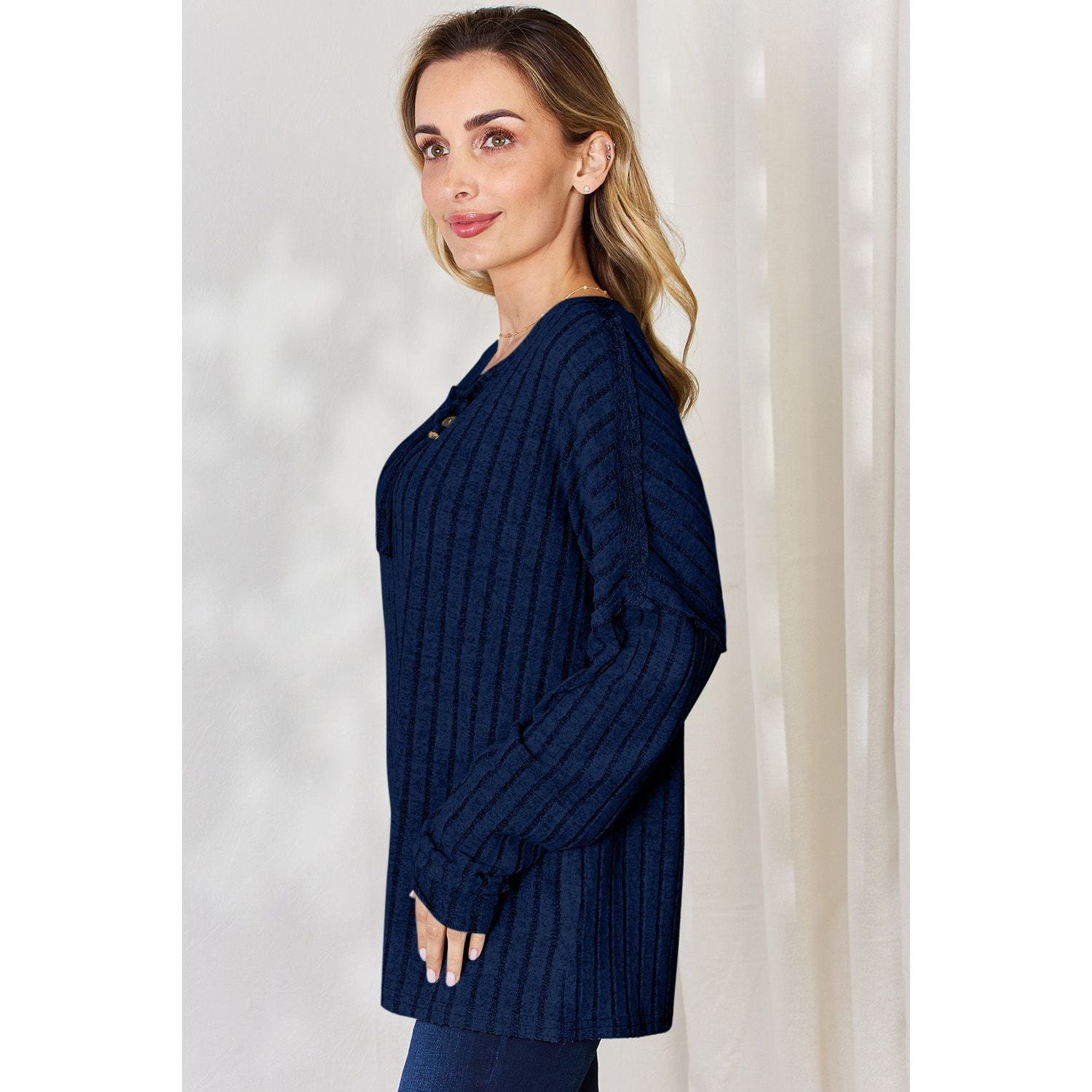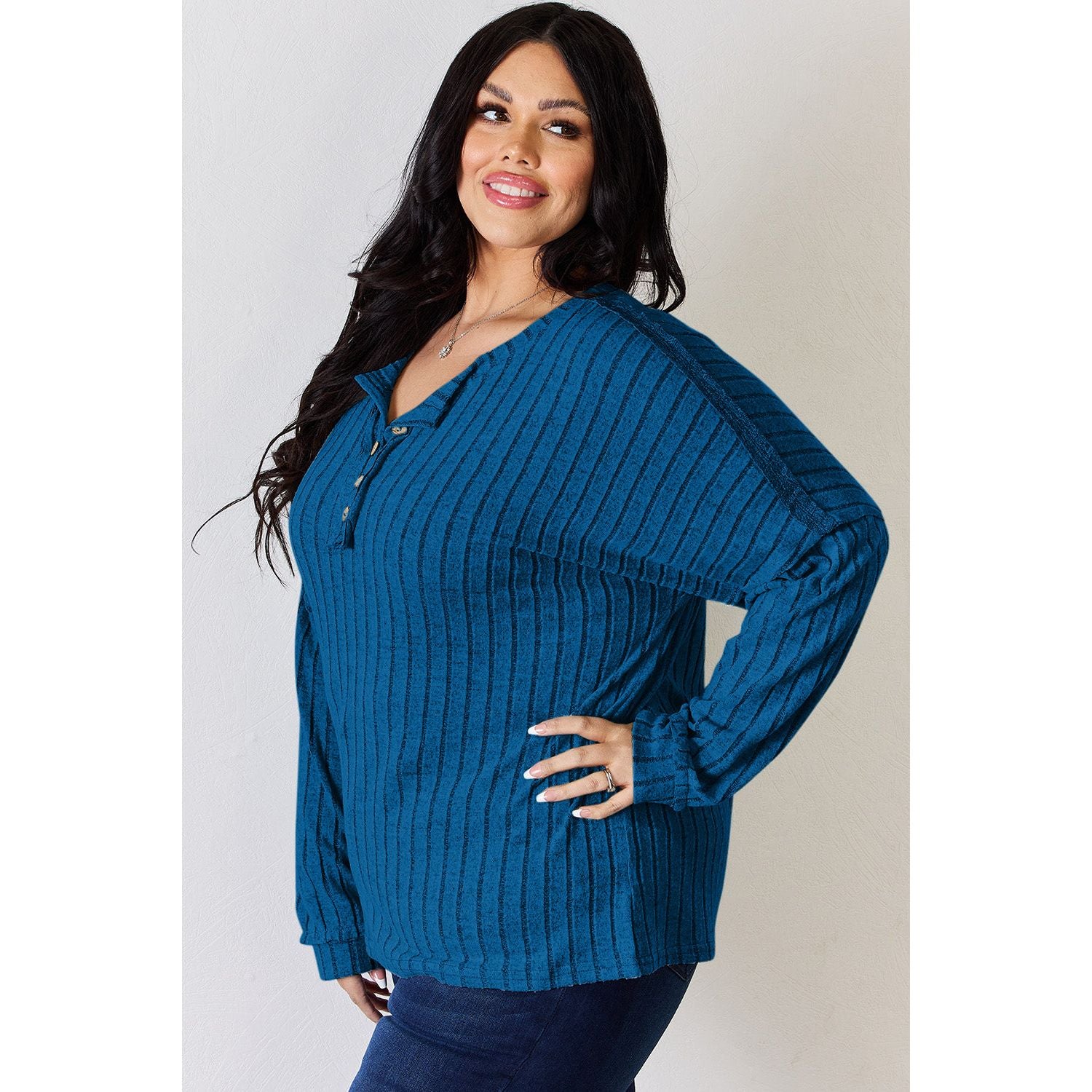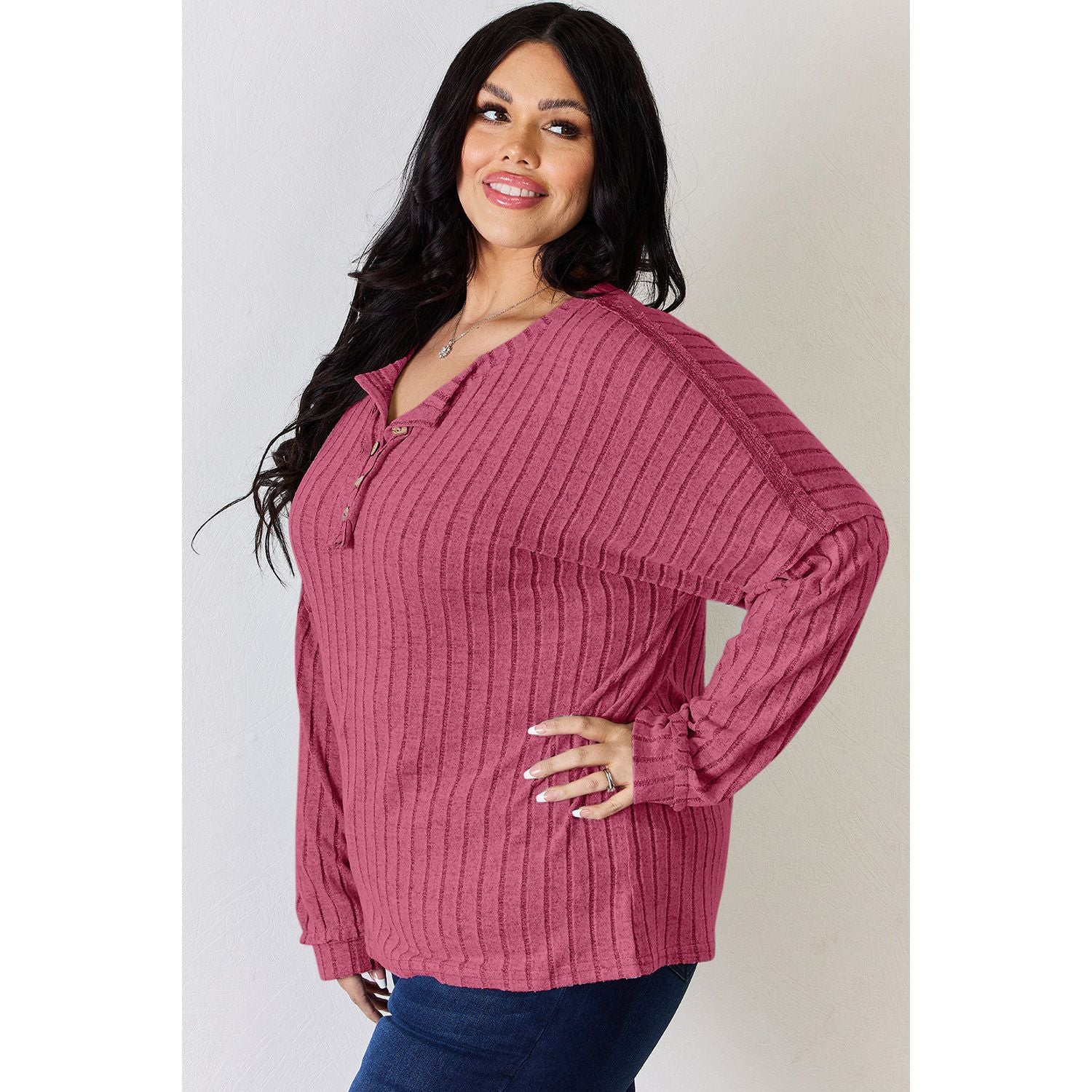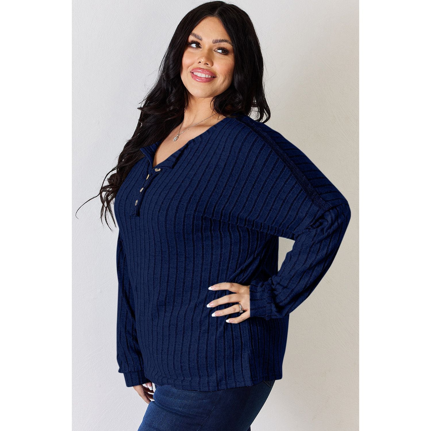 Basic Bae Full Size Ribbed Half Button Long Sleeve T-Shirt