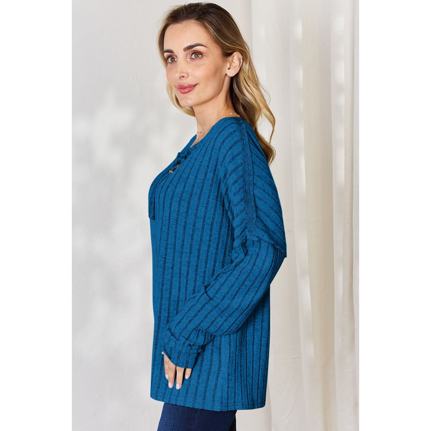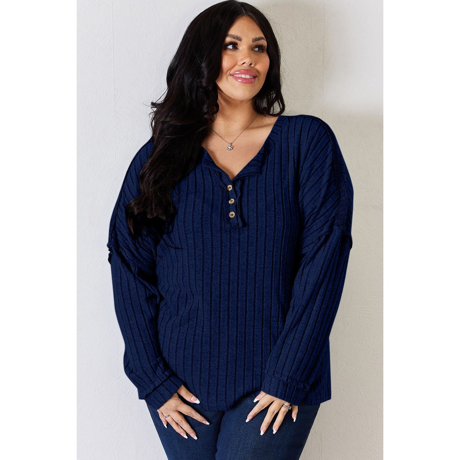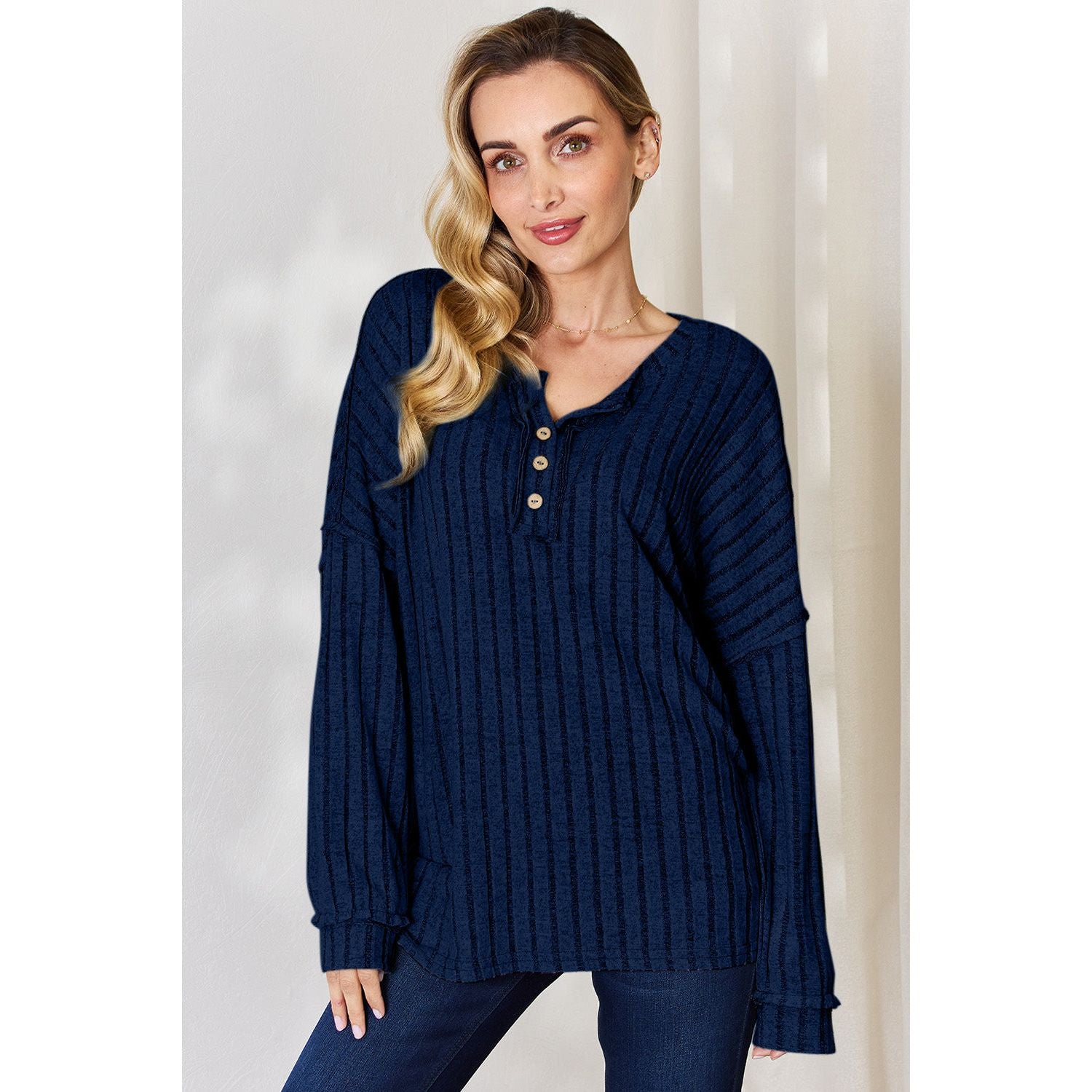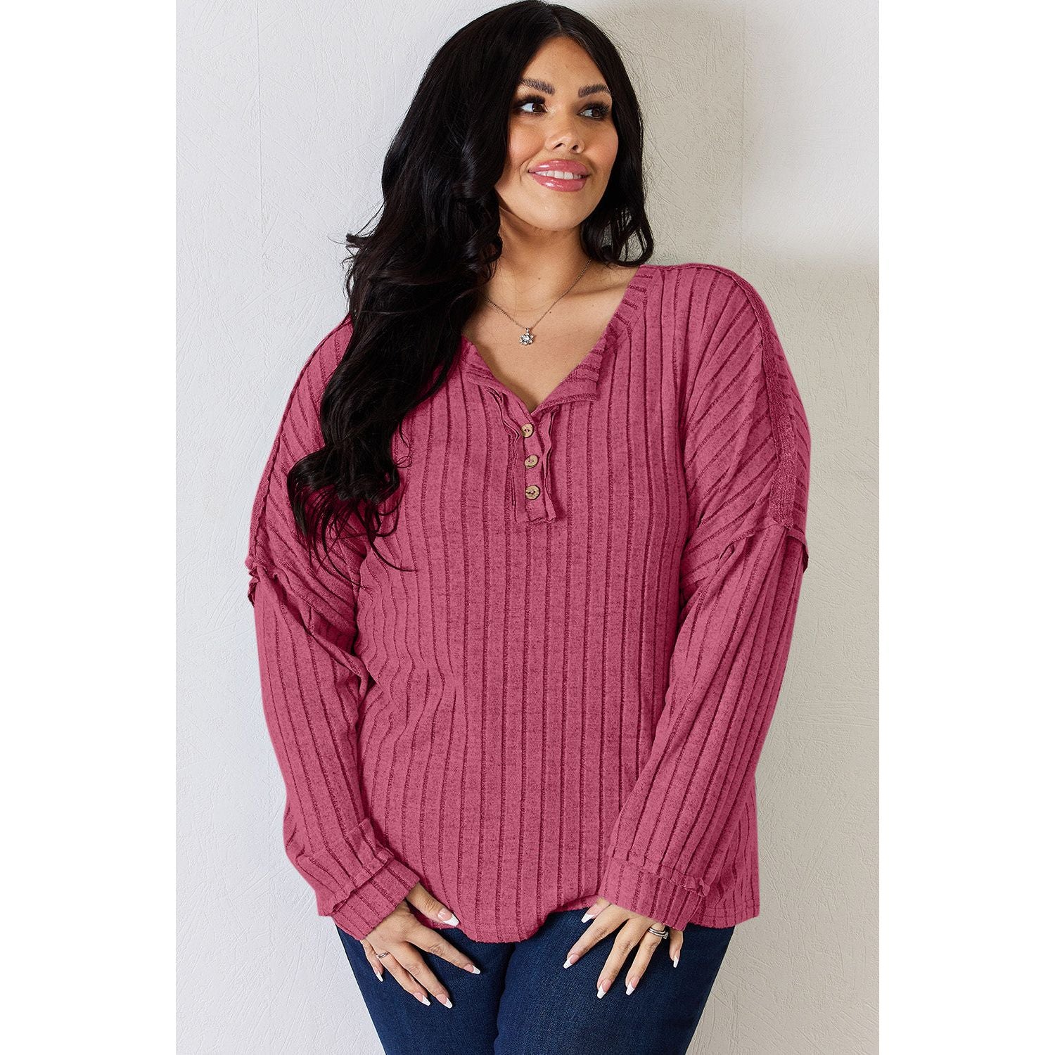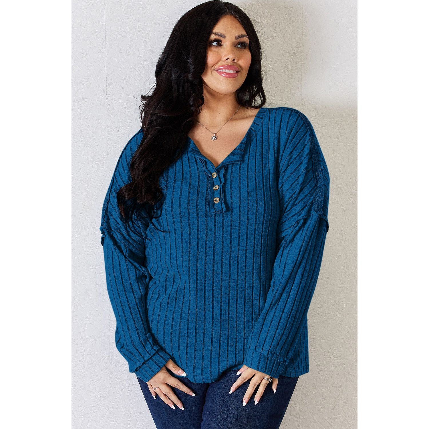 Basic Bae Full Size Ribbed Half Button Long Sleeve T-Shirt