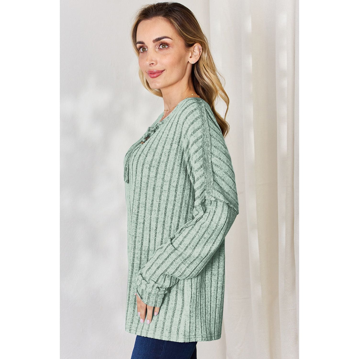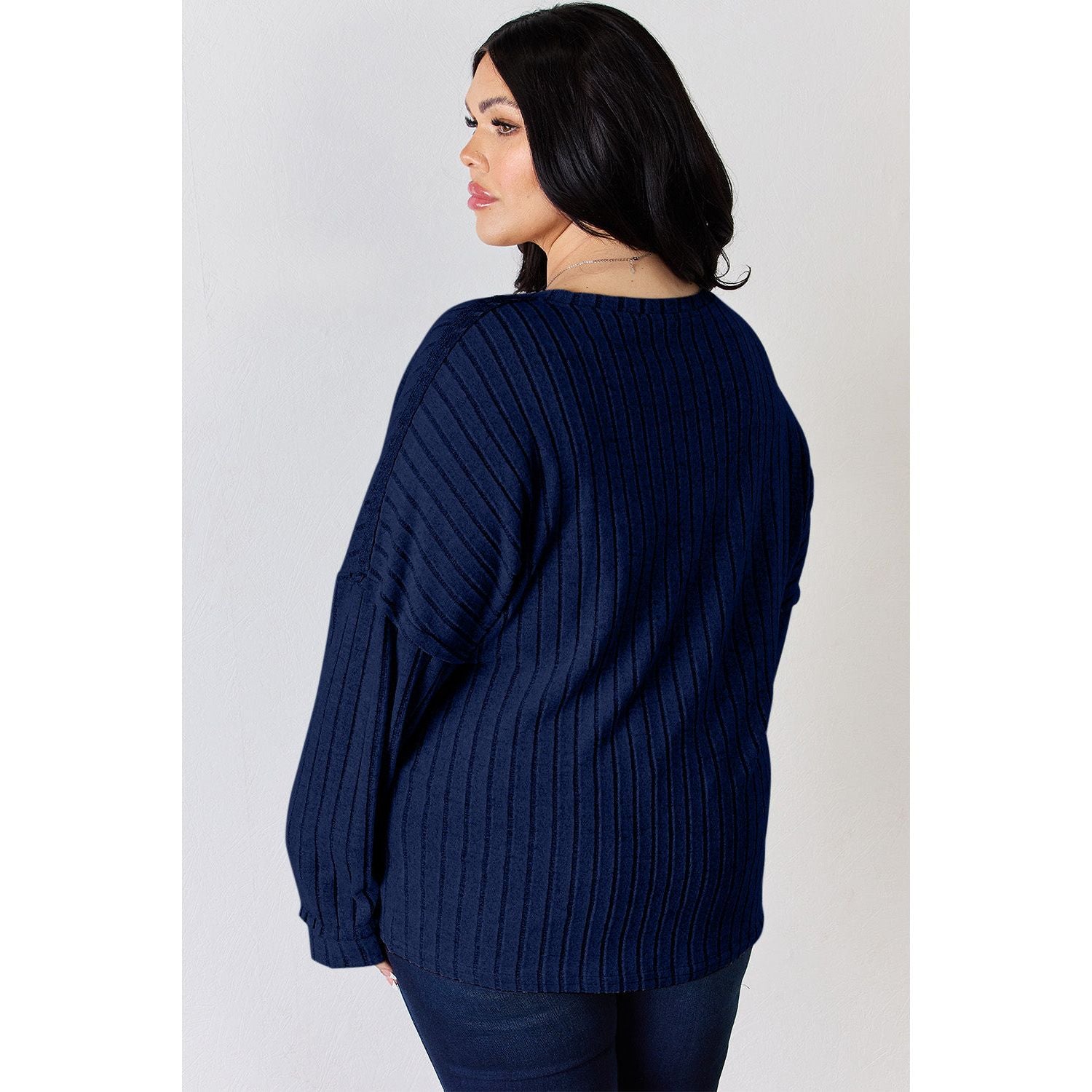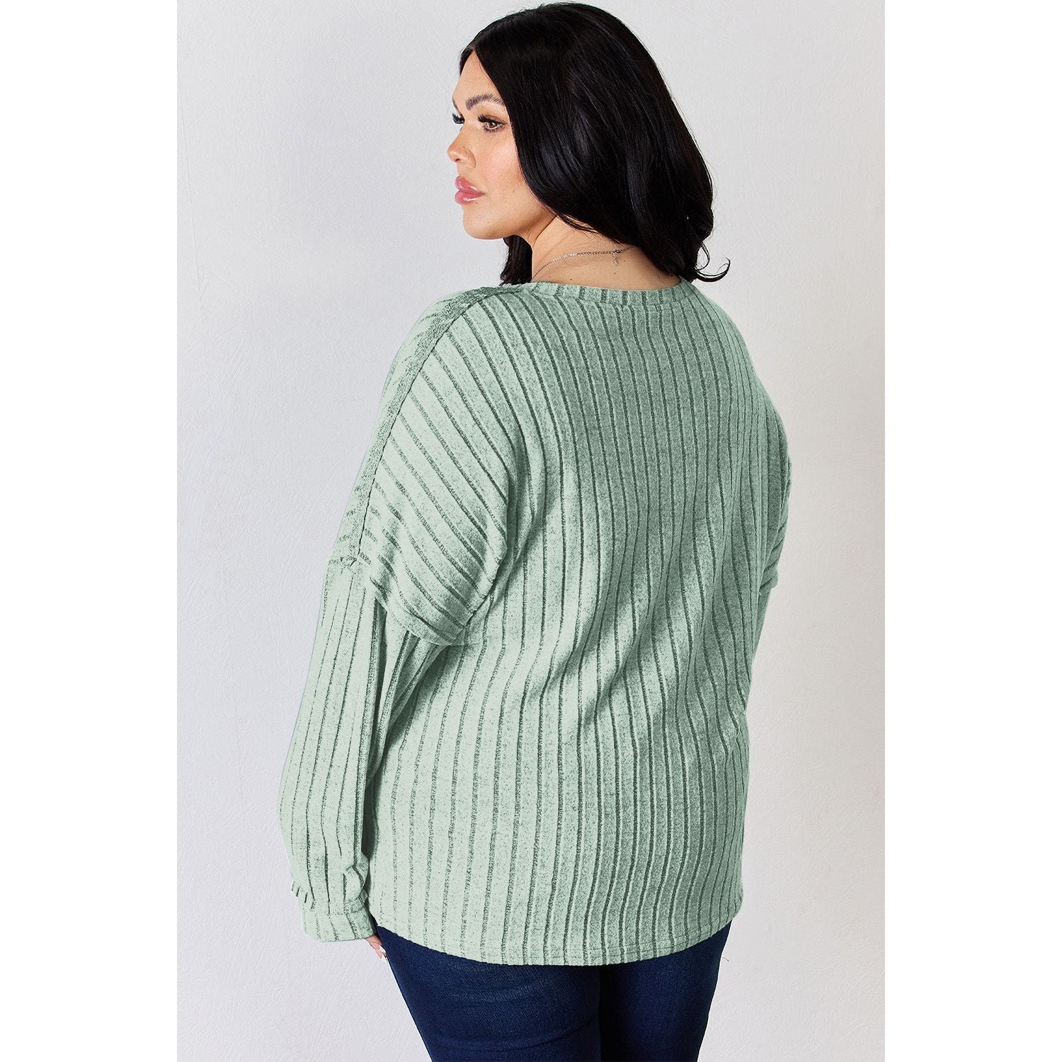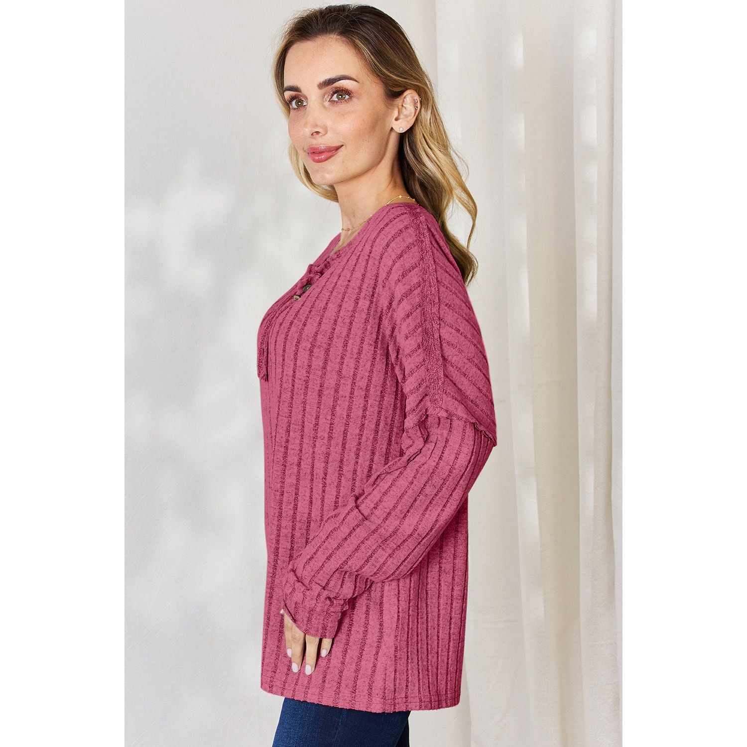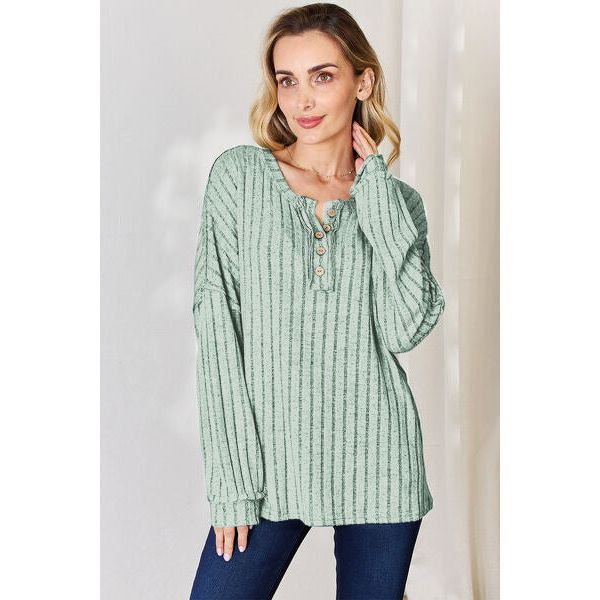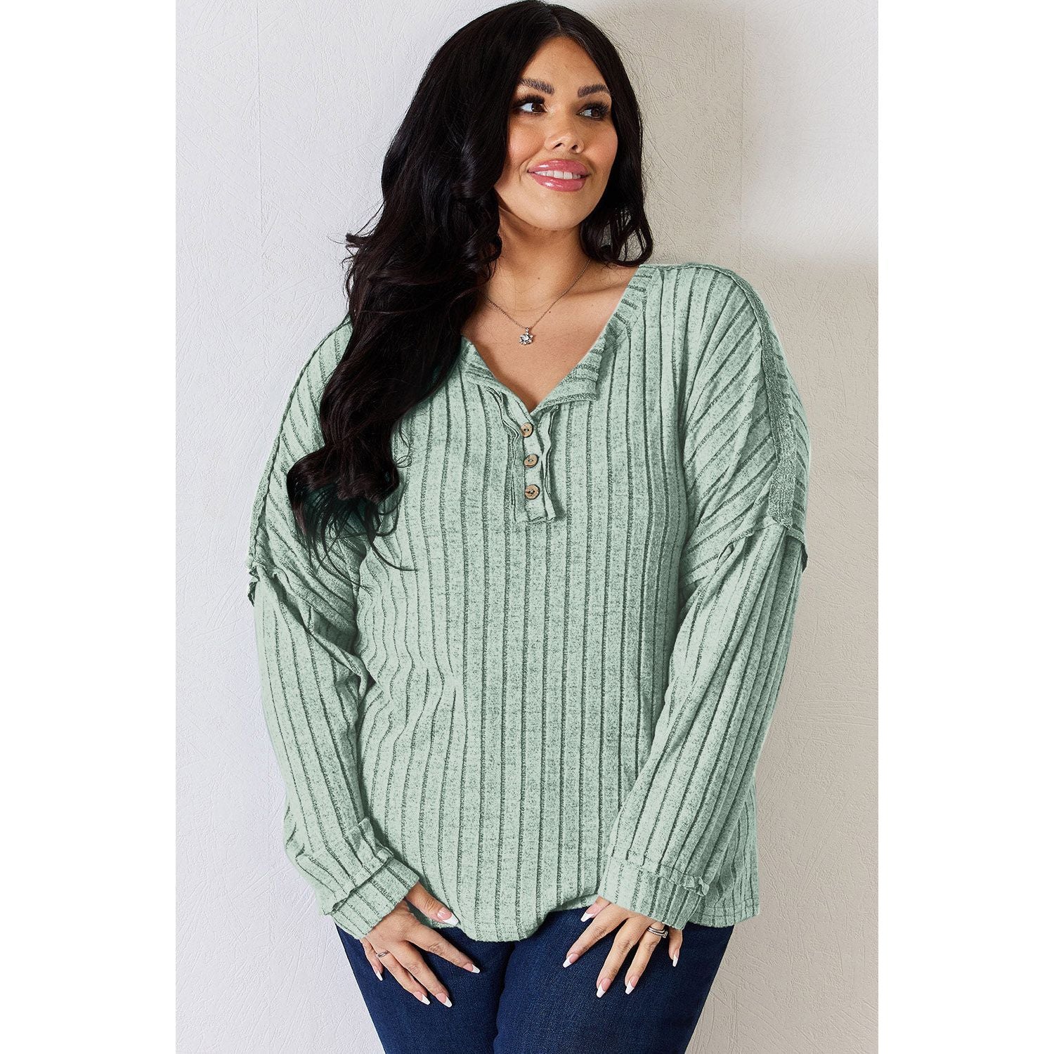 Basic Bae Full Size Ribbed Half Button Long Sleeve T-Shirt