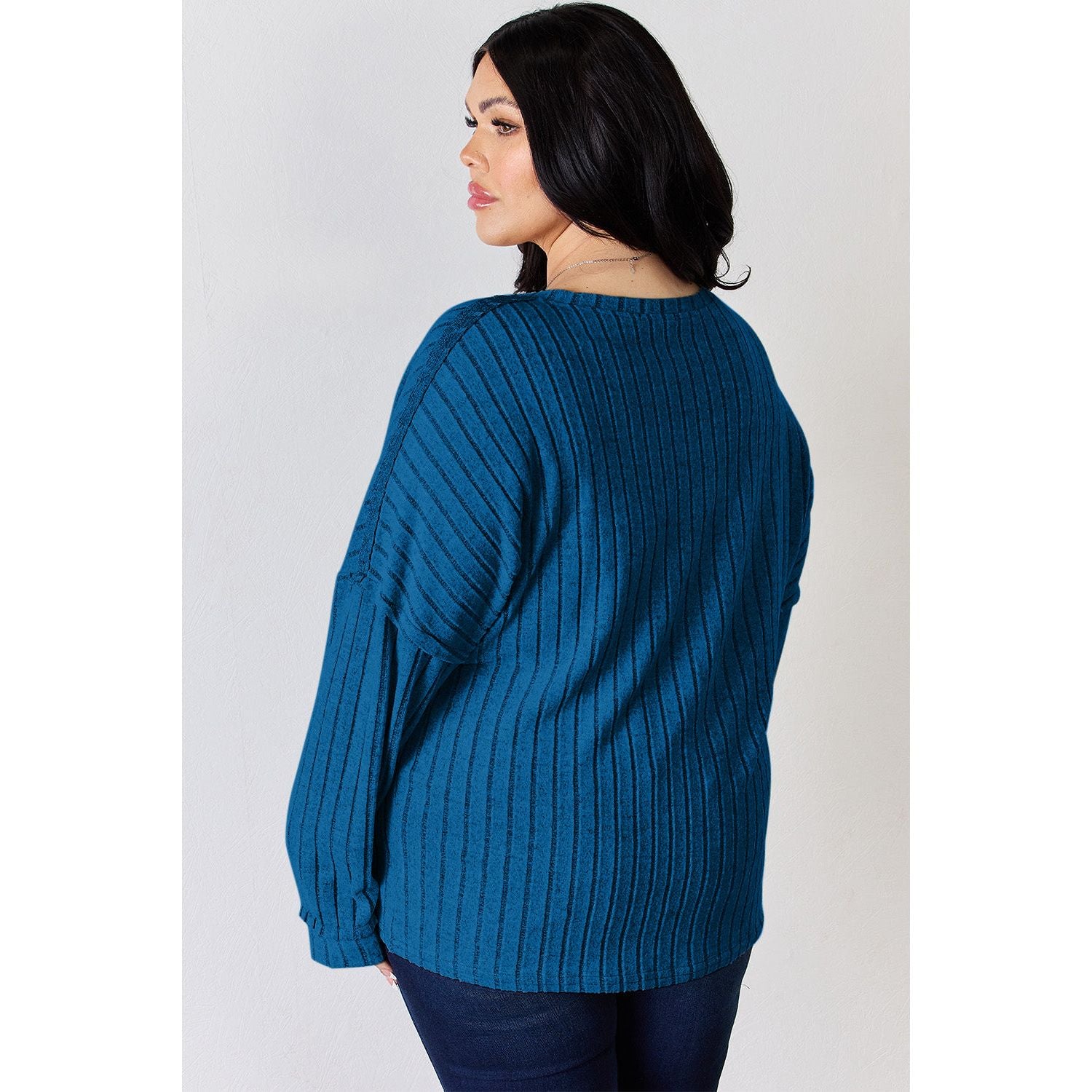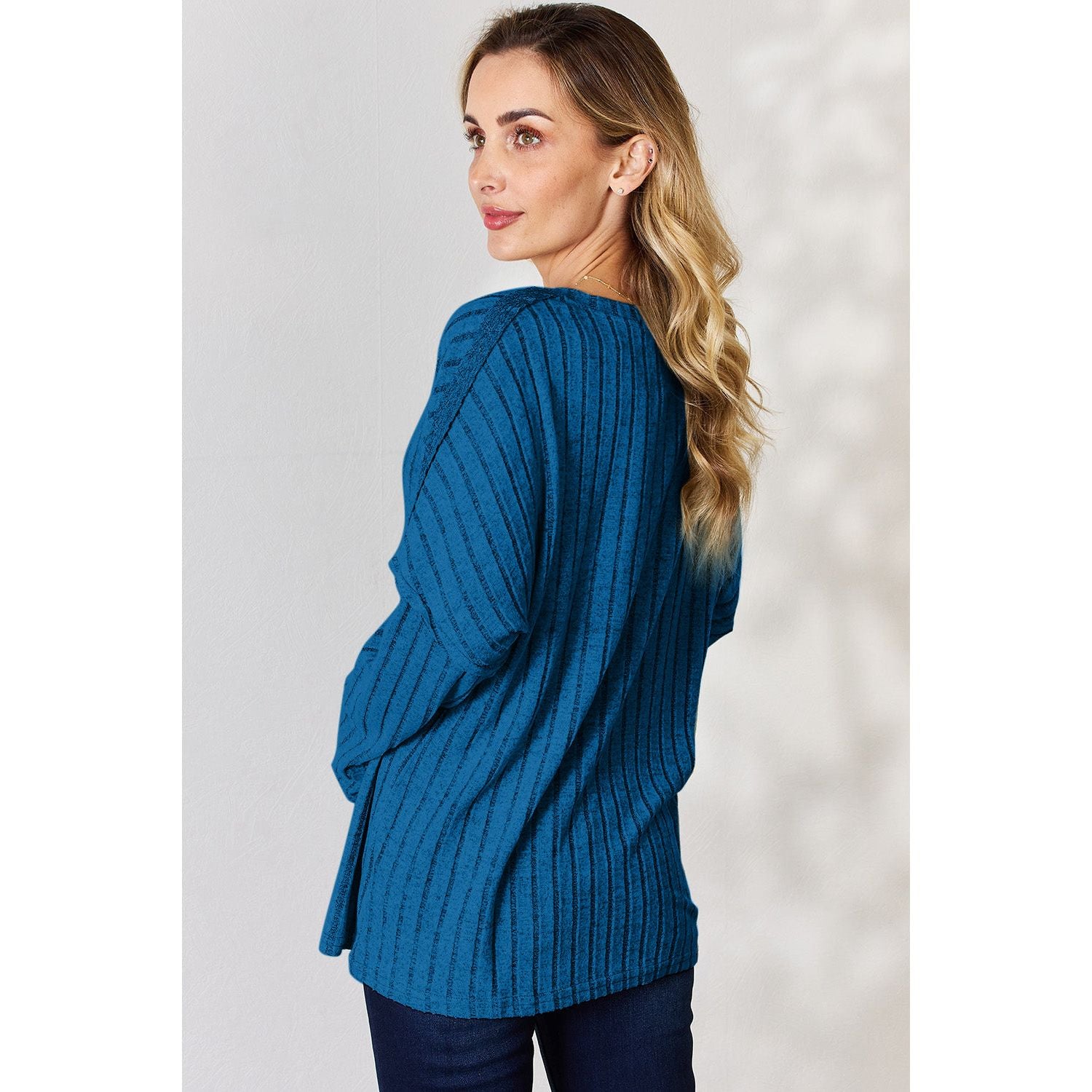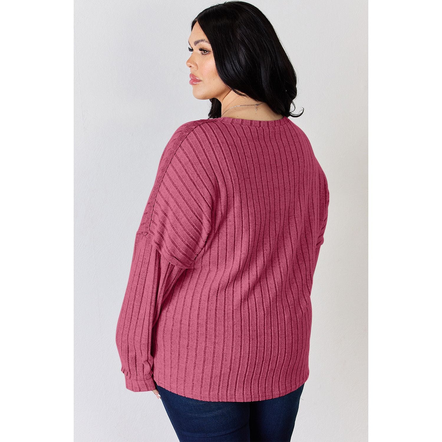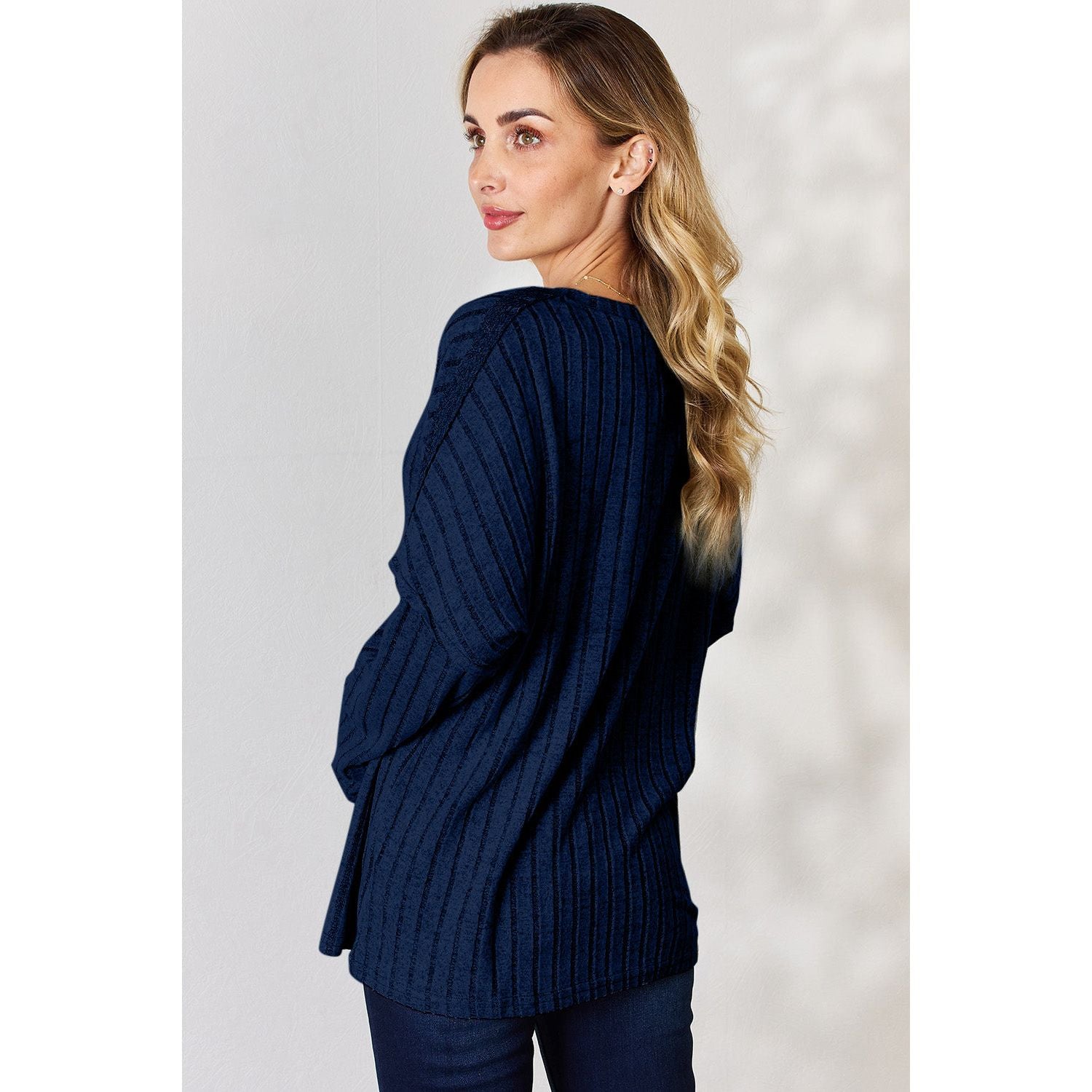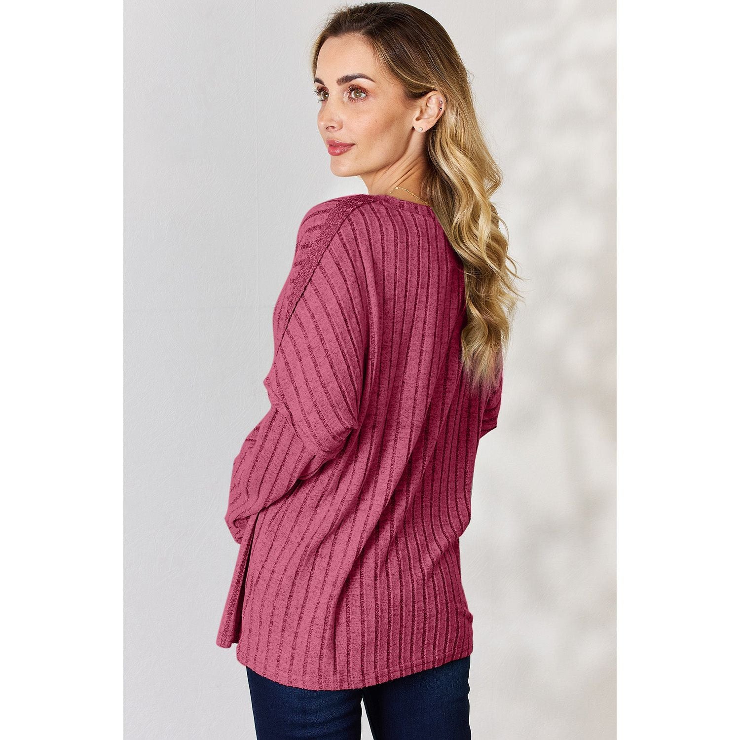 Basic Bae Full Size Ribbed Half Button Long Sleeve T-Shirt