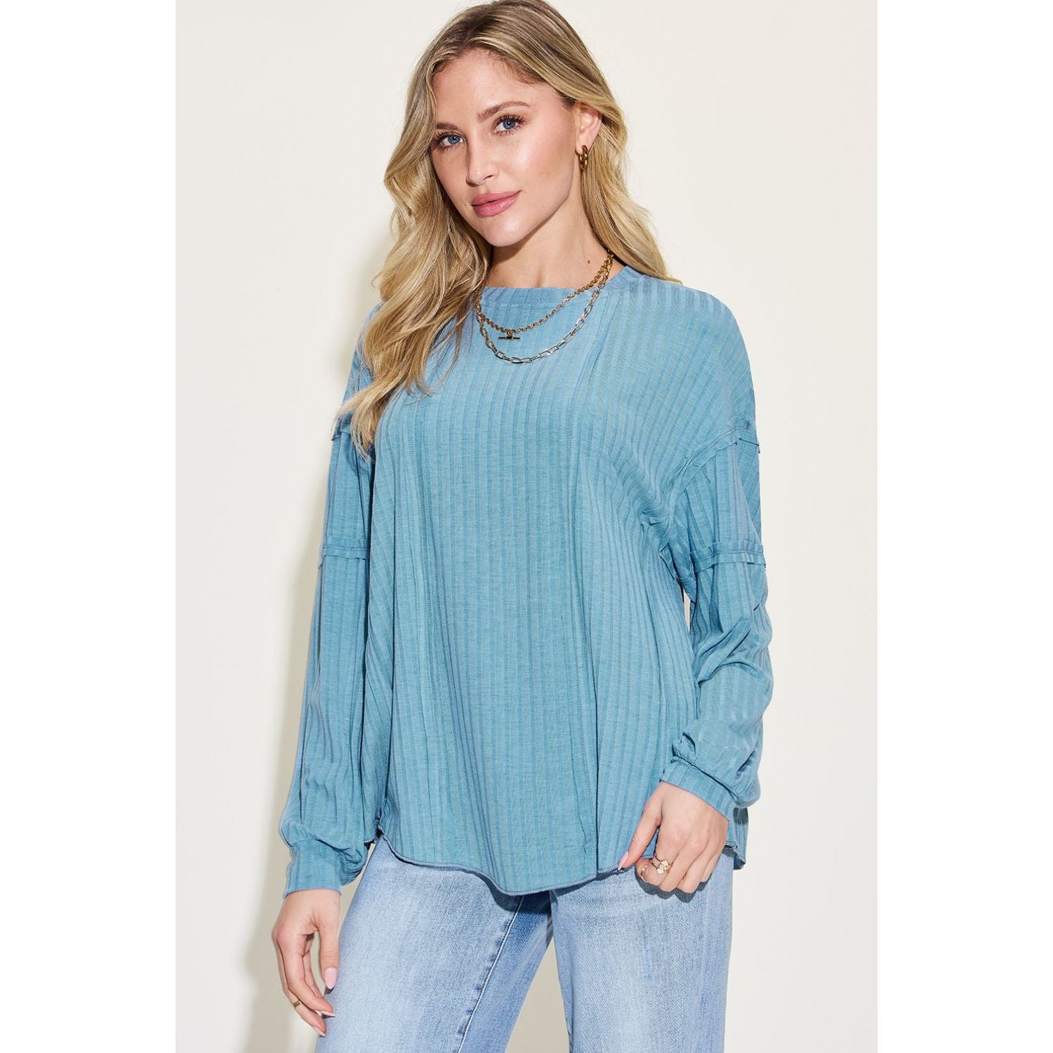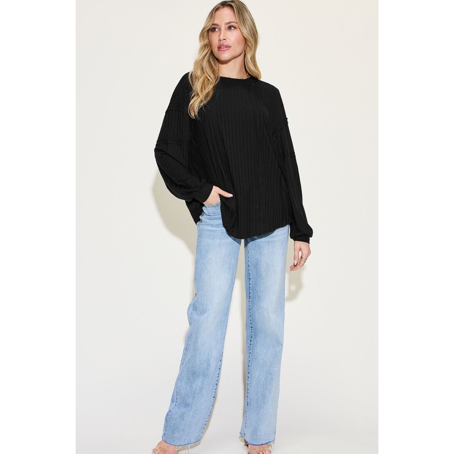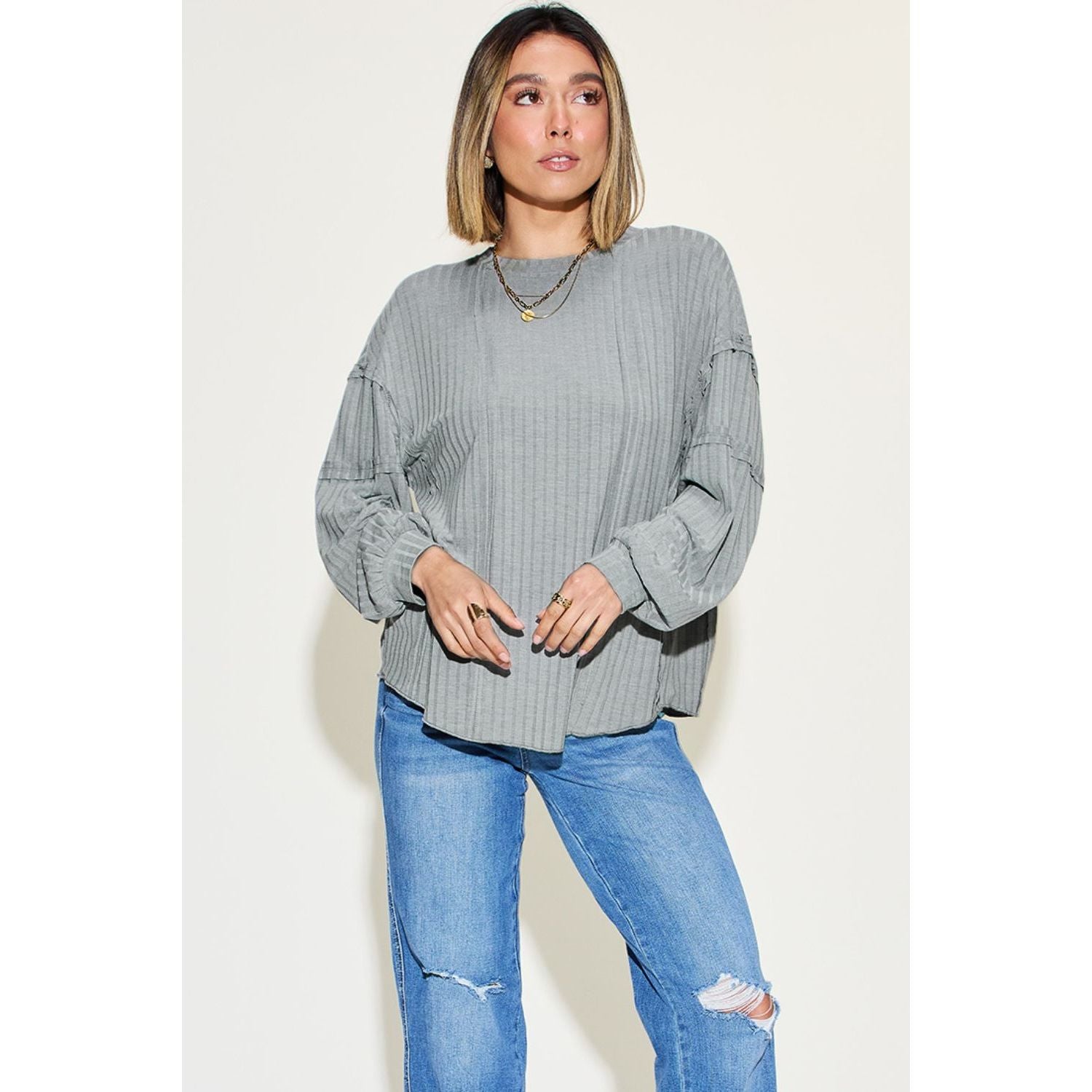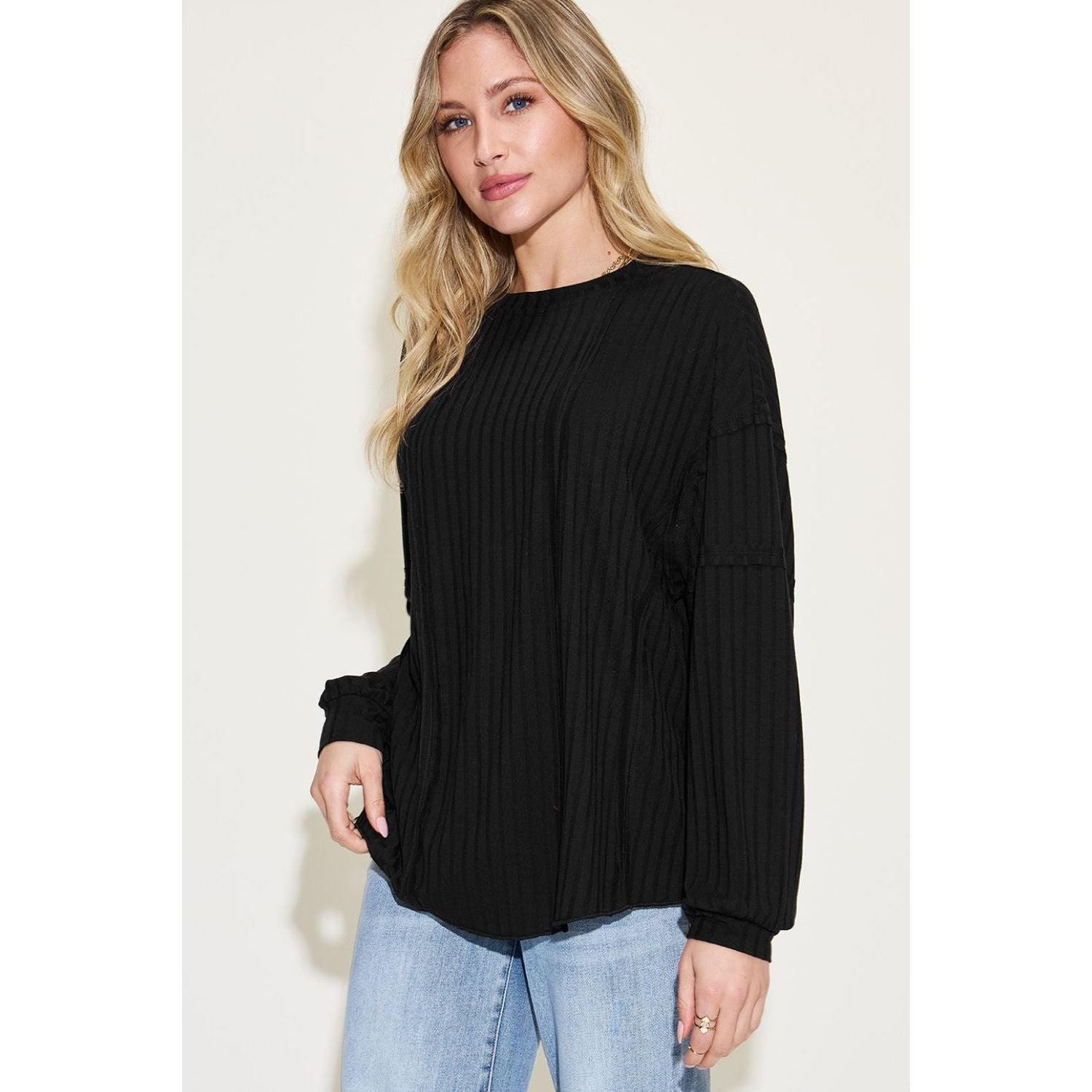 Basic Bae Full Size Ribbed Round Neck Long Sleeve T-Shirt