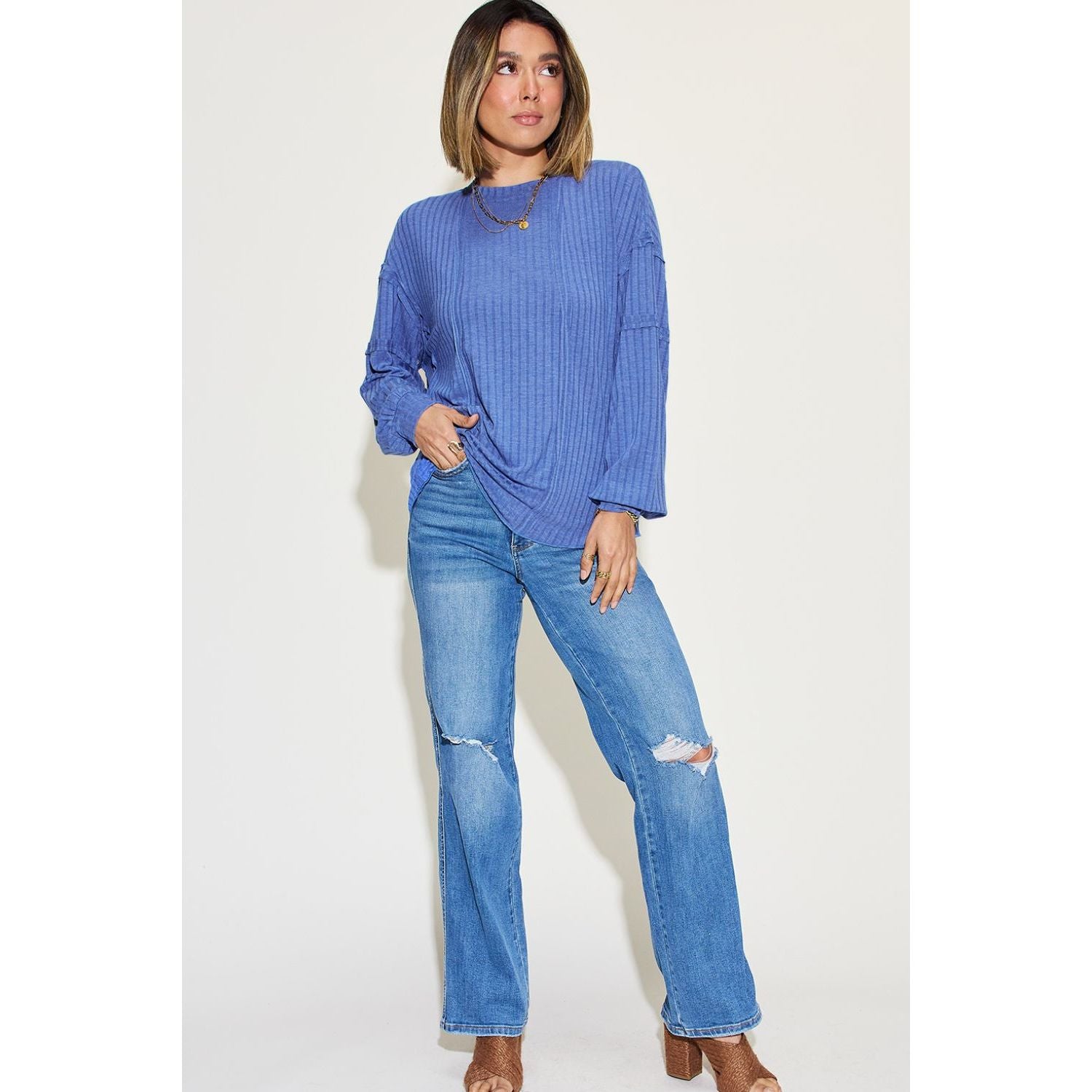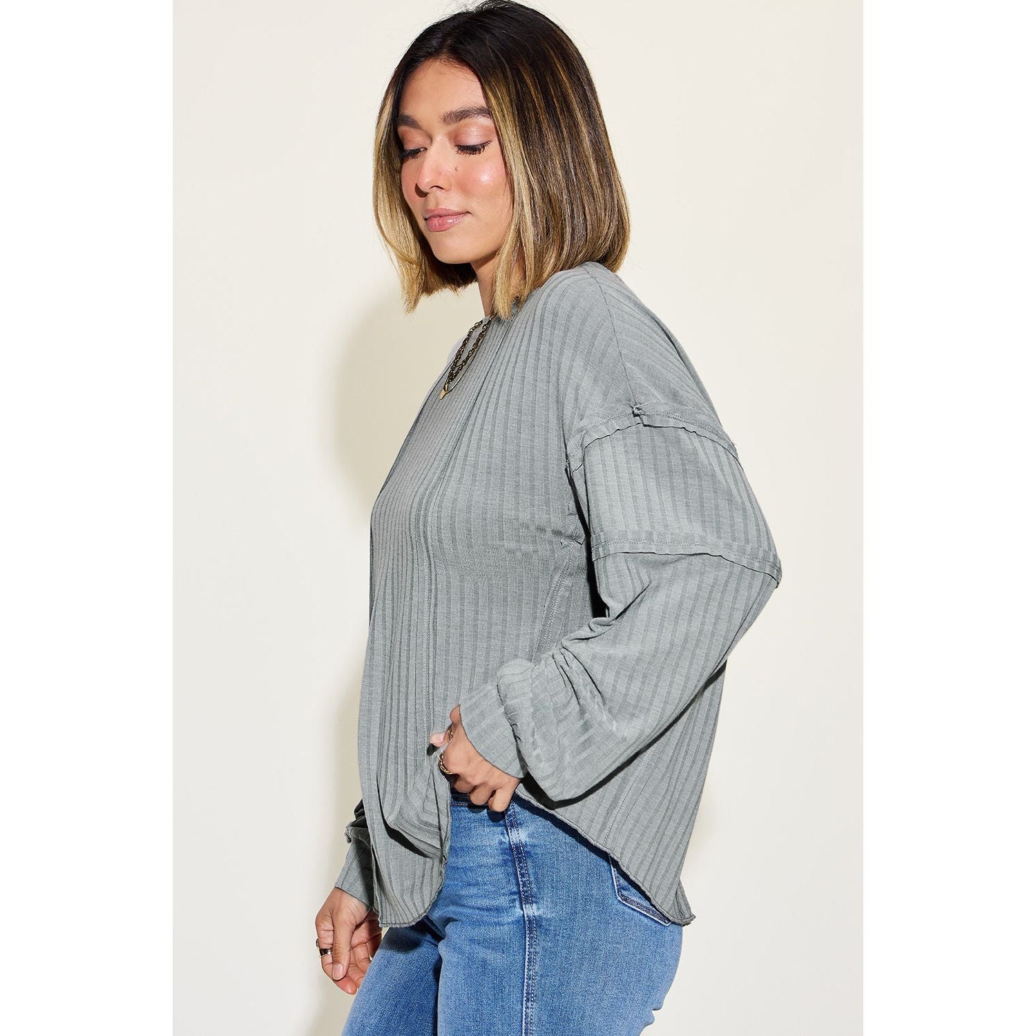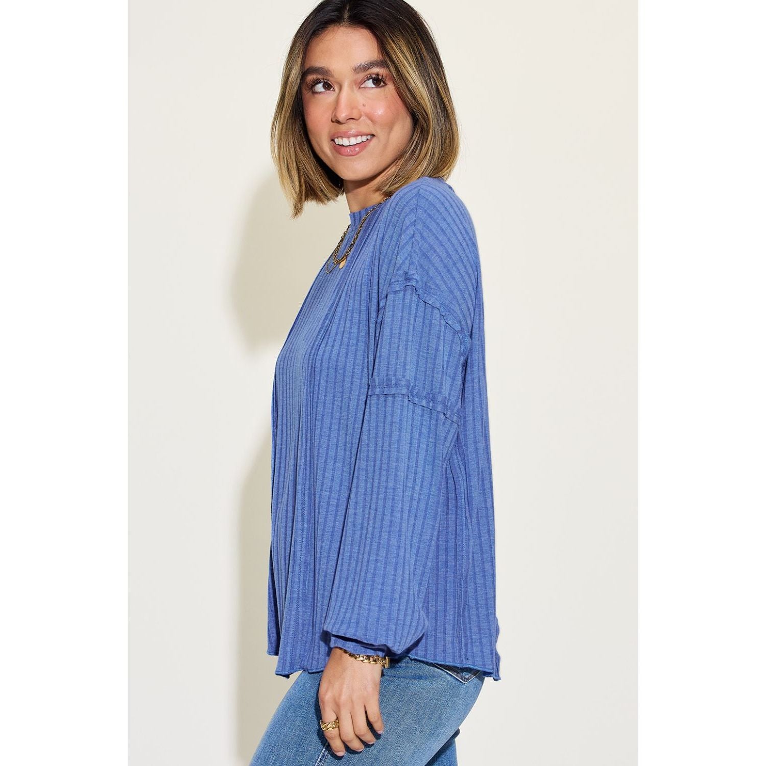 Basic Bae Full Size Ribbed Round Neck Long Sleeve T-Shirt