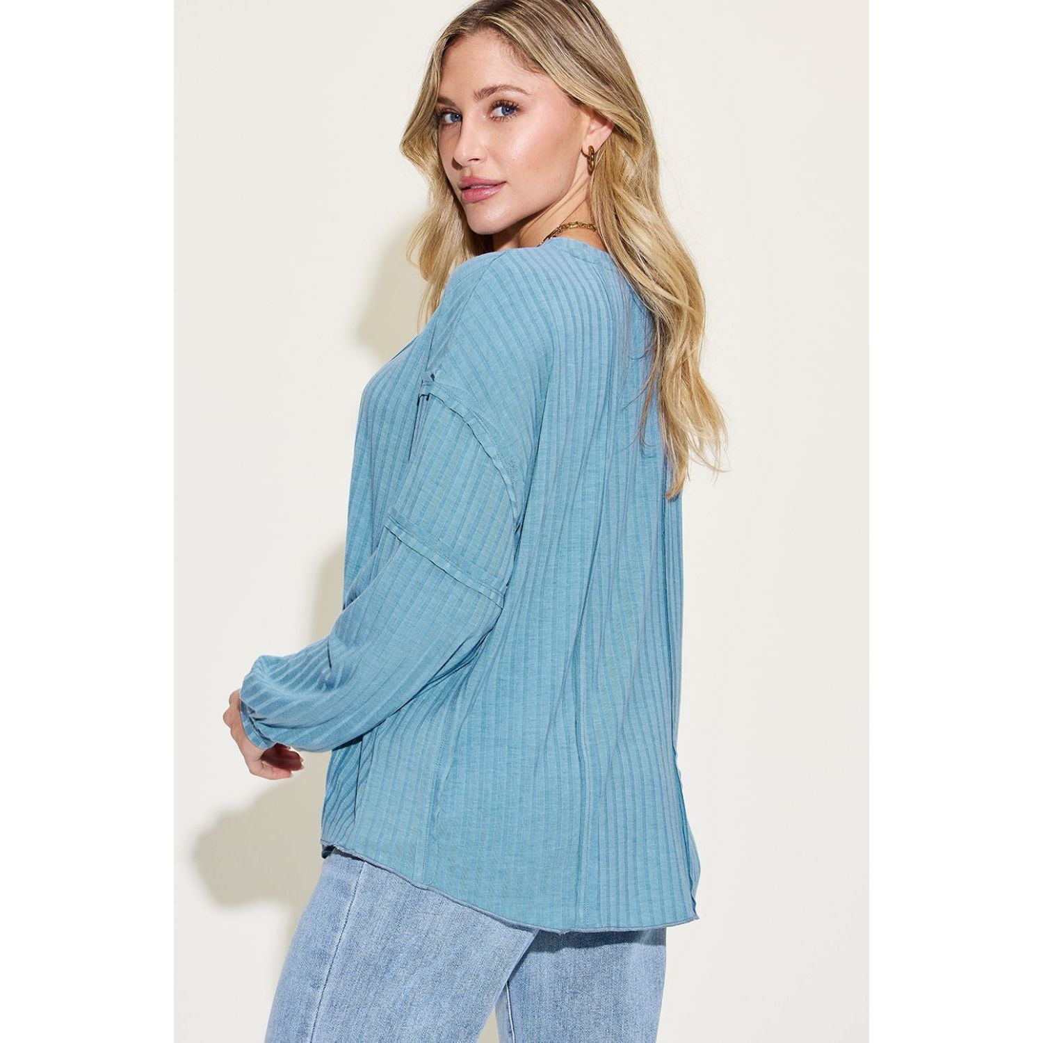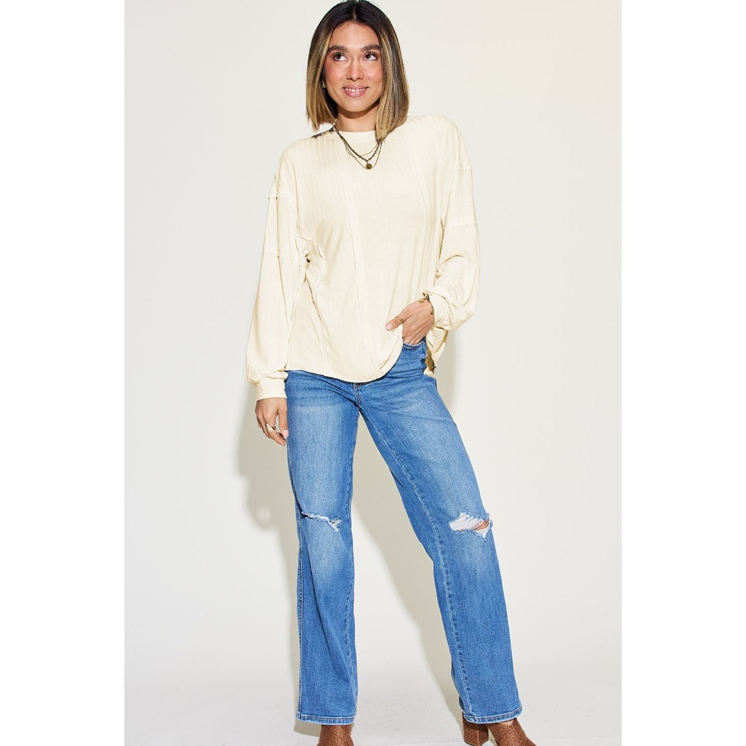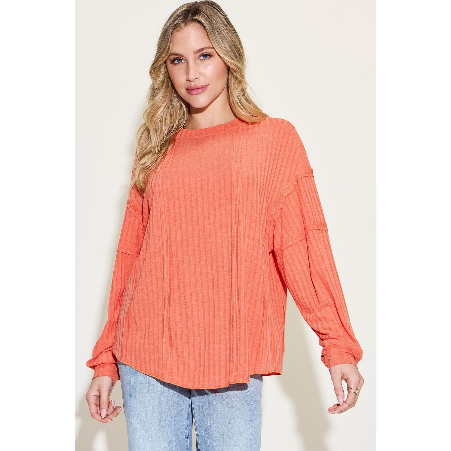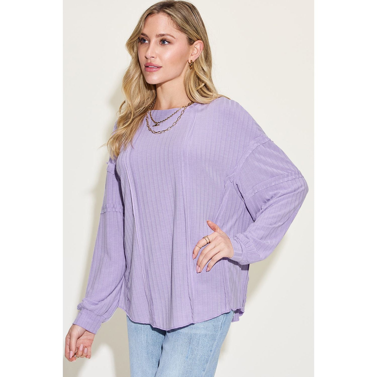 Basic Bae Full Size Ribbed Round Neck Long Sleeve T-Shirt