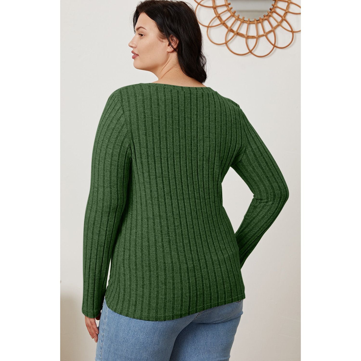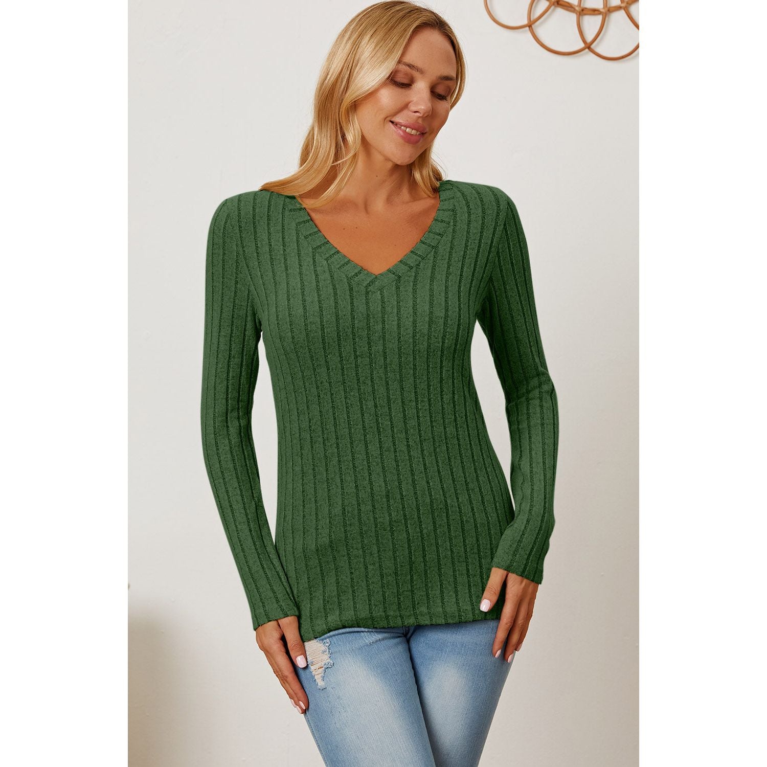 Basic Bae Full Size Ribbed V-Neck Long Sleeve T-Shirt