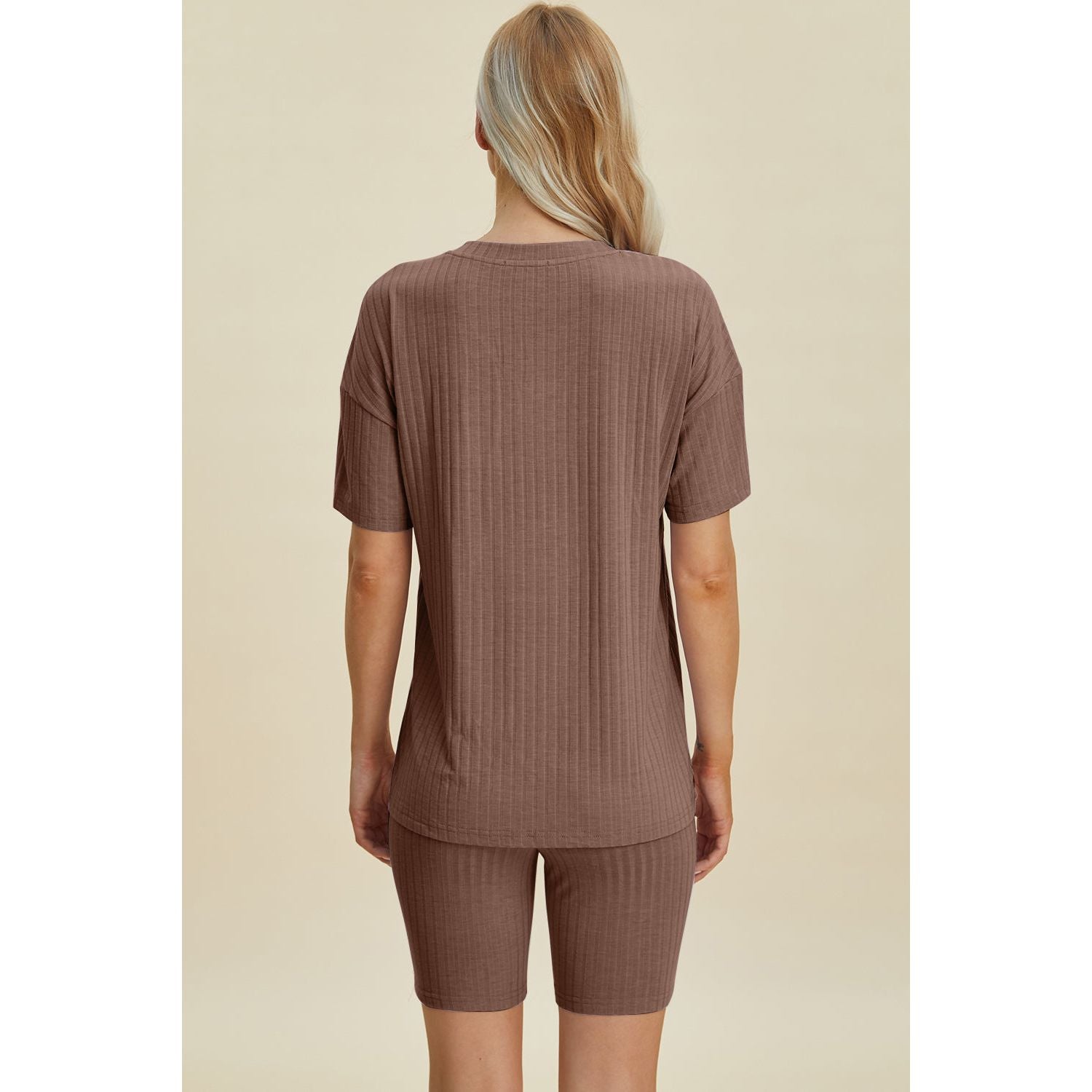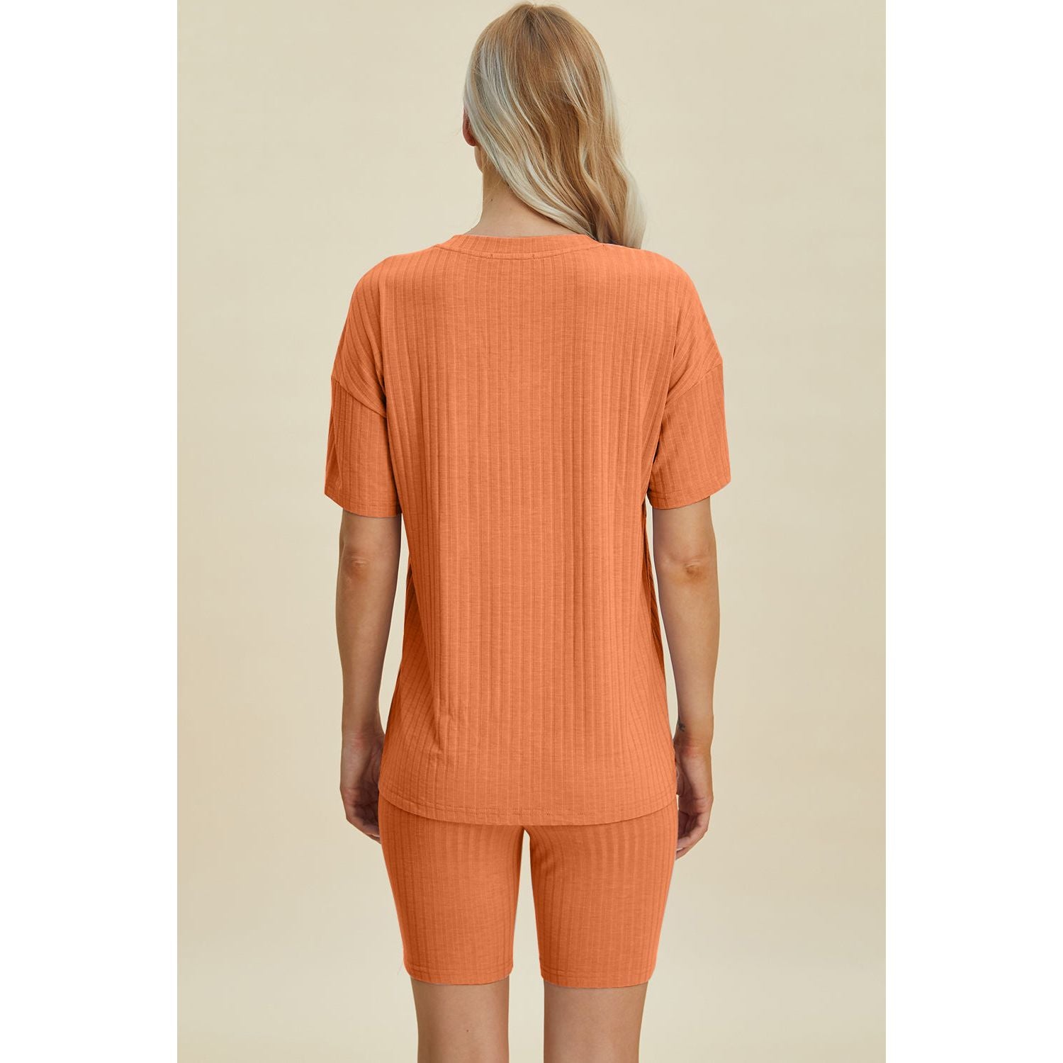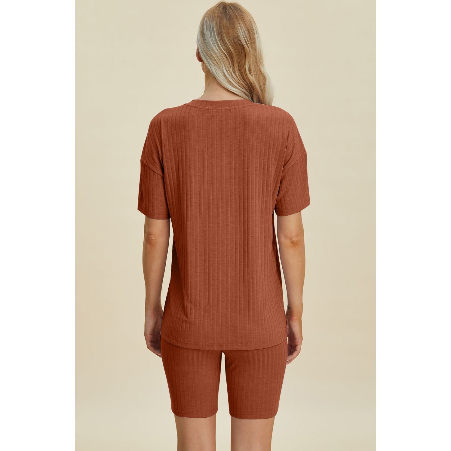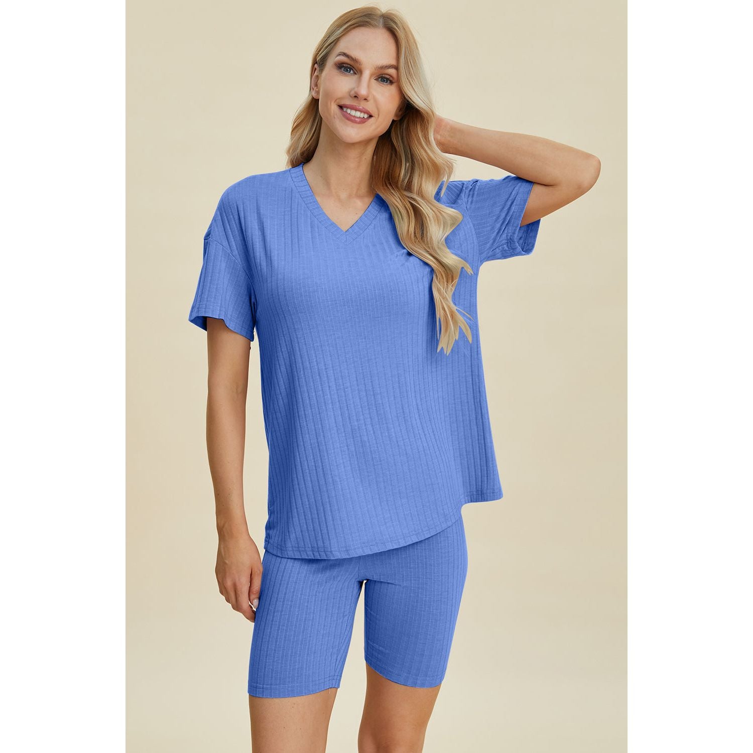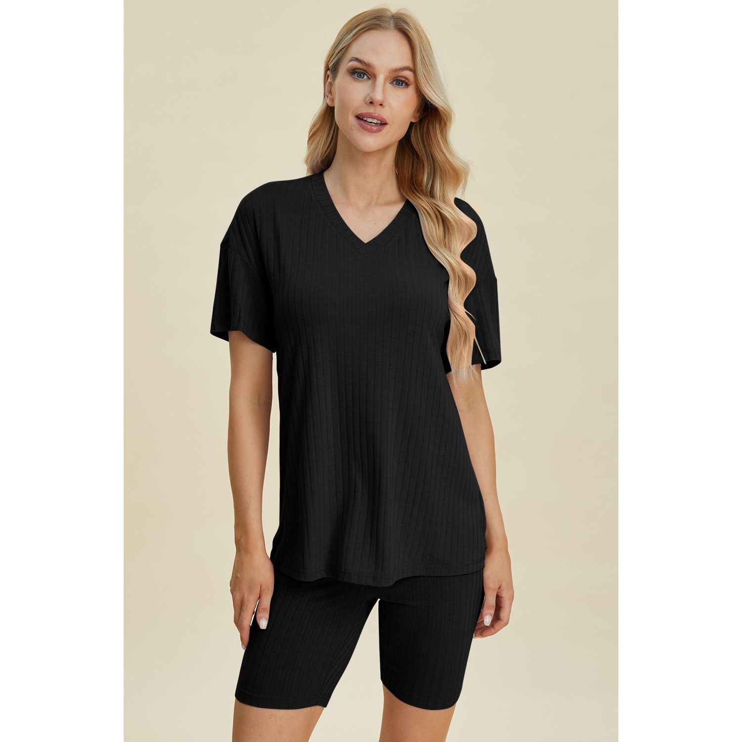 Basic Bae Full Size Ribbed V-Neck Short Sleeve Top and Shorts Set