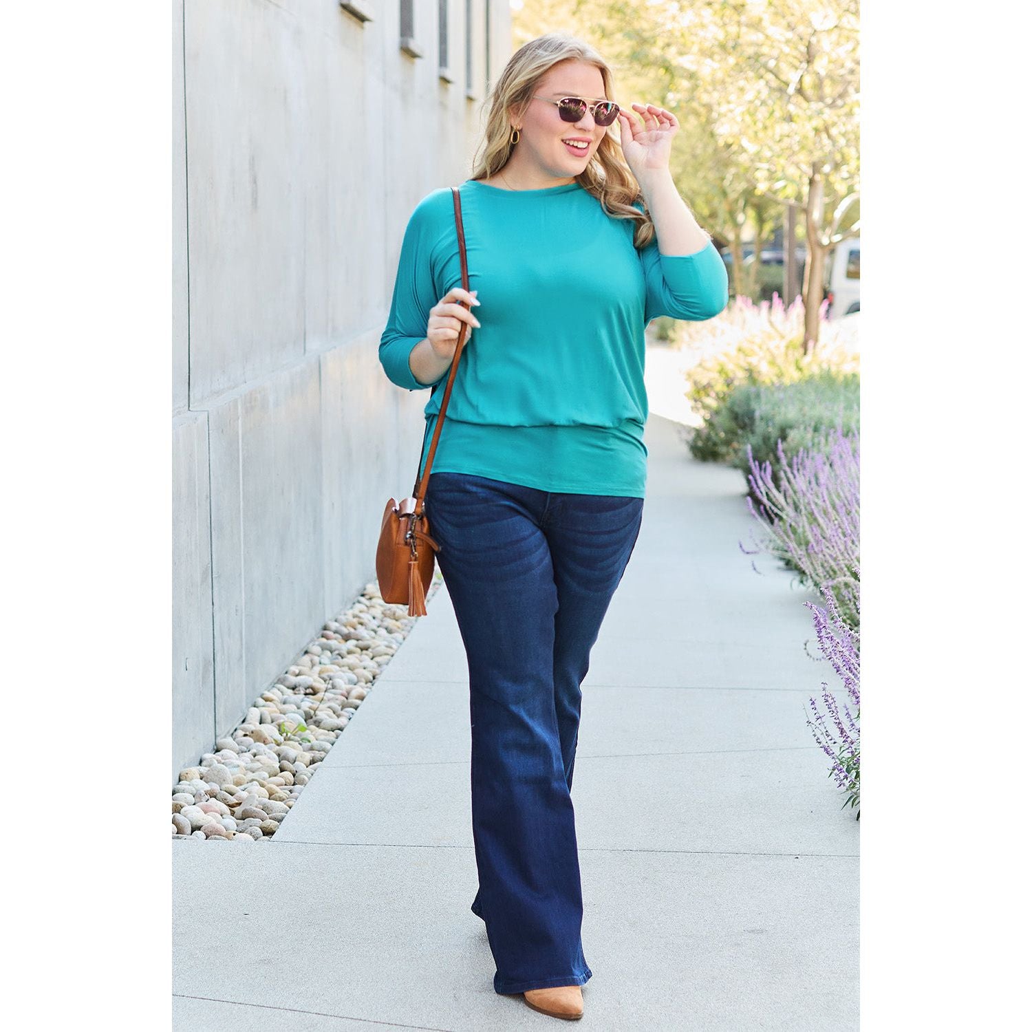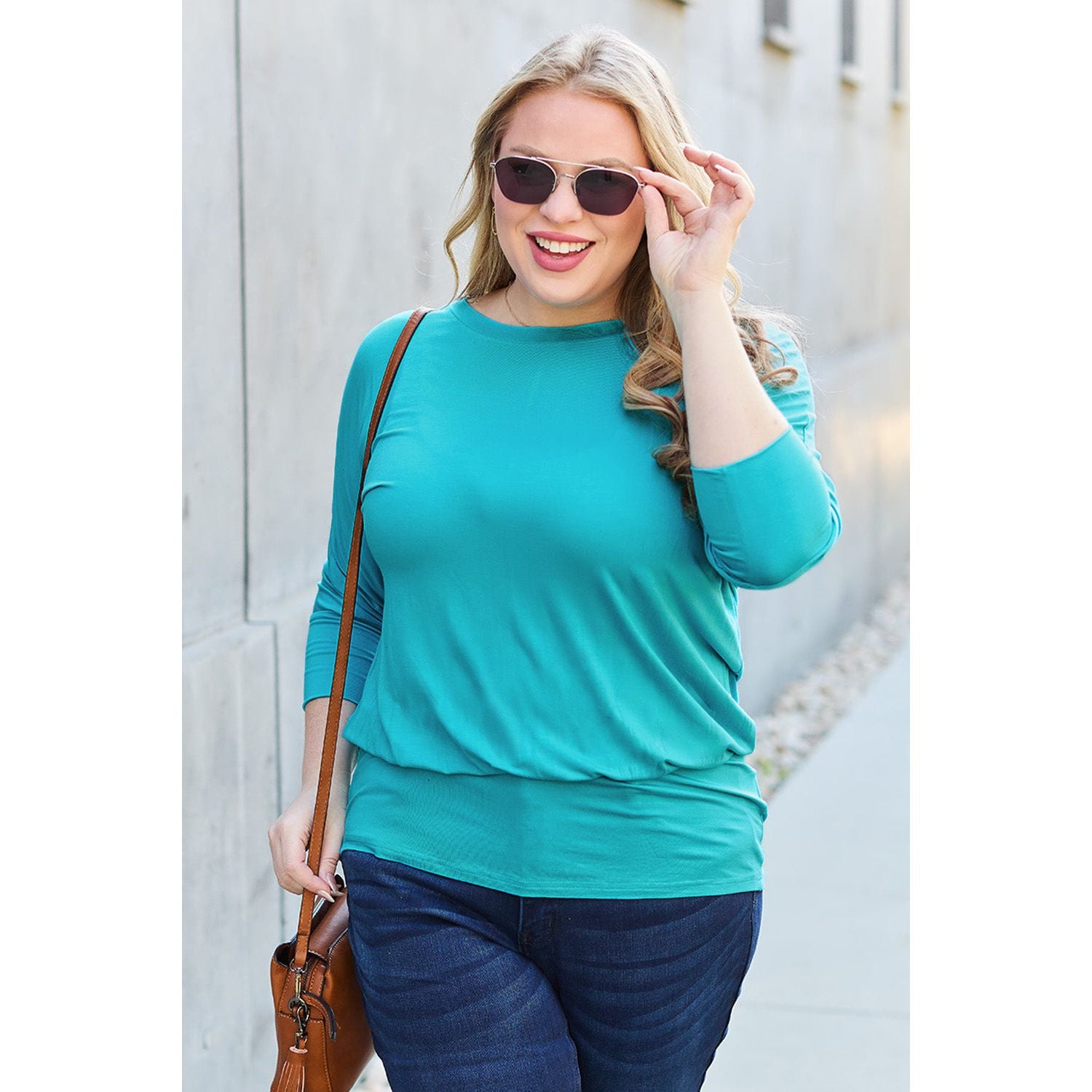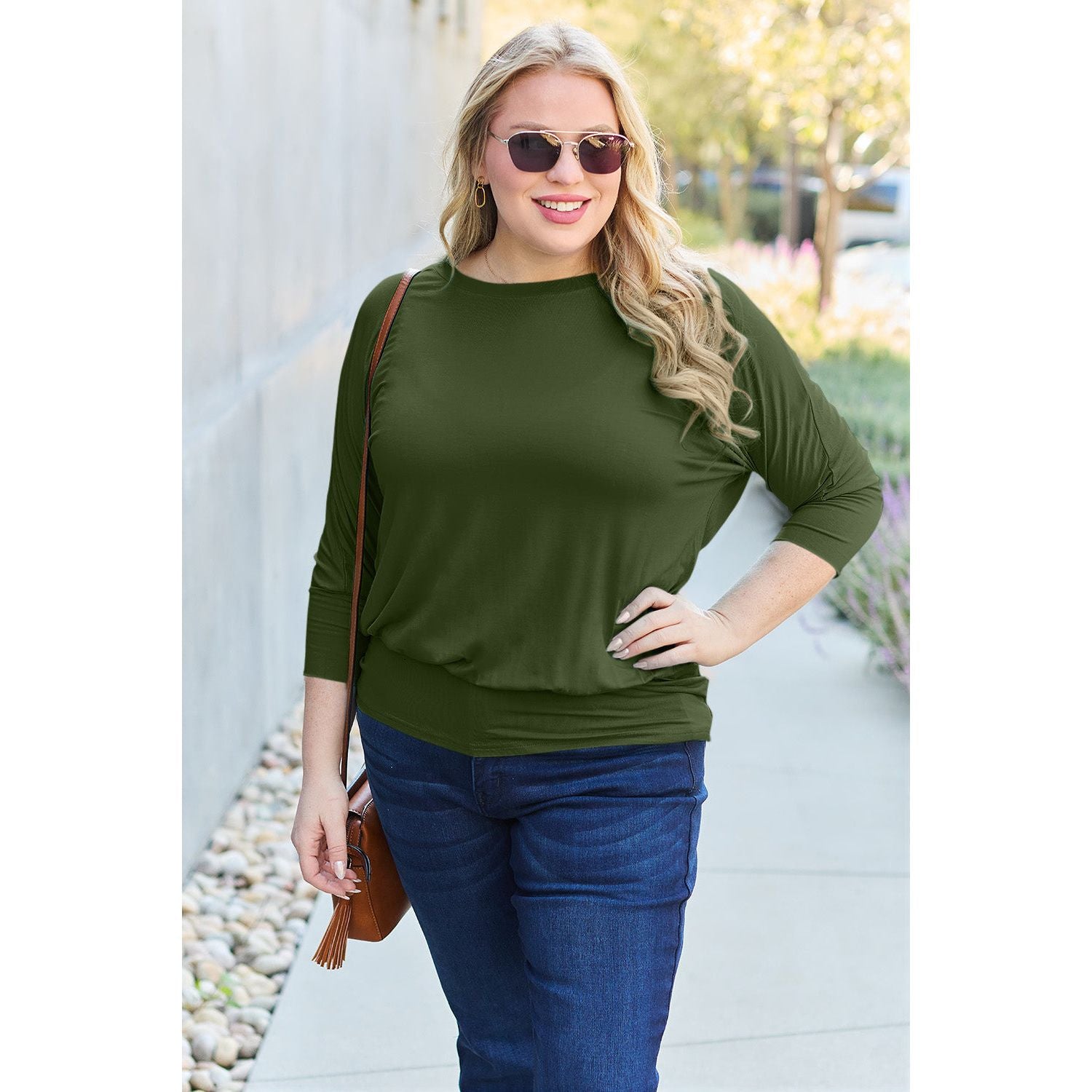 Basic Bae Full Size Round Neck Batwing Sleeve Top