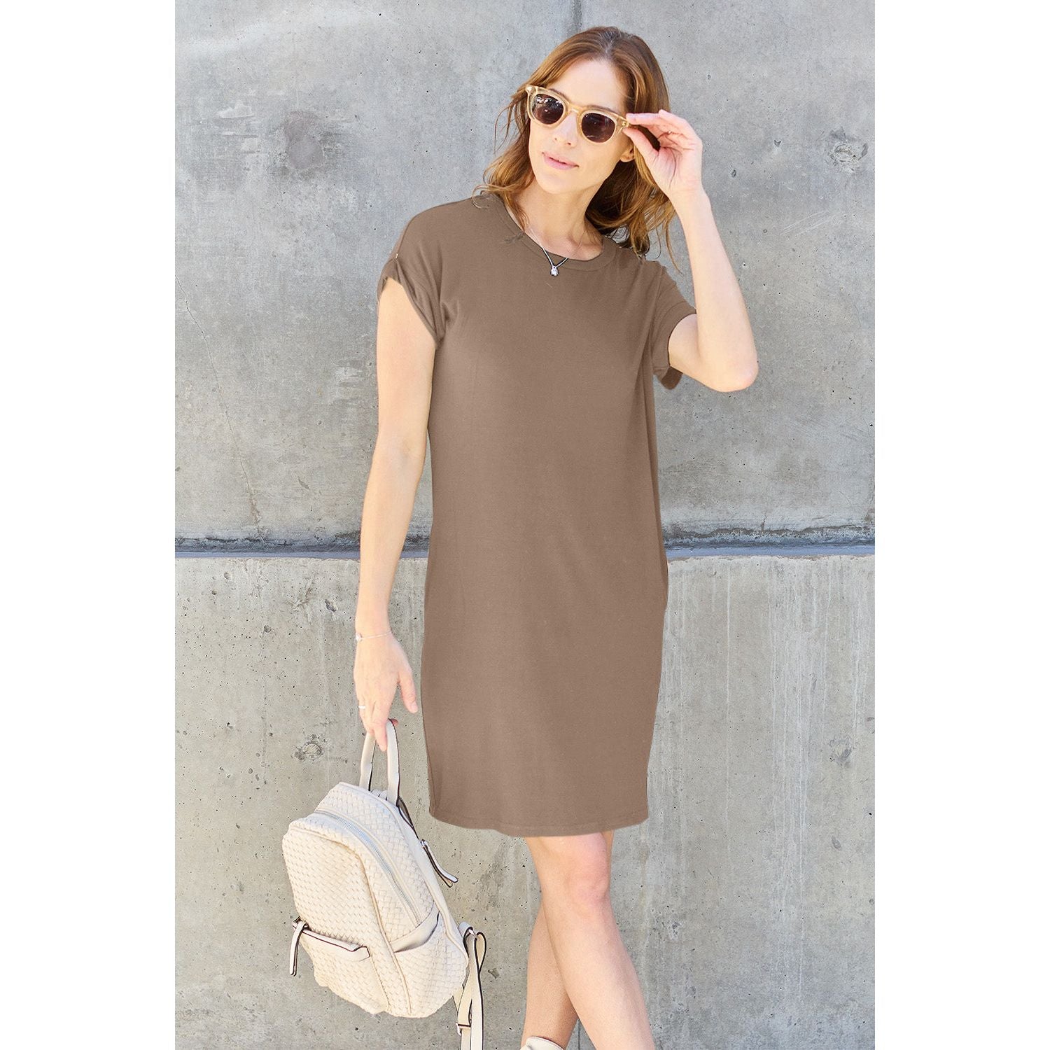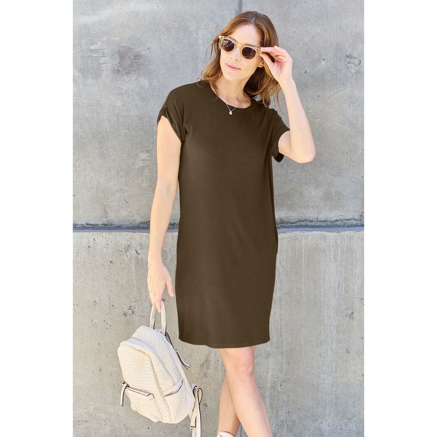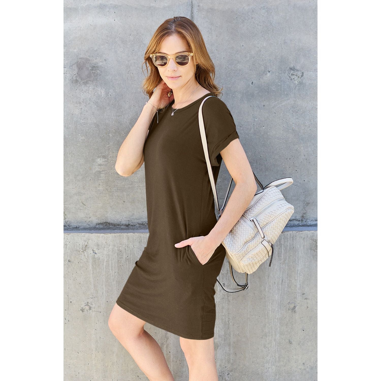Basic Bae Full Size Round Neck Short Sleeve Dress with Pockets