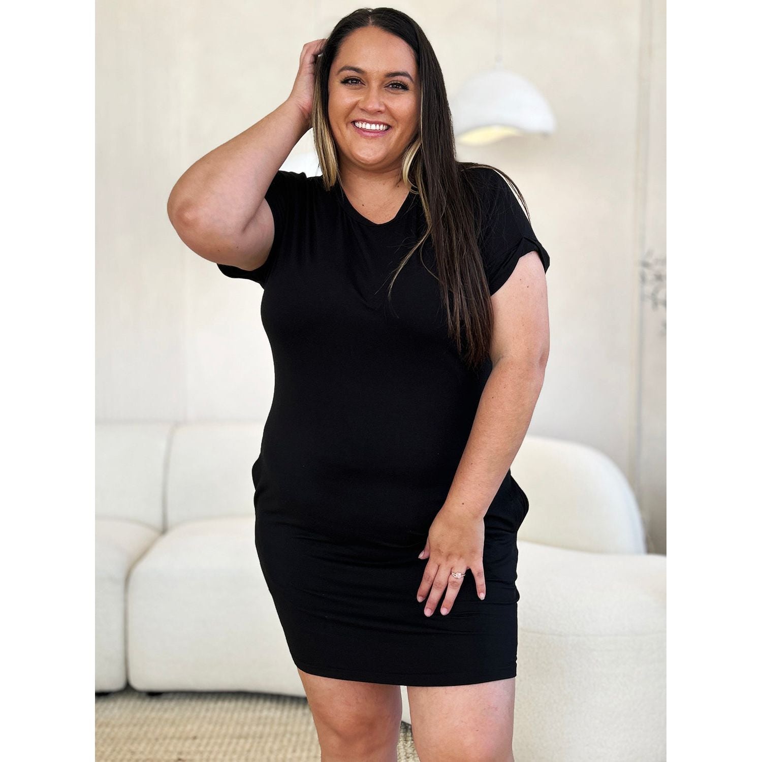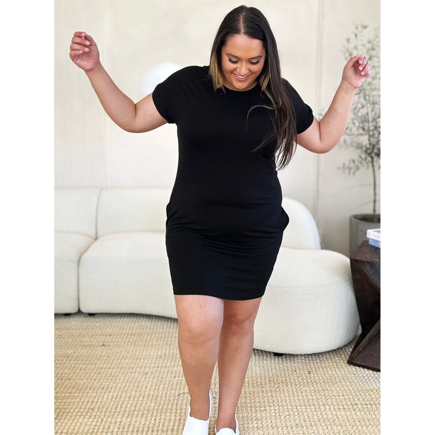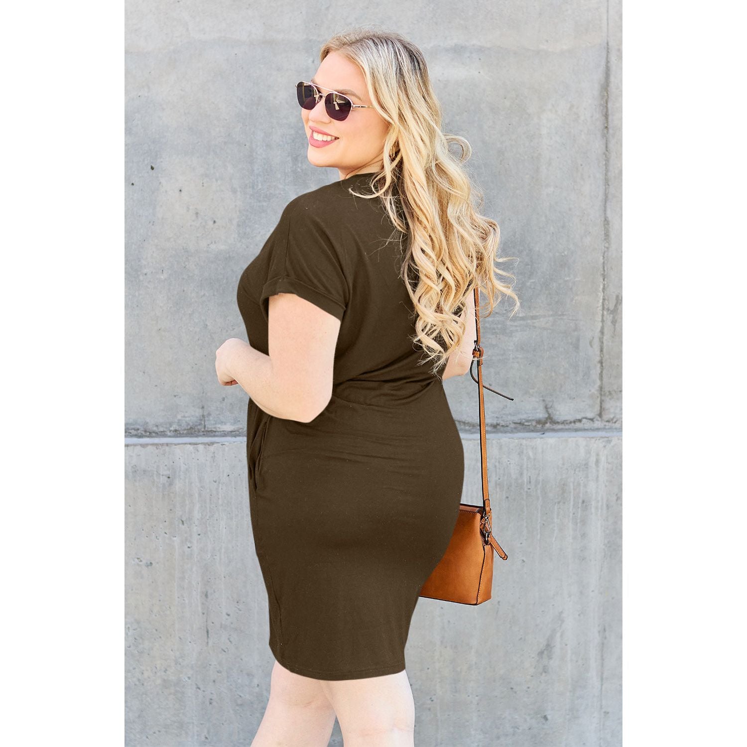 Basic Bae Full Size Round Neck Short Sleeve Dress with Pockets