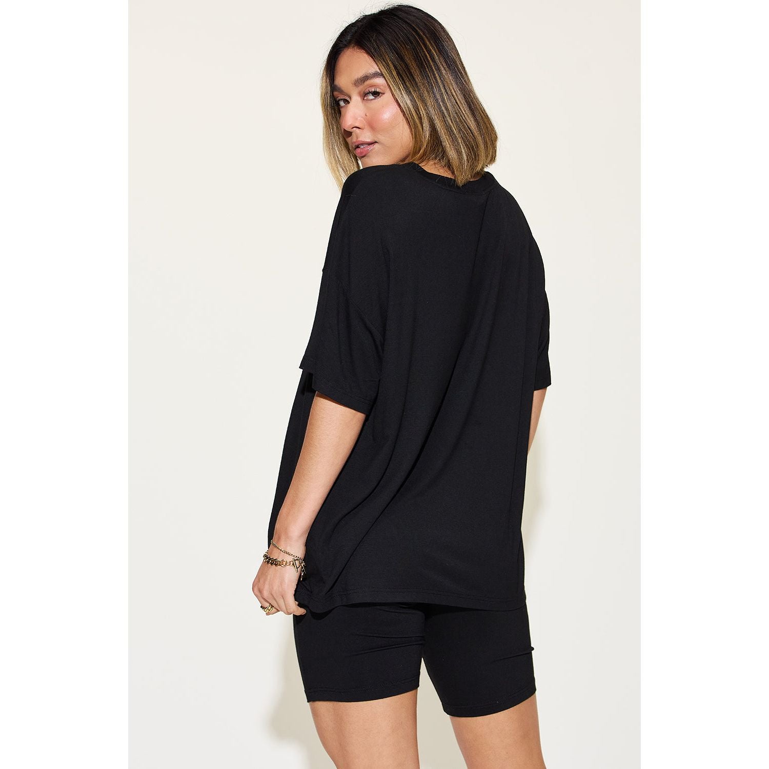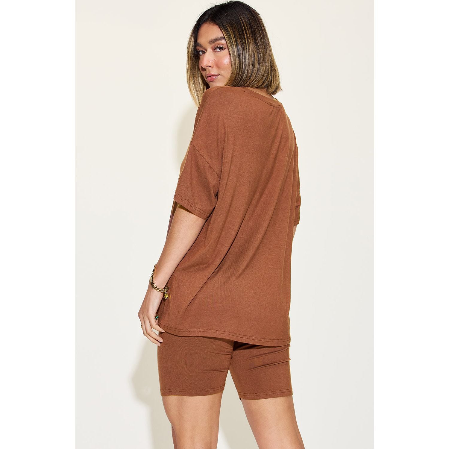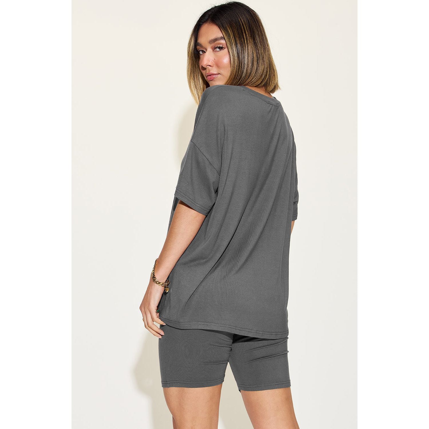 Basic Bae Full Size V-Neck Drop Shoulder T-Shirt and Shorts Set
