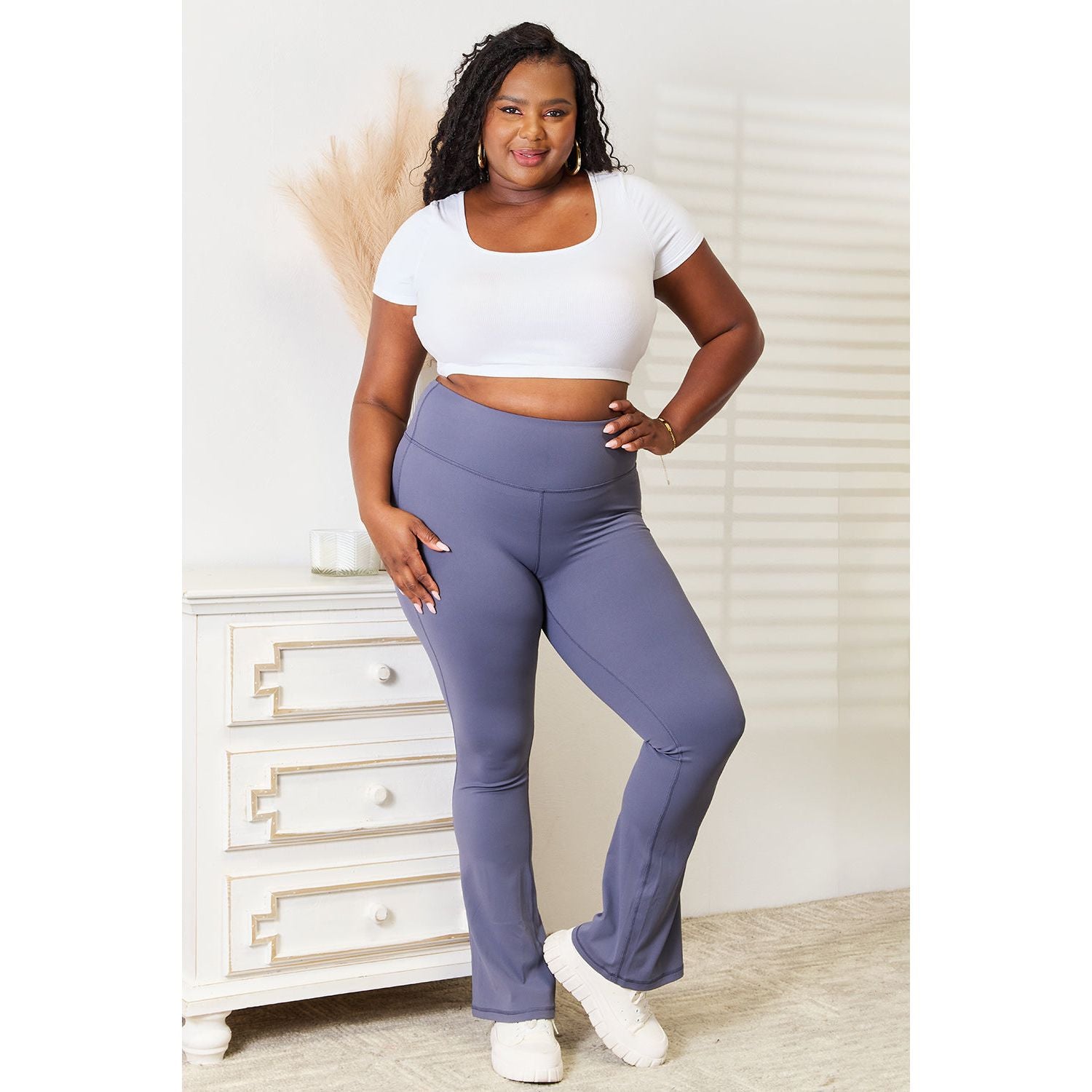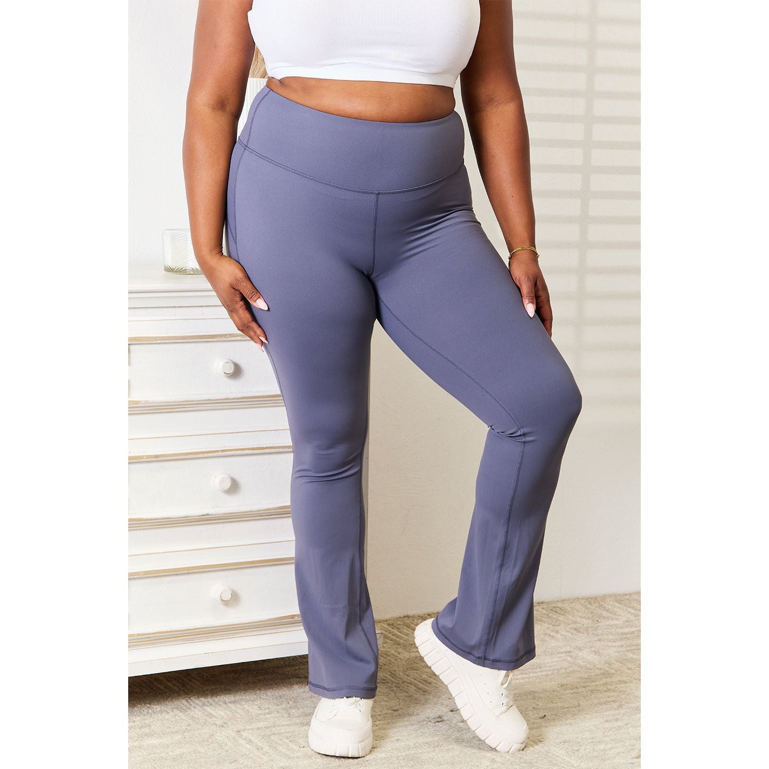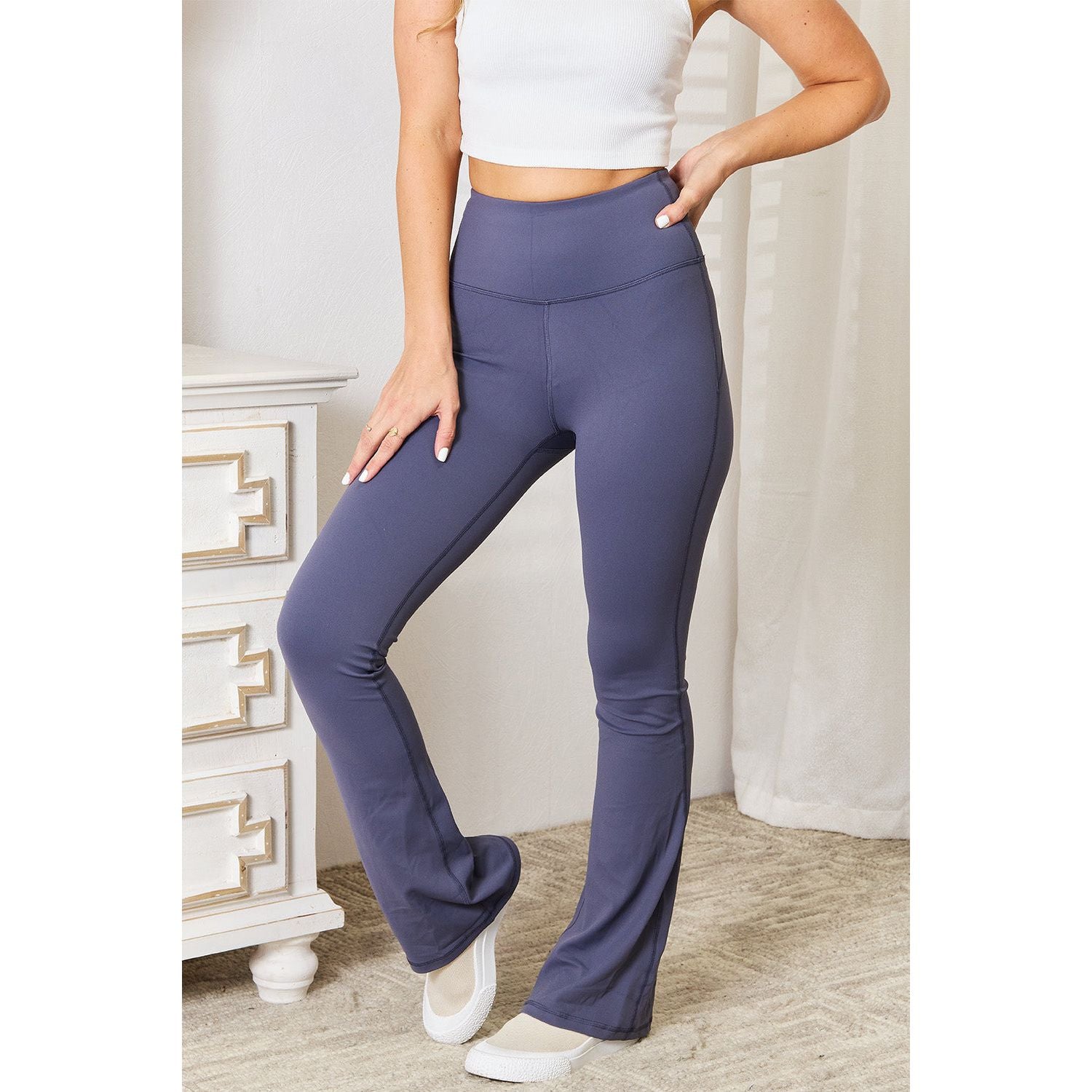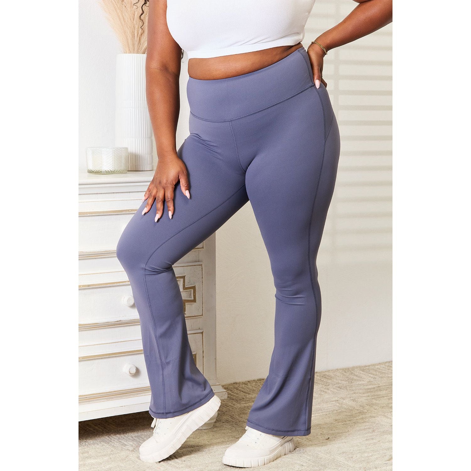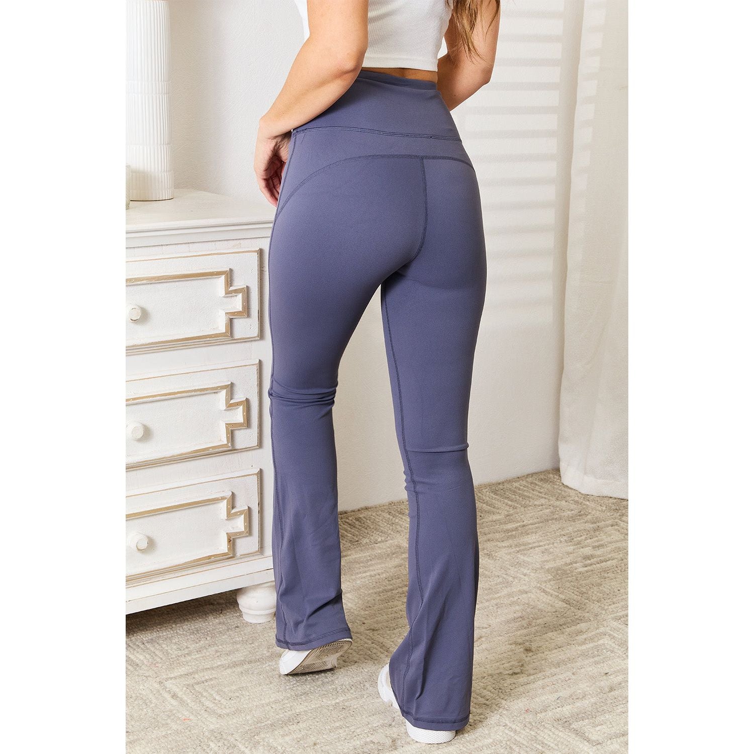 These yoga pants provide exceptional comfort and support during even the most challenging poses. The high-rise waistband offers tummy control and a flattering silhouette, while the flare leg design adds a touch of elegance and freedom of movement.