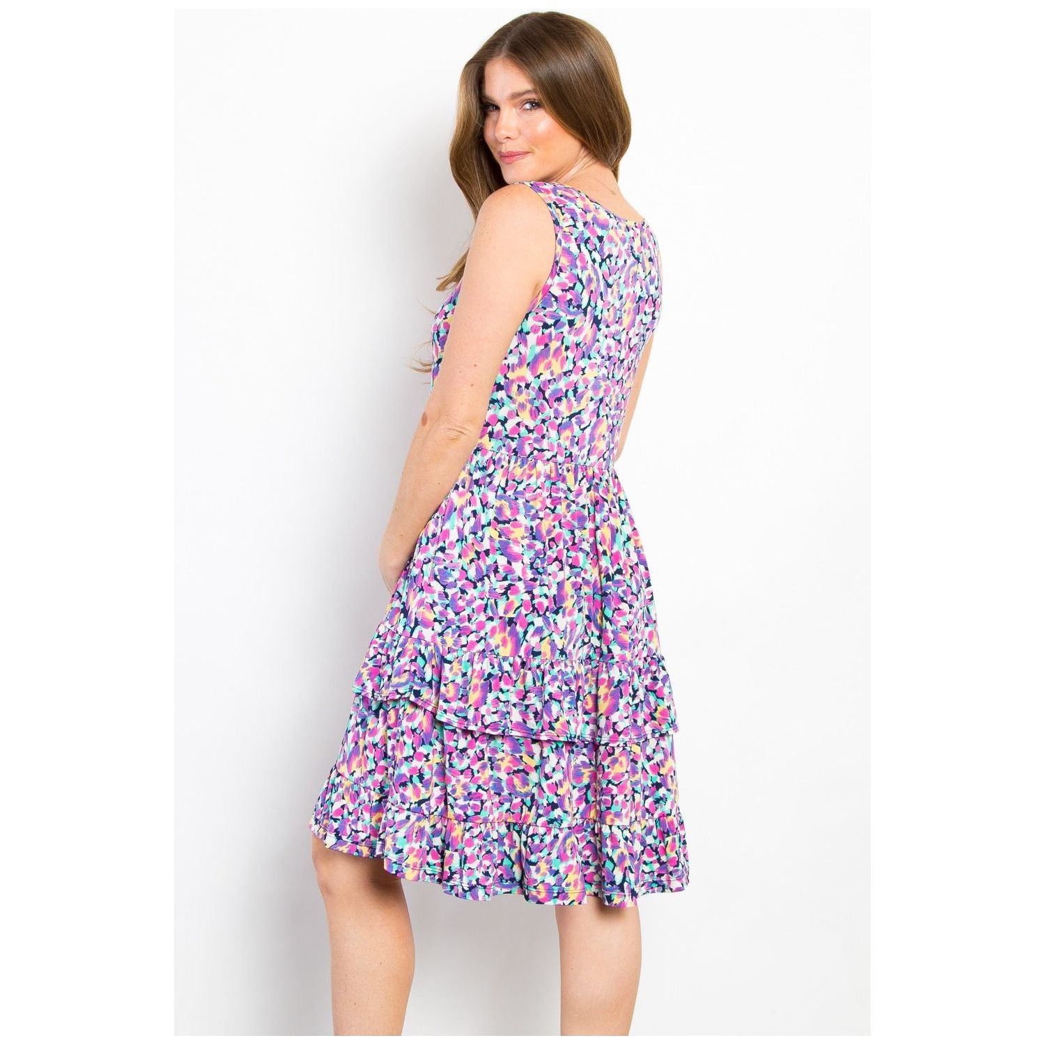 This printed wrinkle-free ruffled dress is a perfect combination of style and convenience. The wrinkle-free fabric makes it easy to care for and ideal for travel or busy days. The ruffled detailing adds a playful and feminine touch to the dress. Perfect for a day at the office or a weekend brunch with friends. Pair it with flats for a more casual look or dress it up with heels for a night out. Stay chic and worry-free with this versatile and fashionable dress.