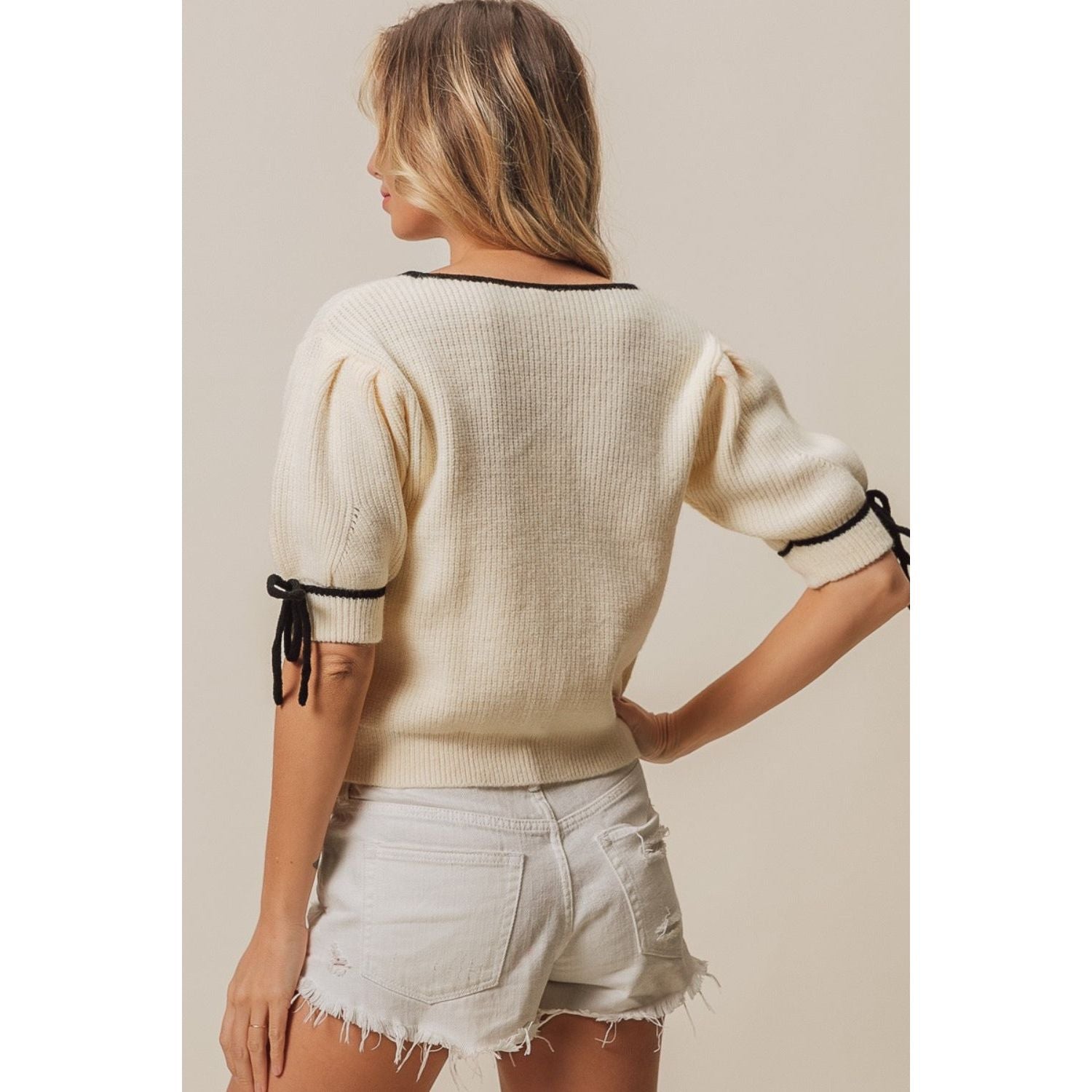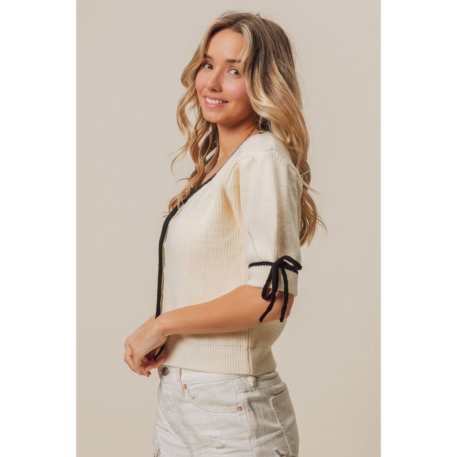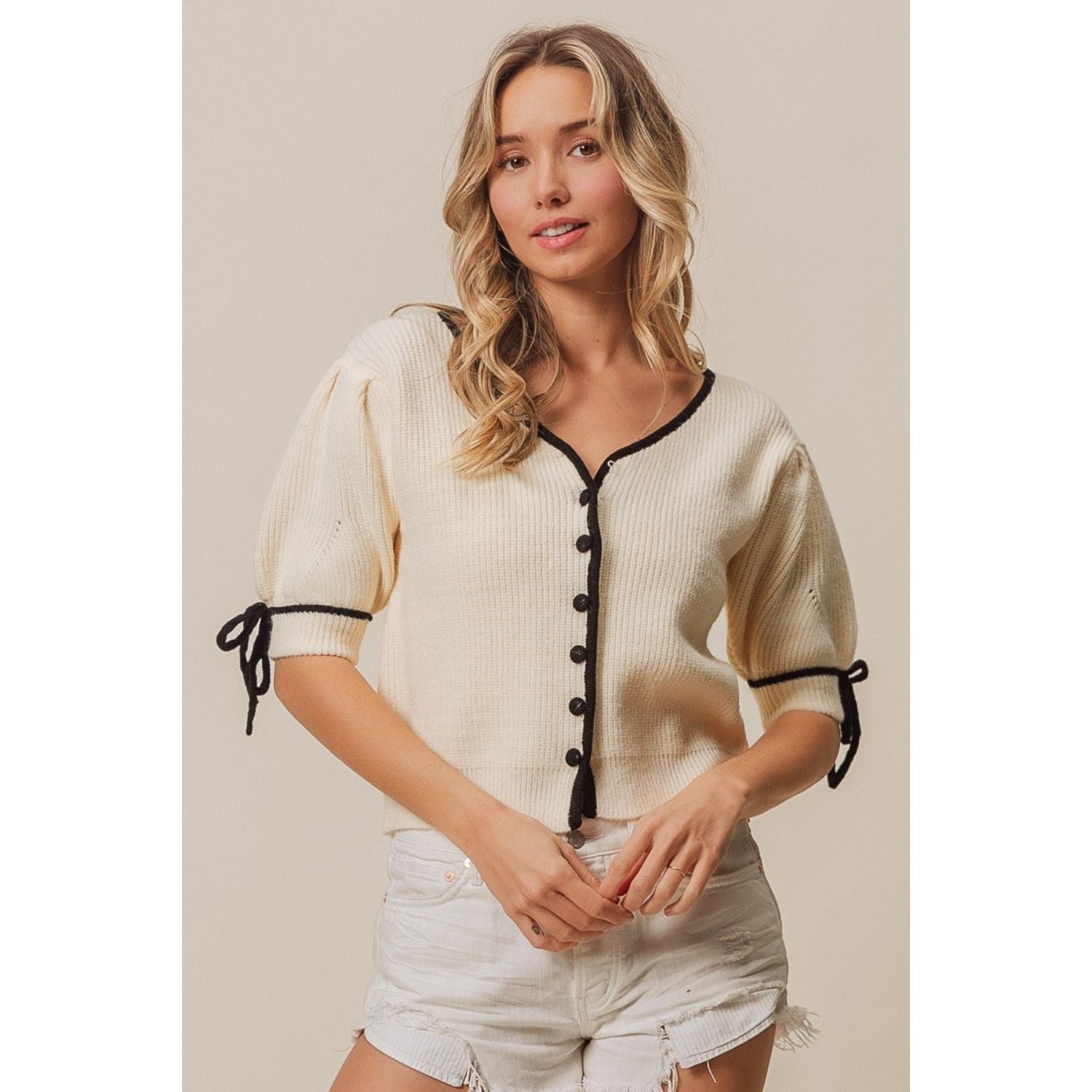 BiBi Contrast Binding Buttoned Cardigan