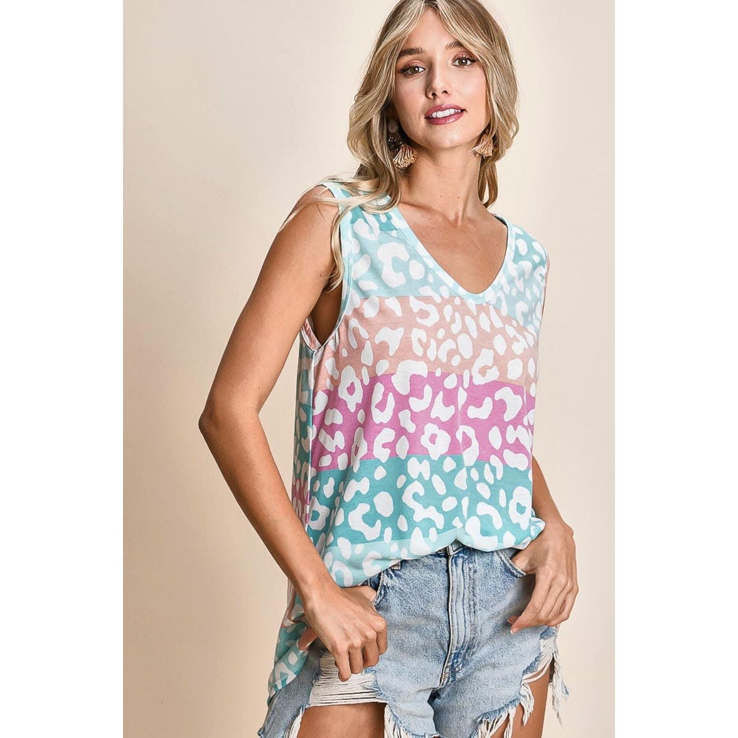 The Leopard V-Neck Tank is a bold and stylish addition to your wardrobe. This tank features a trendy leopard print design that adds a touch of wild flair to your outfit. The V-neckline provides a flattering silhouette and adds a hint of sophistication to the top. Perfect for layering or wearing on its own, this tank can be dressed up or down for a variety of occasions. Make a statement with the fierce and fabulous Leopard V-Neck Tank. Embrace your adventurous side with this chic and on-trend top that is sure to turn heads.