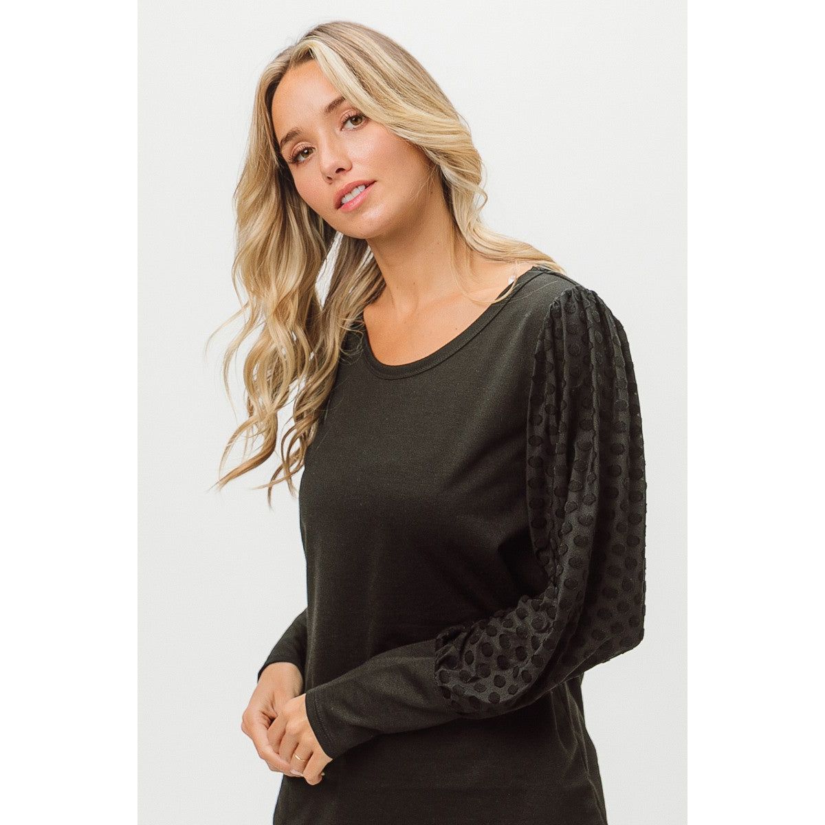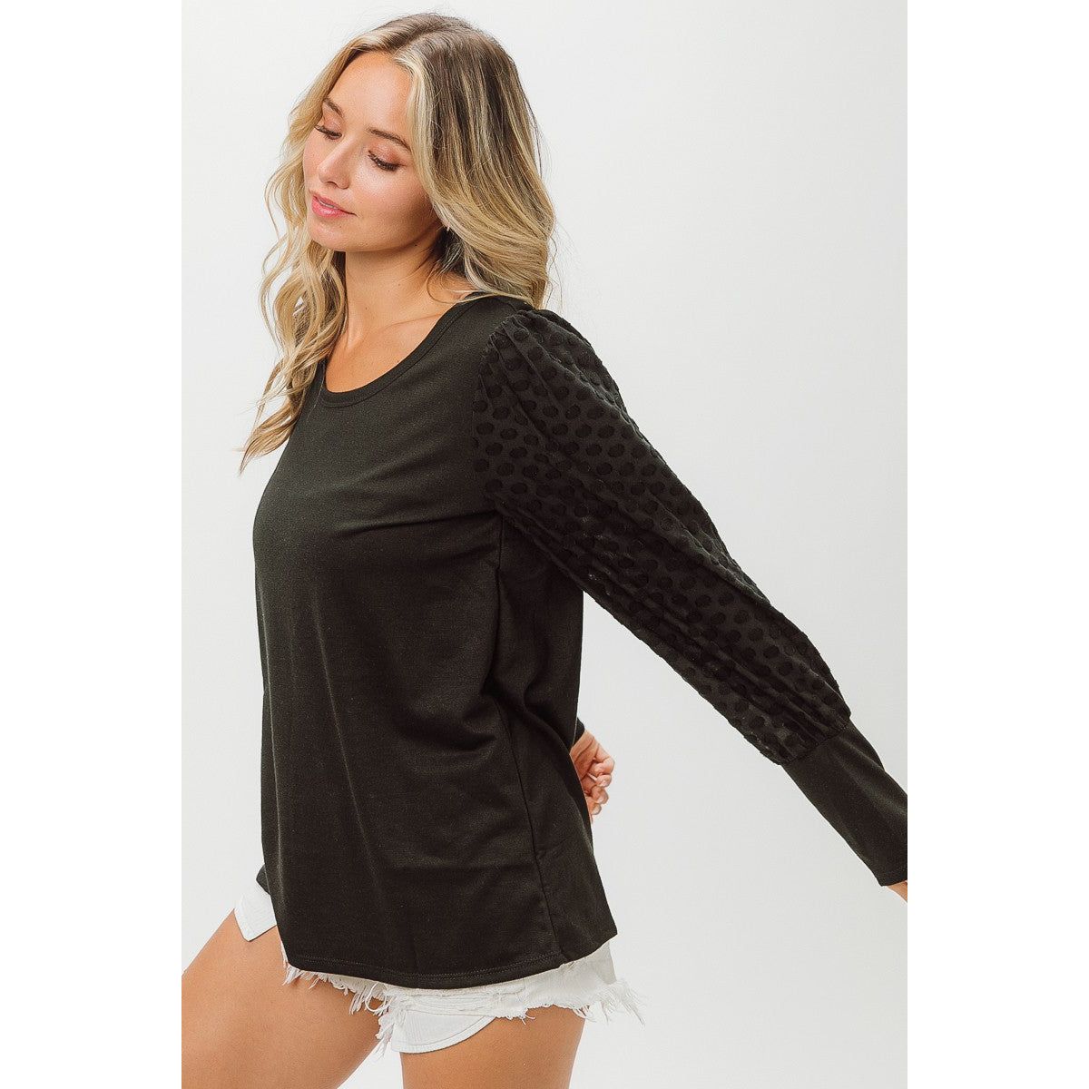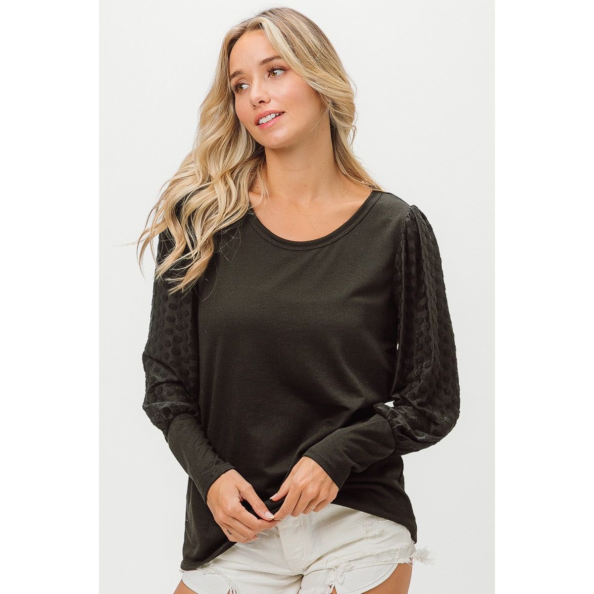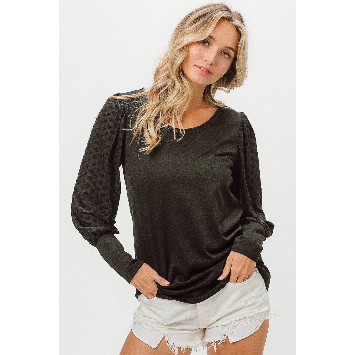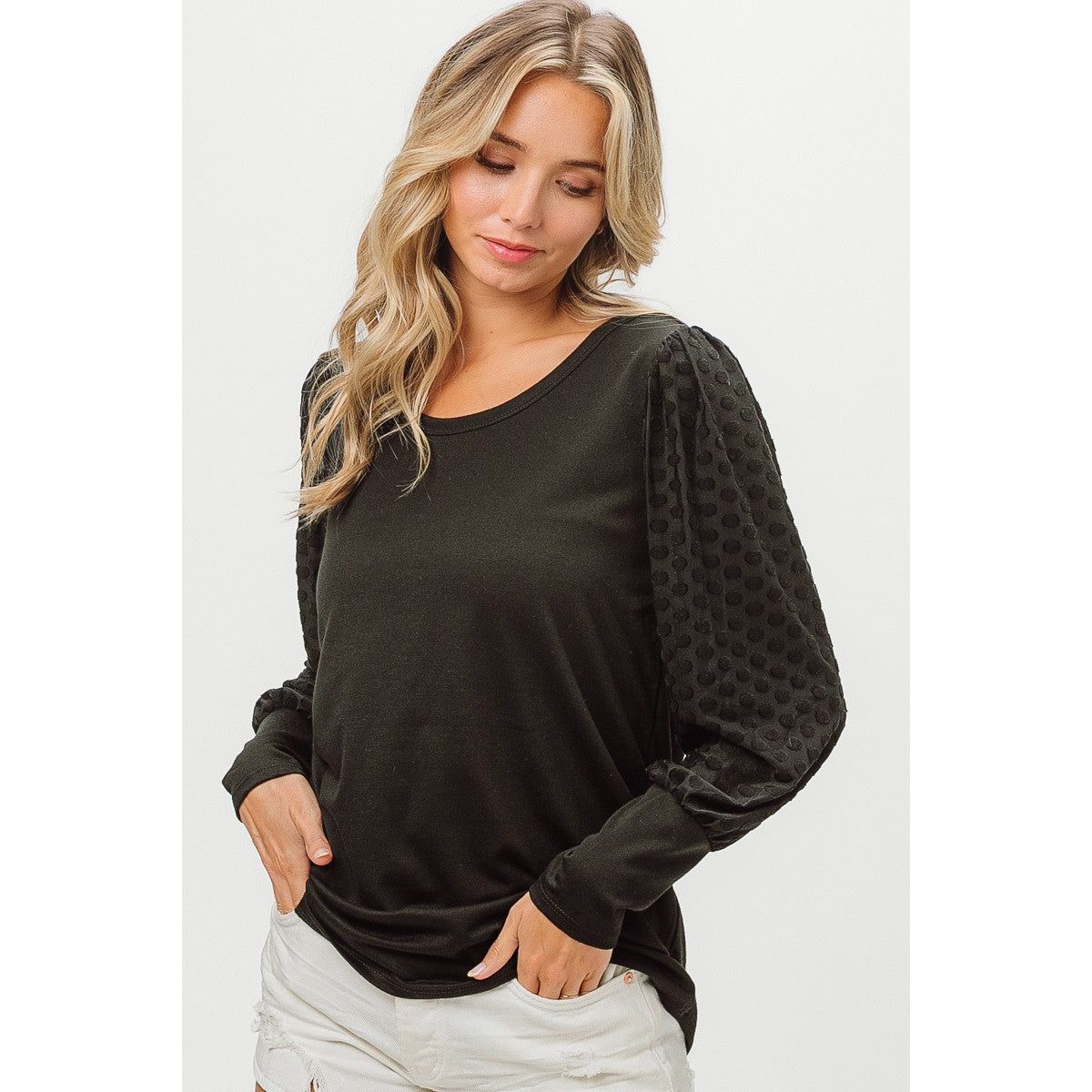 BiBi Round Neck Polka Dot Lantern Sleeve Top