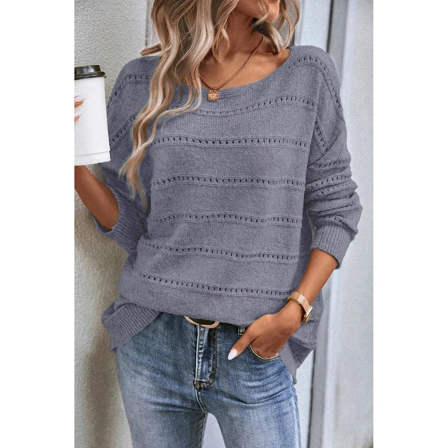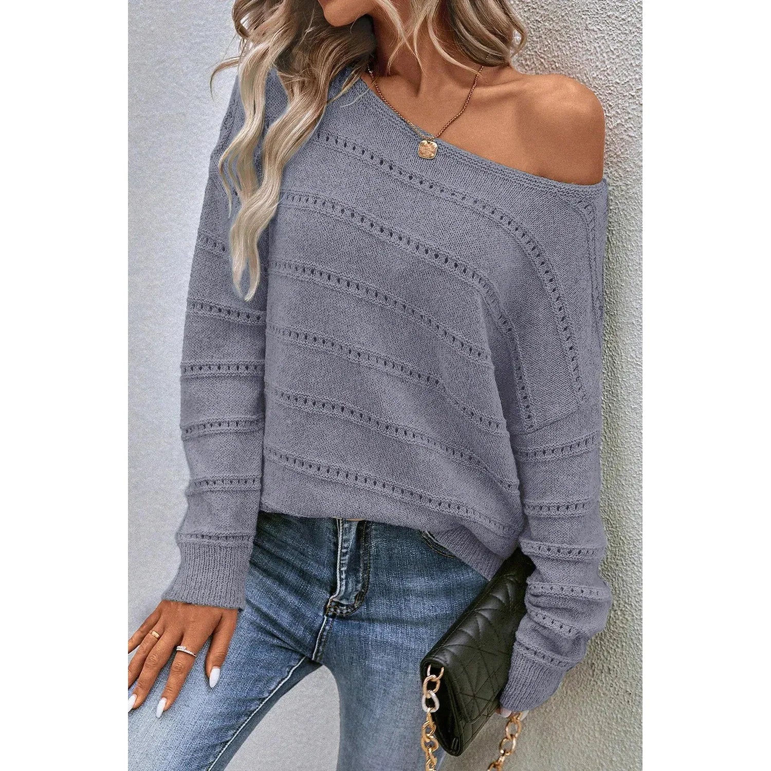Boat Neck Dropped Shoulder Sweater
