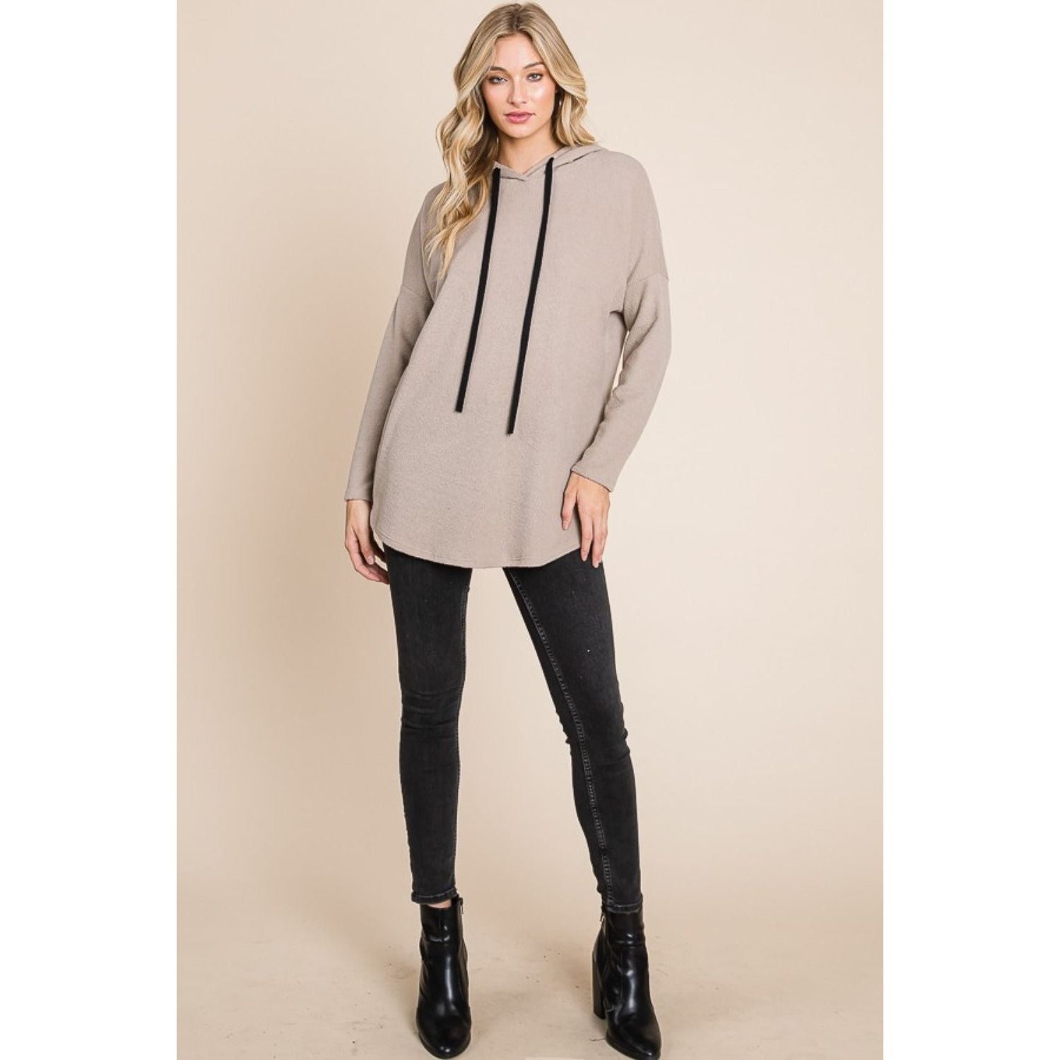 Stay cozy and stylish in this relaxed-fit knit hoodie with a soft, brushed inside for ultimate comfort. This hoodie is trendy and functional and features a drawstring hood, dropped shoulders, and long sleeves. This versatile piece is a must-have for your casual wardrobe, perfect for layering or wearing on its own. The relaxed fit allows for easy movement and a laid-back look. Whether you're lounging at home or running errands, this hoodie will keep you feeling comfy and looking cool. Elevate your off-duty style with this relaxed-fit knit hoodie!