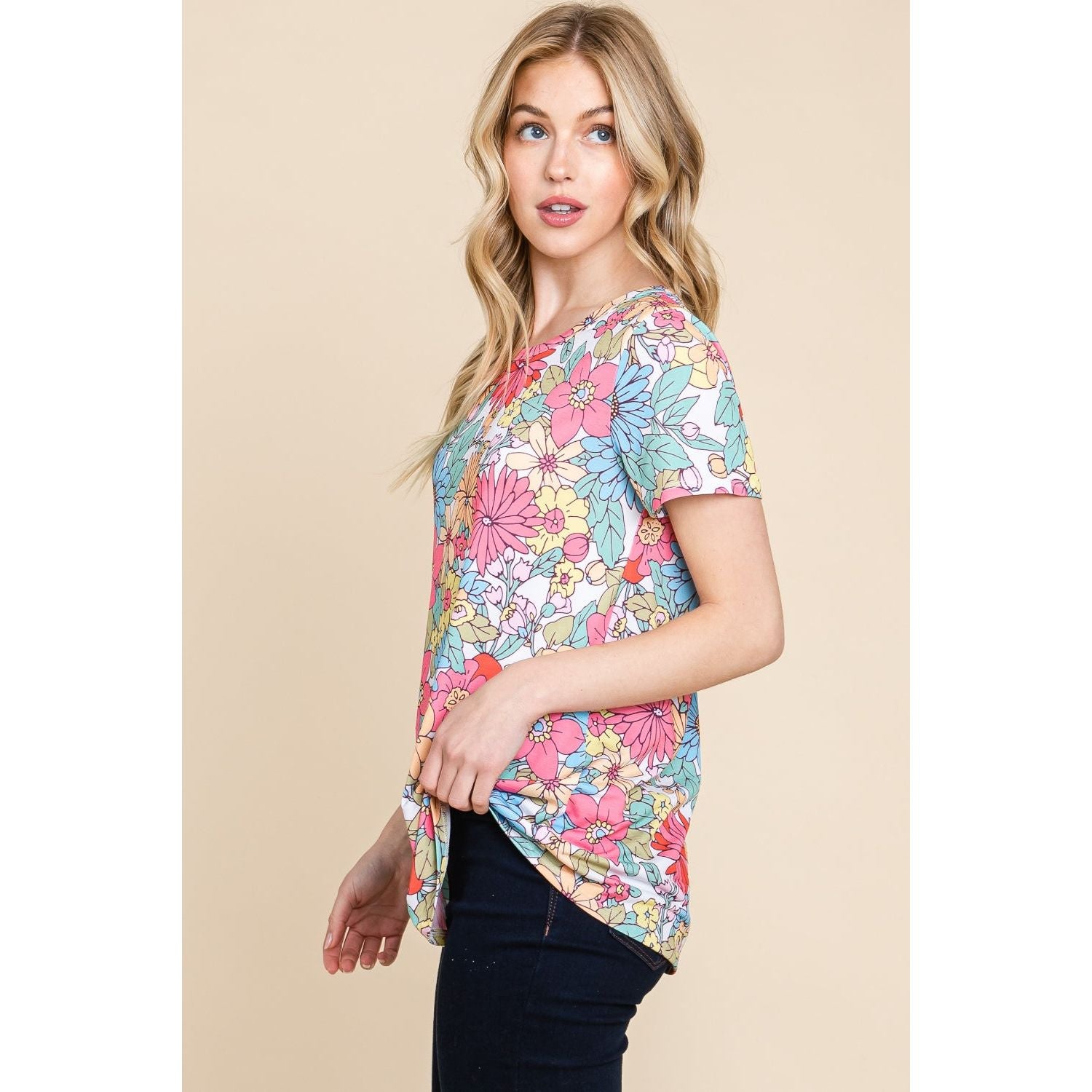 The Floral Short Sleeve T-Shirt is a versatile and stylish piece for your casual wardrobe. Featuring a floral print design, this t-shirt adds a touch of femininity and charm to your outfit. The short sleeves make it perfect for everyday wear during warmer weather. Pair it with jeans or shorts for a relaxed and effortless look. The comfortable fabric ensures a great fit and all-day comfort. Elevate your casual style with the trendy and easy-to-wear Floral Short Sleeve T-Shirt for a fashion-forward and comfortable ensemble.