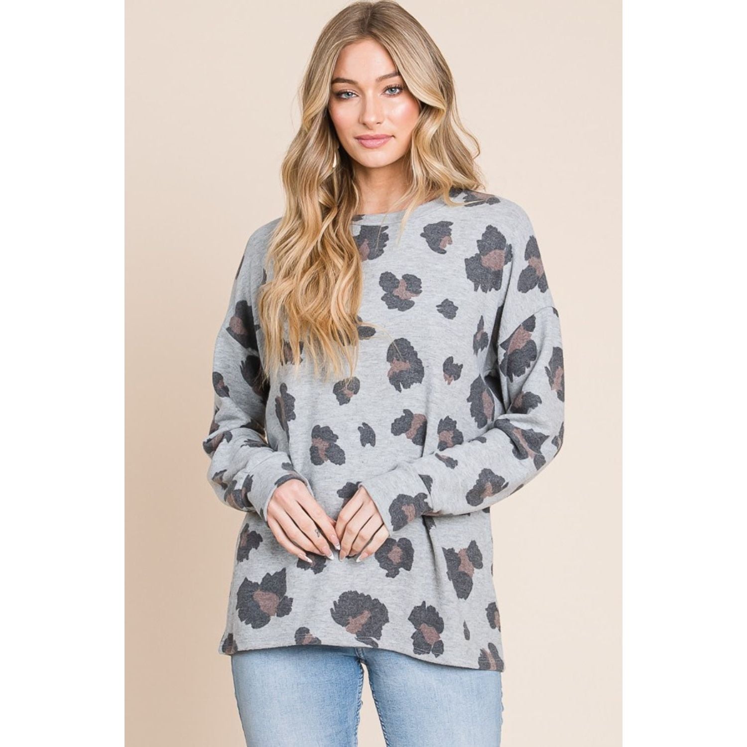 BOMBOM Leopard Drop Shoulder T-Shirt