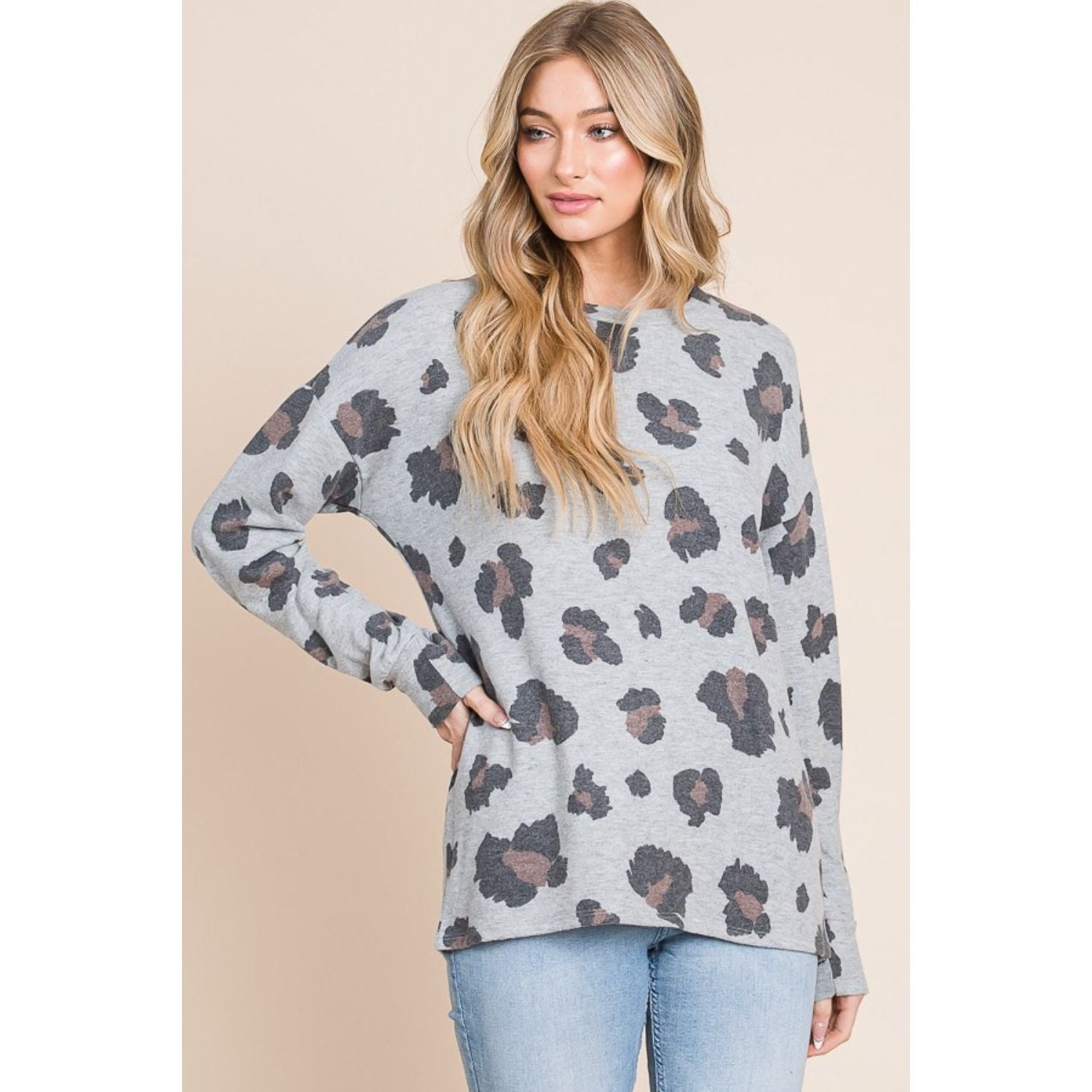 Make a fierce statement with this leopard print drop shoulder t-shirt. The bold leopard print design adds a touch of wild style to your outfit. The drop shoulder detail creates a relaxed and trendy look, perfect for casual days. Pair it with jeans or skirts for an edgy and fashionable ensemble. Show off your bold fashion sense with this stylish leopard print t-shirt. Elevate your wardrobe with a touch of animal-inspired flair.