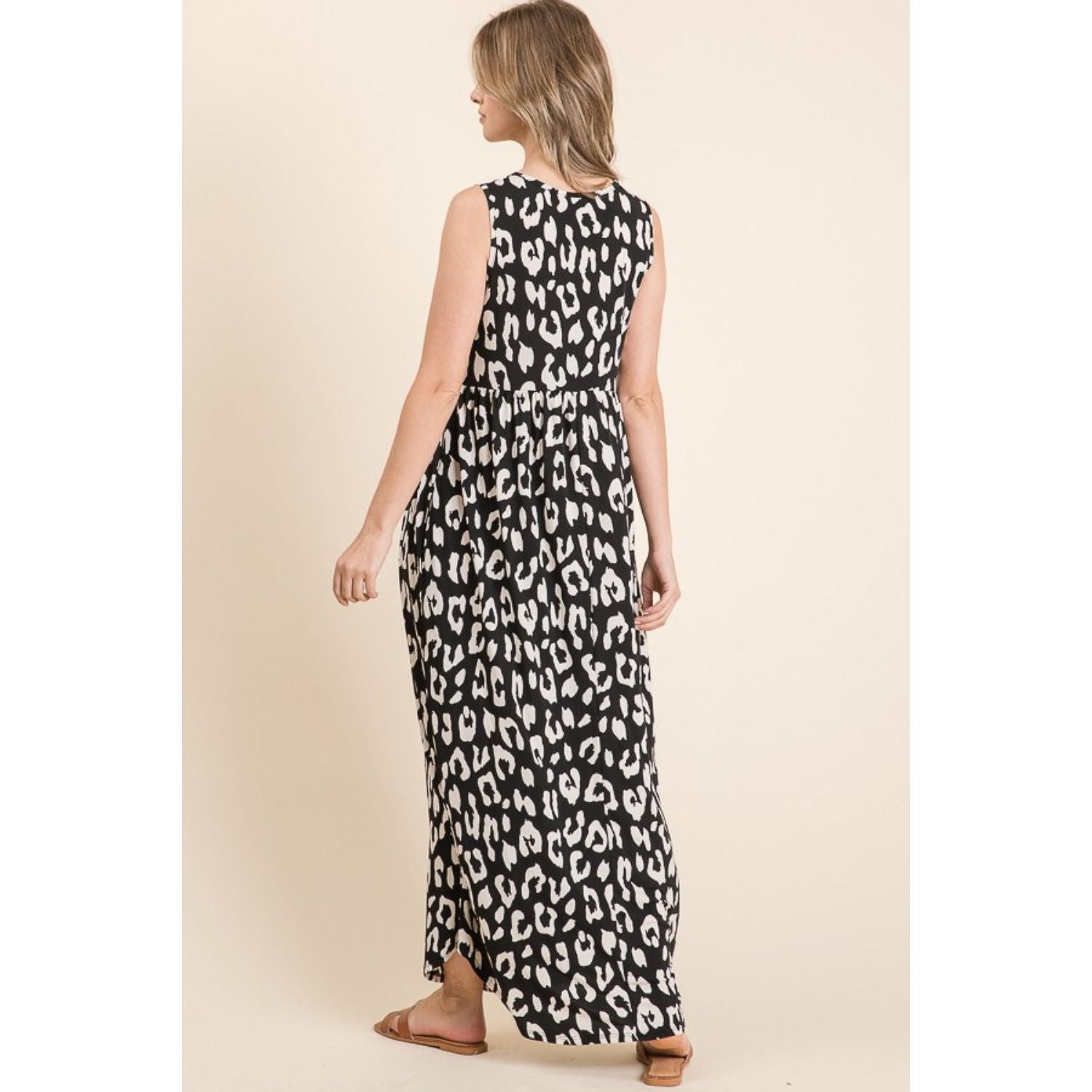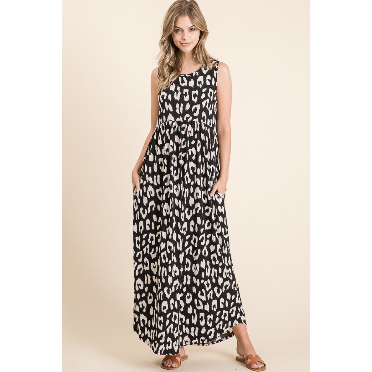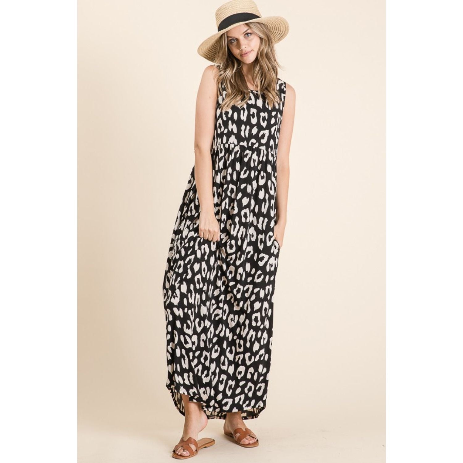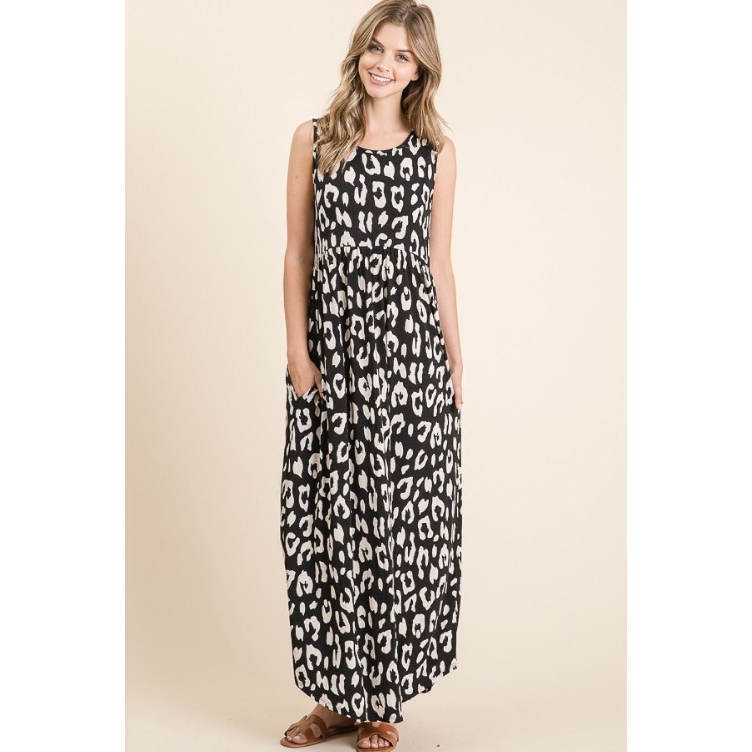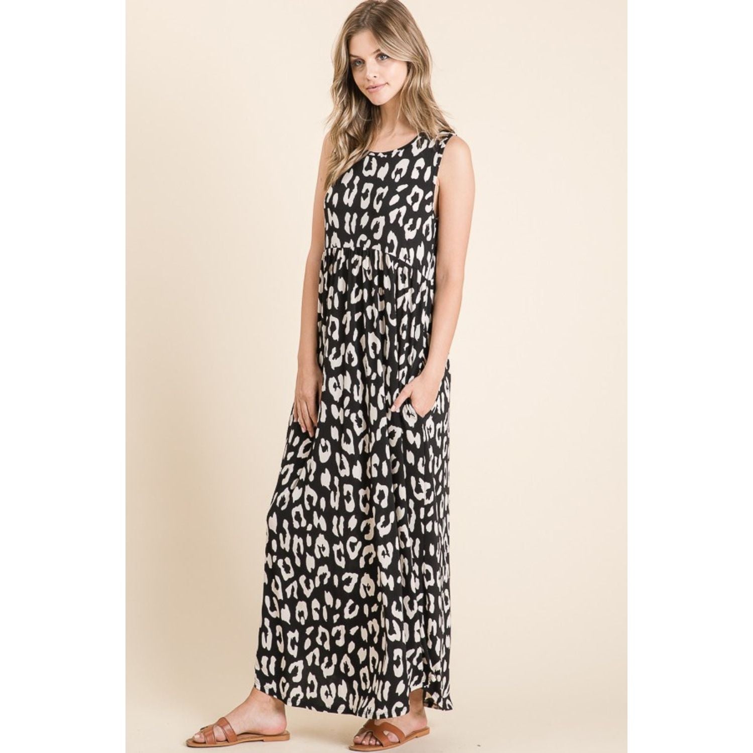 The leopard Print Shirring Waist Maxi Dress with Pockets combines style and functionality. This maxi dress features a trendy animal print design with a shirring at the waist for a flattering silhouette. The addition of pockets adds convenience and practicality to this chic and comfortable dress. Perfect for a stylish and effortless look, this dress is versatile and perfect for various occasions.