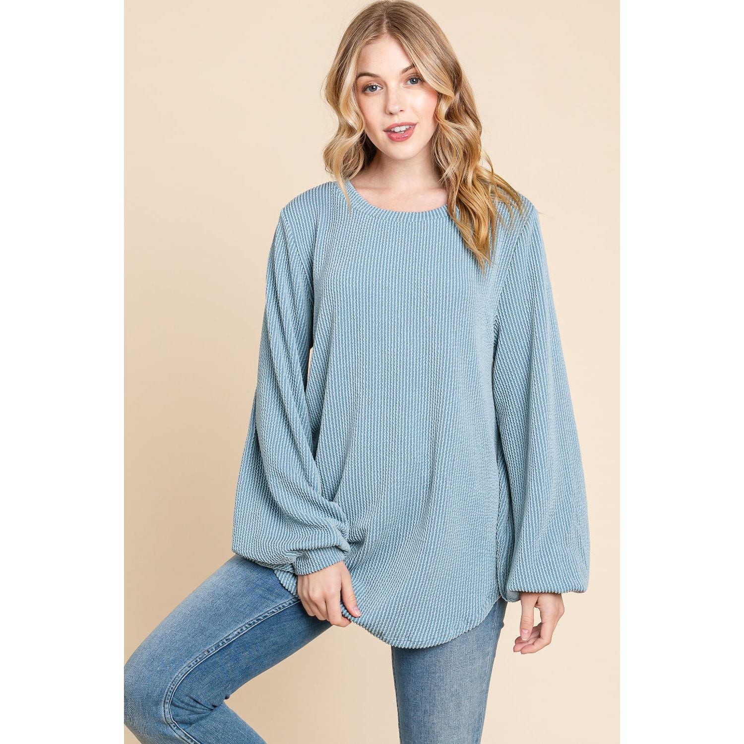 BOMBOM Long Sleeve Curved Hem Ribbed T-Shirt