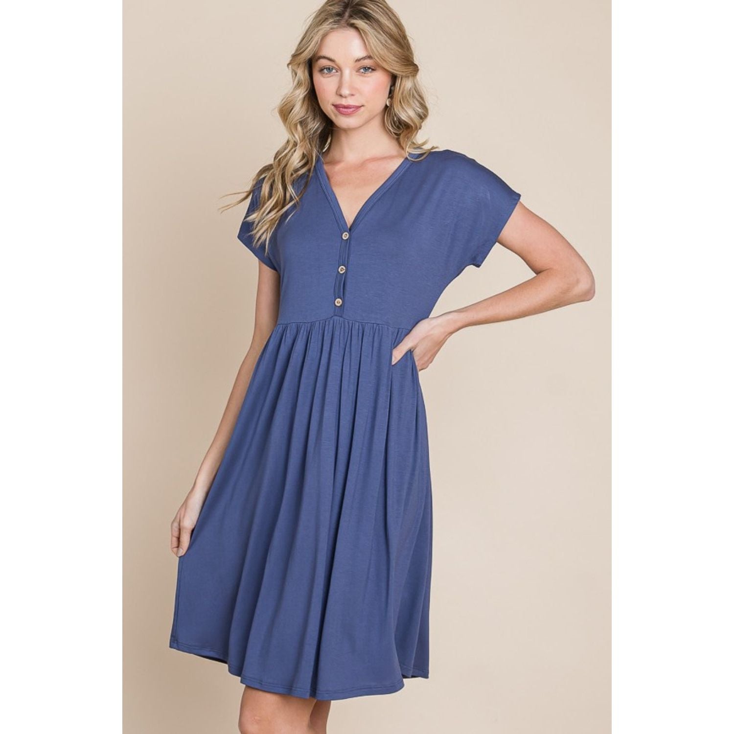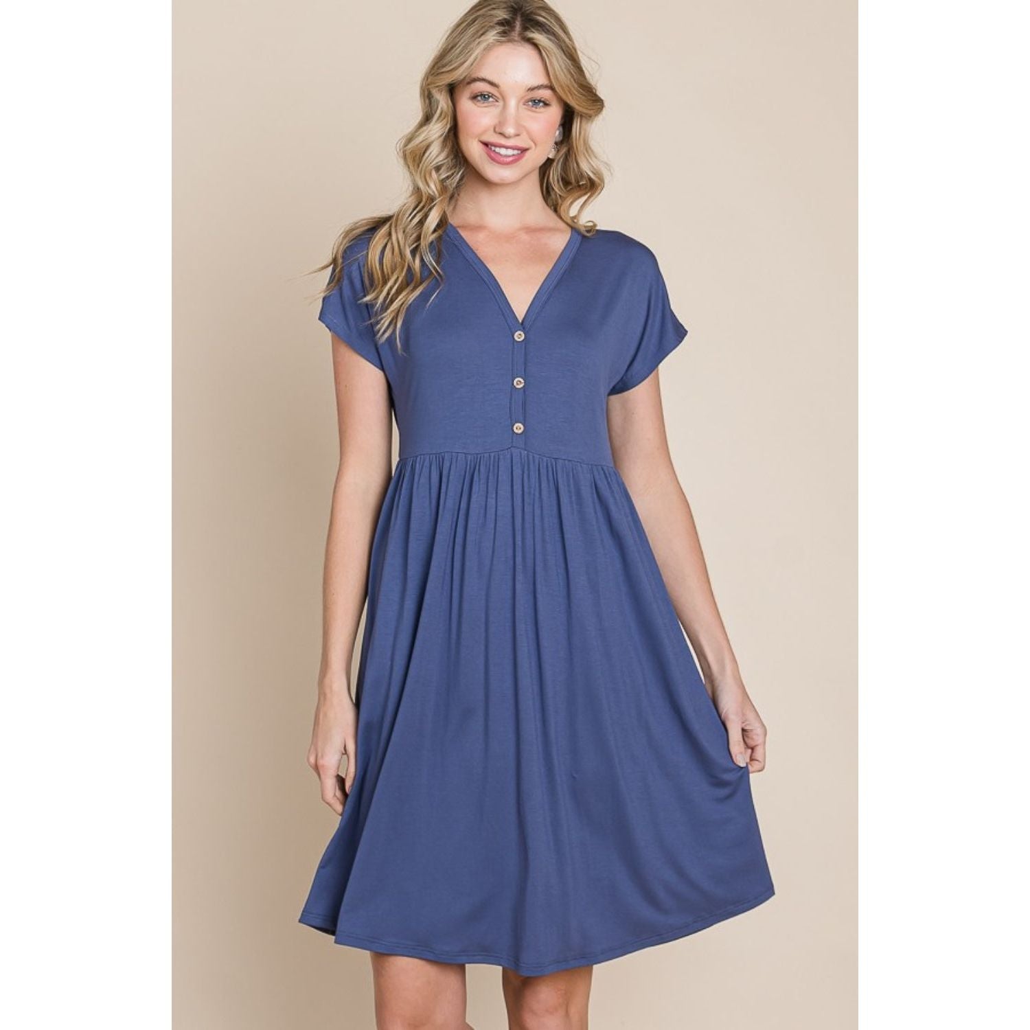 This V-Neck Button Detail Dress is a stylish and versatile piece made from soft rayon spandex fabric, ensuring both comfort and a flattering fit. The V-neckline and button detailing add a touch of sophistication to the dress, making it perfect for various occasions. Elevate your wardrobe with this chic and comfortable dress that combines style and comfort effortlessly.