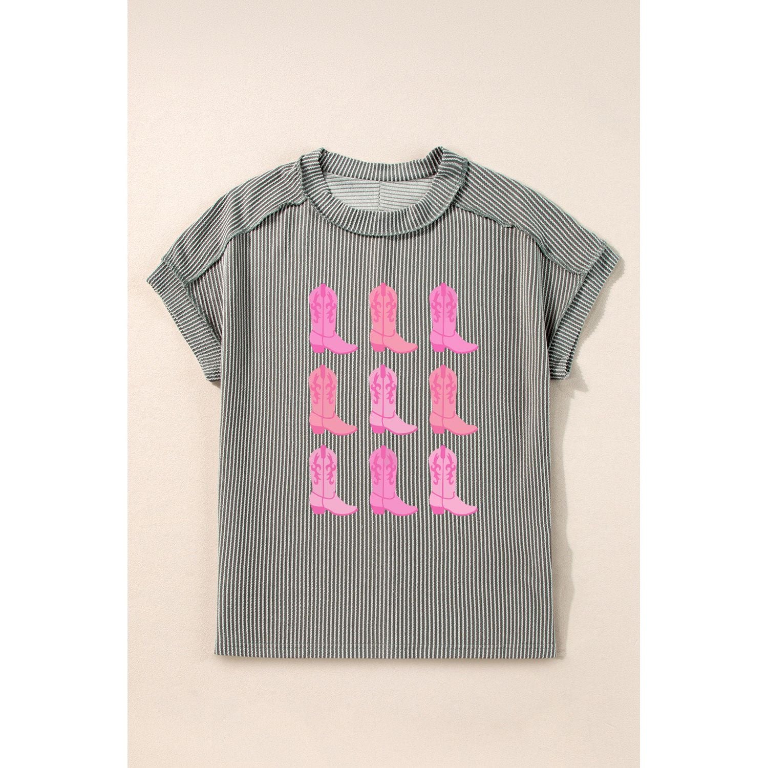 Boots Graphic Striped Round Neck Short Sleeve T-Shirt