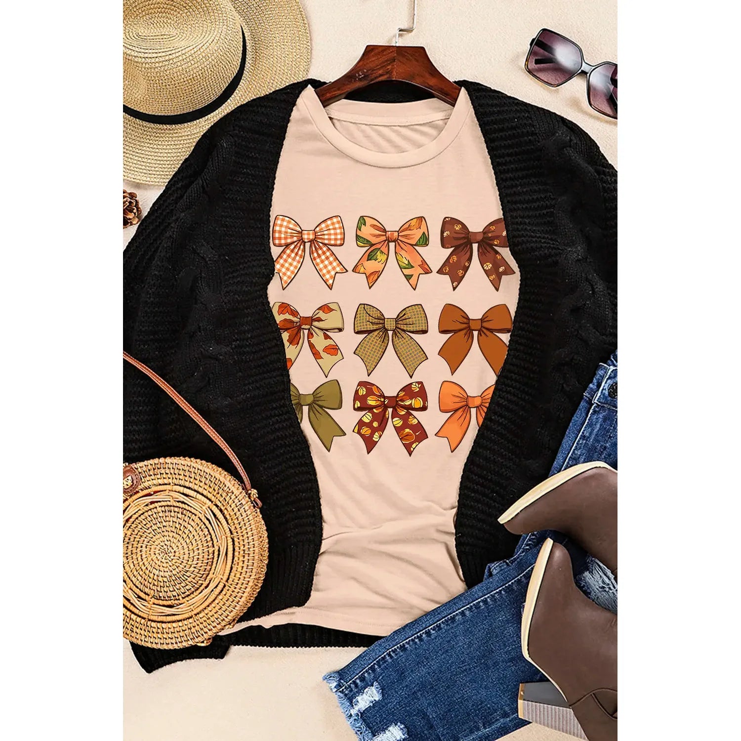 Bow Graphic Round Neck Short Sleeve T-Shirt