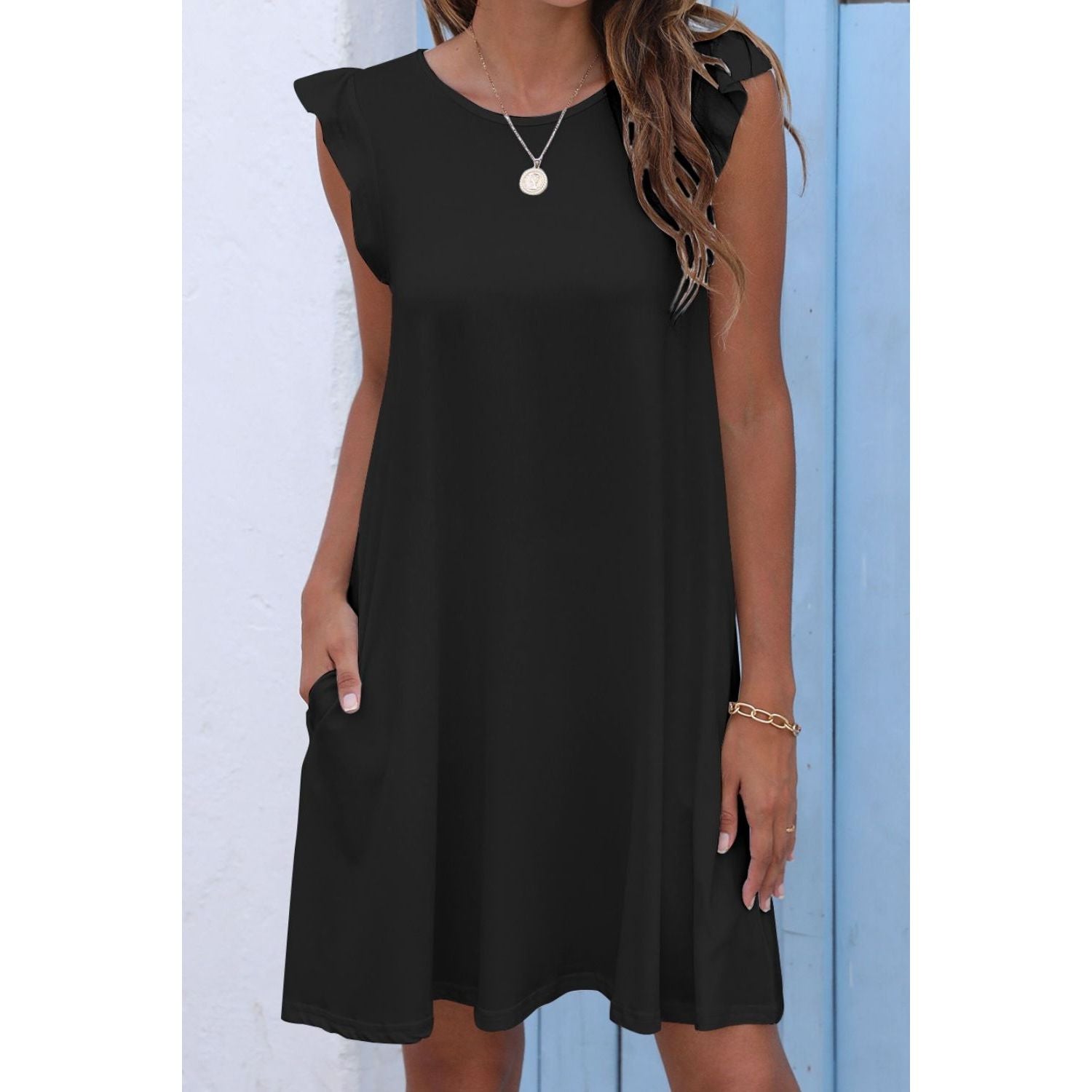 Butterfly Sleeve Round Neck Dress