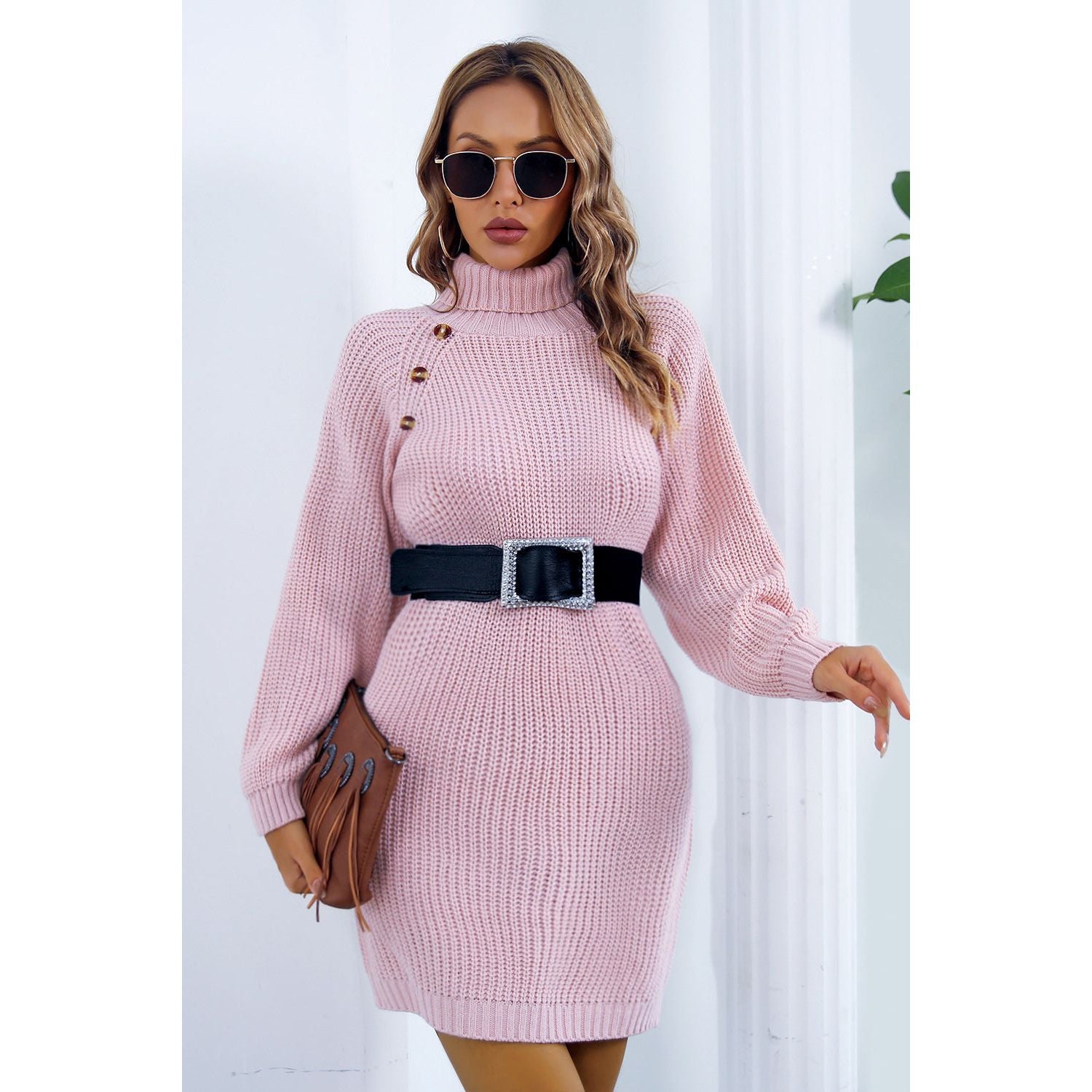 Buttoned Turtleneck Long Sleeve Sweater Dress
