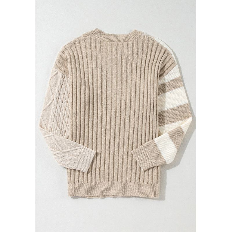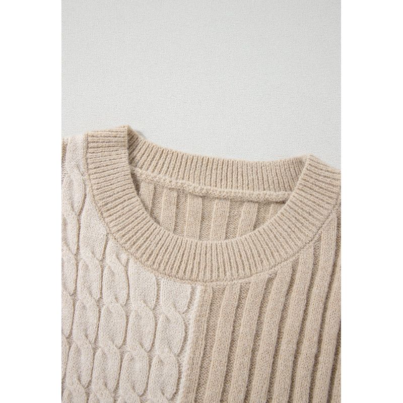 Cable-Knit Color Block Round Neck Sweater