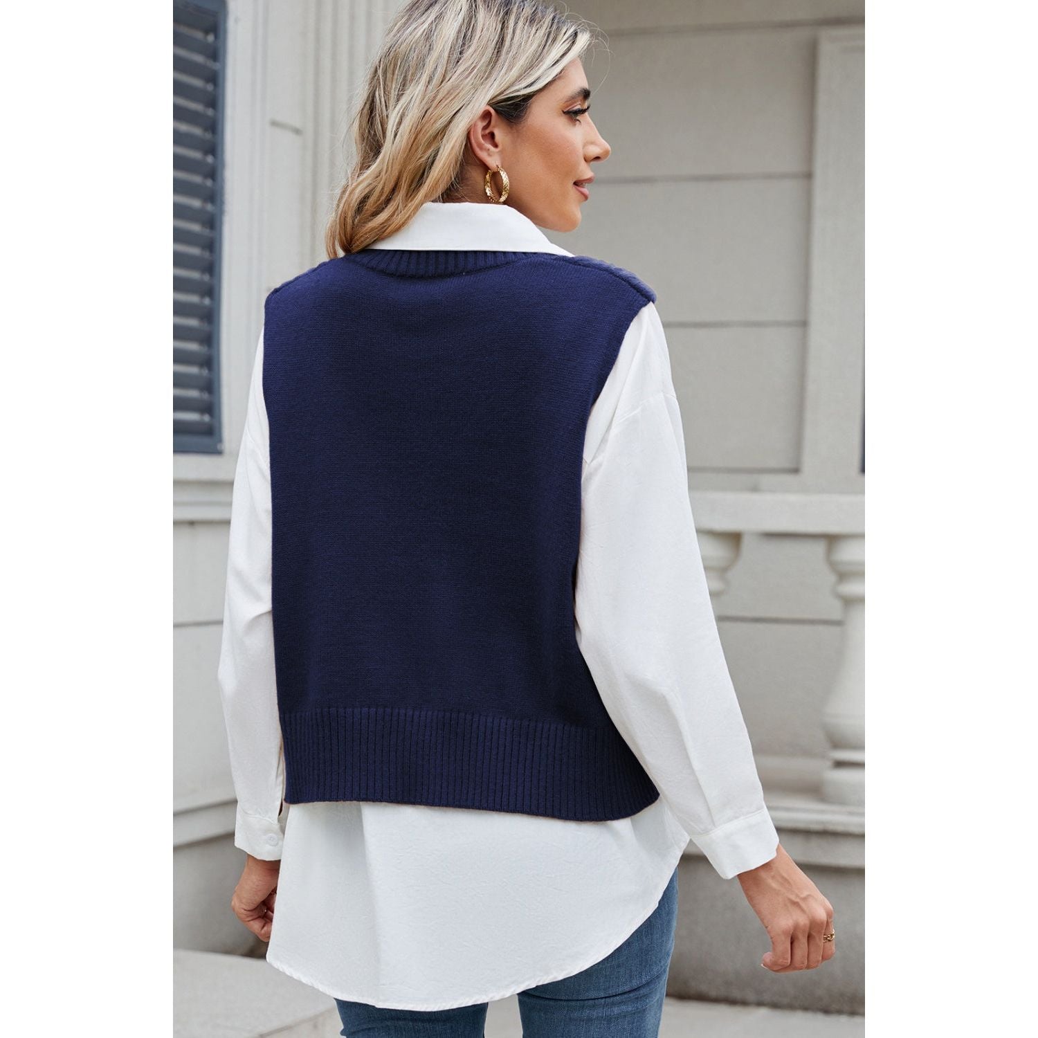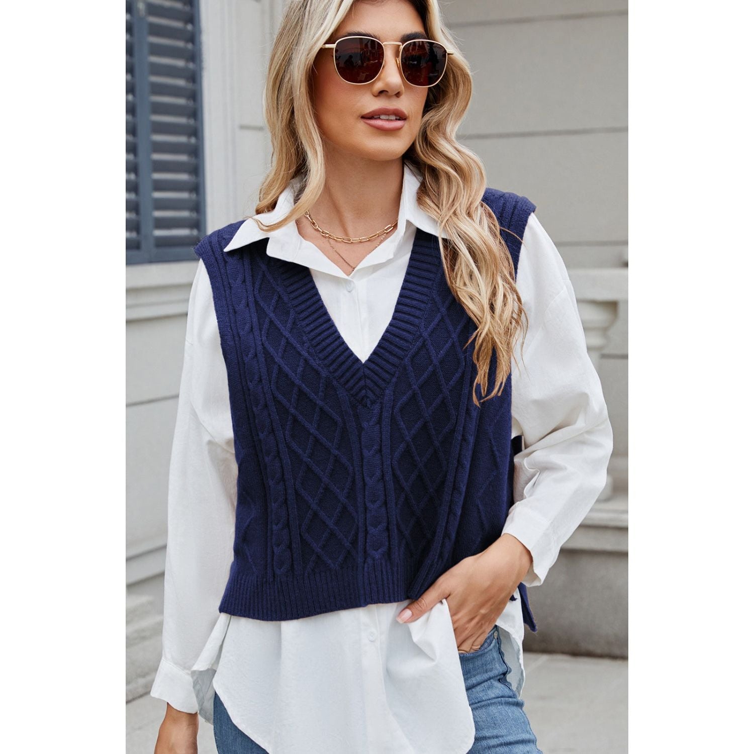 Cable-Knit V-Neck Sweater Vest