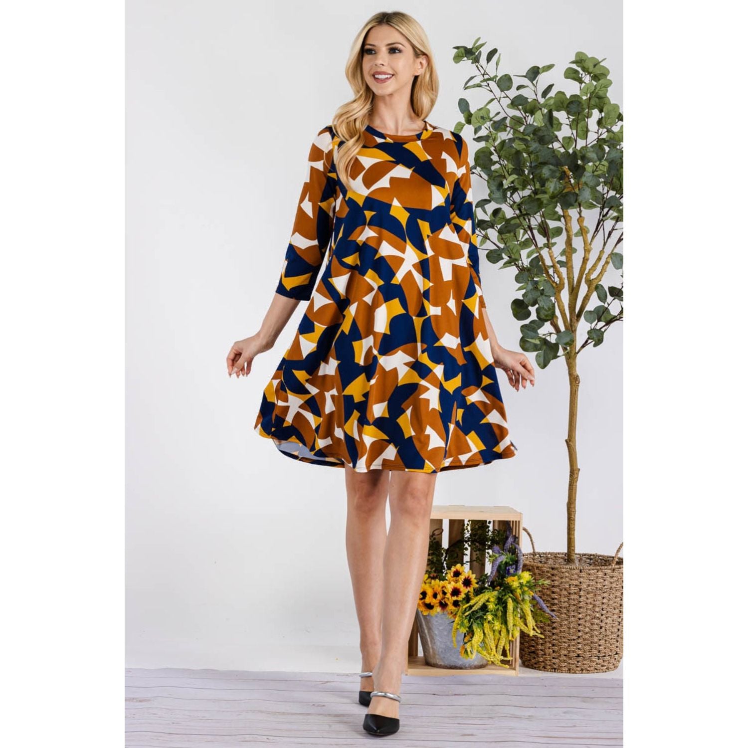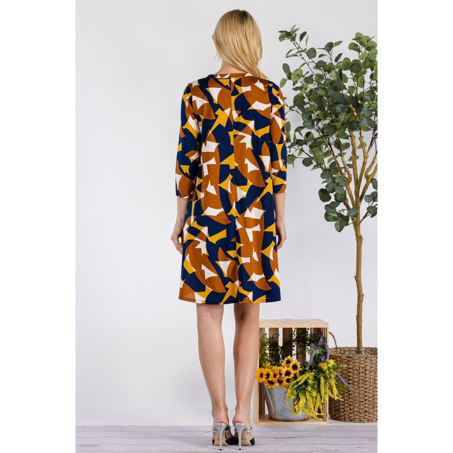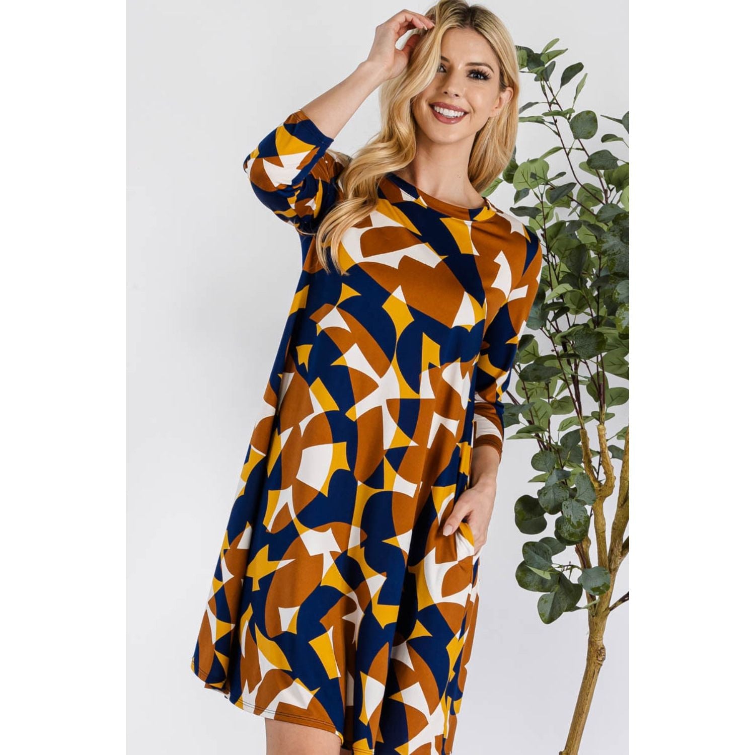 Celeste Full Size Geometric Round Neck Dress with Pockets
