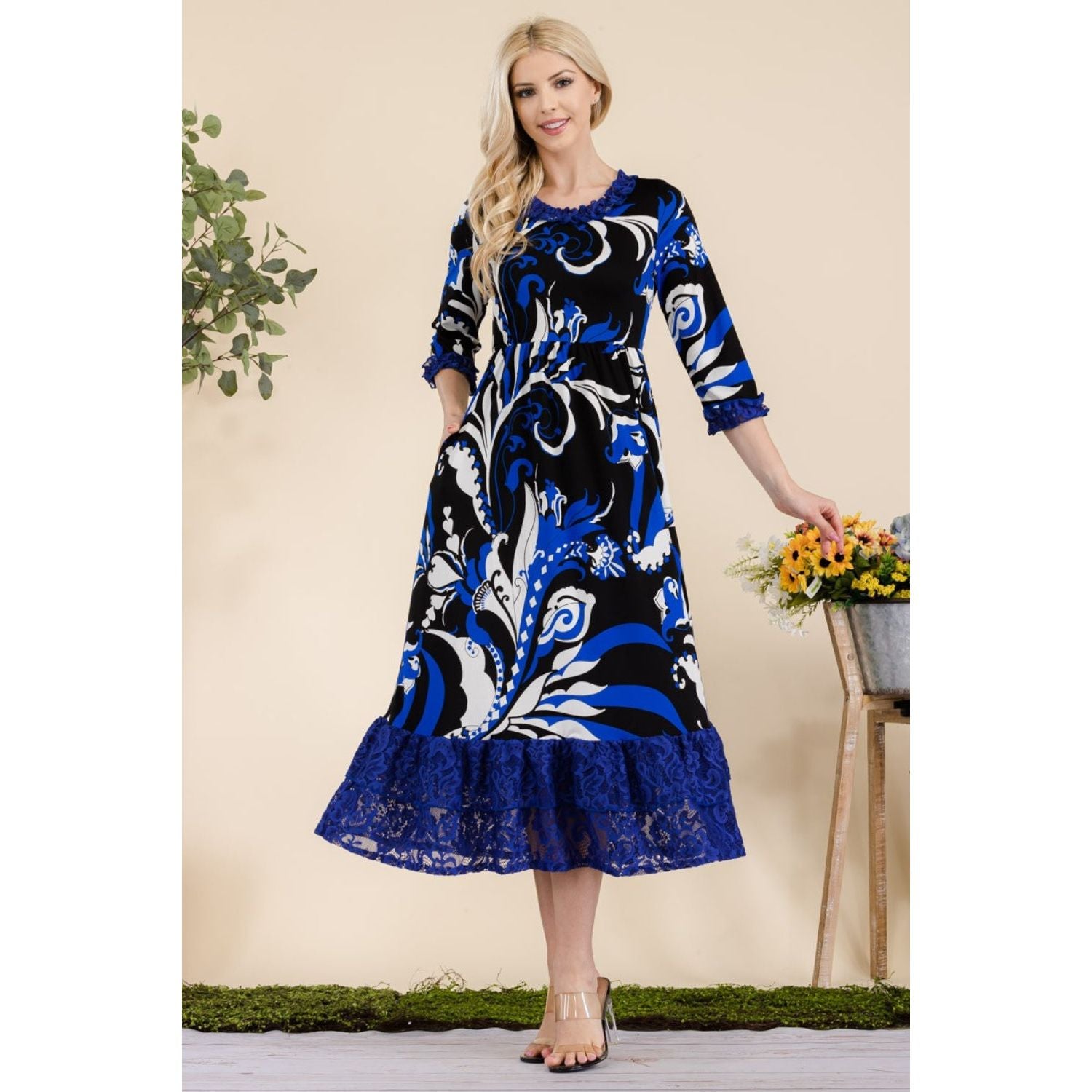 Celeste Full Size Paisley Print Lace Ruffled Midi Dress