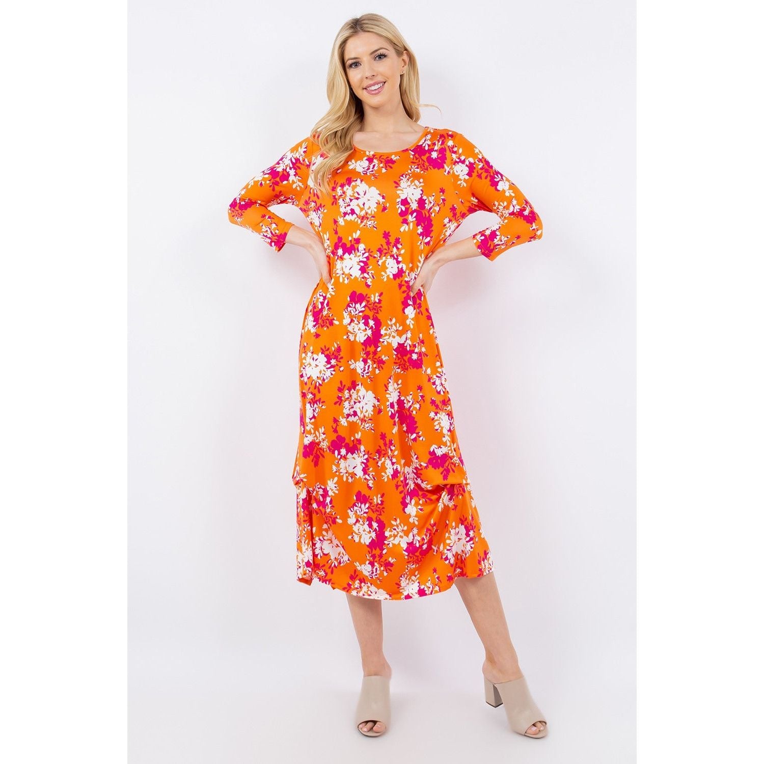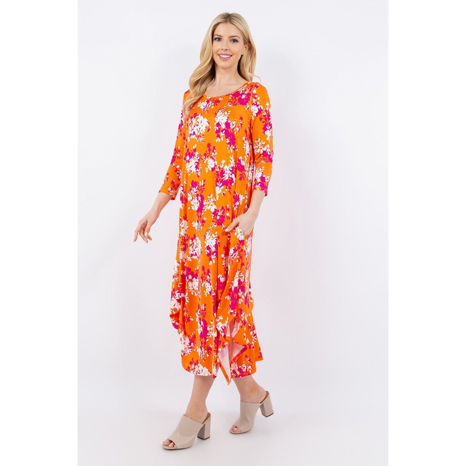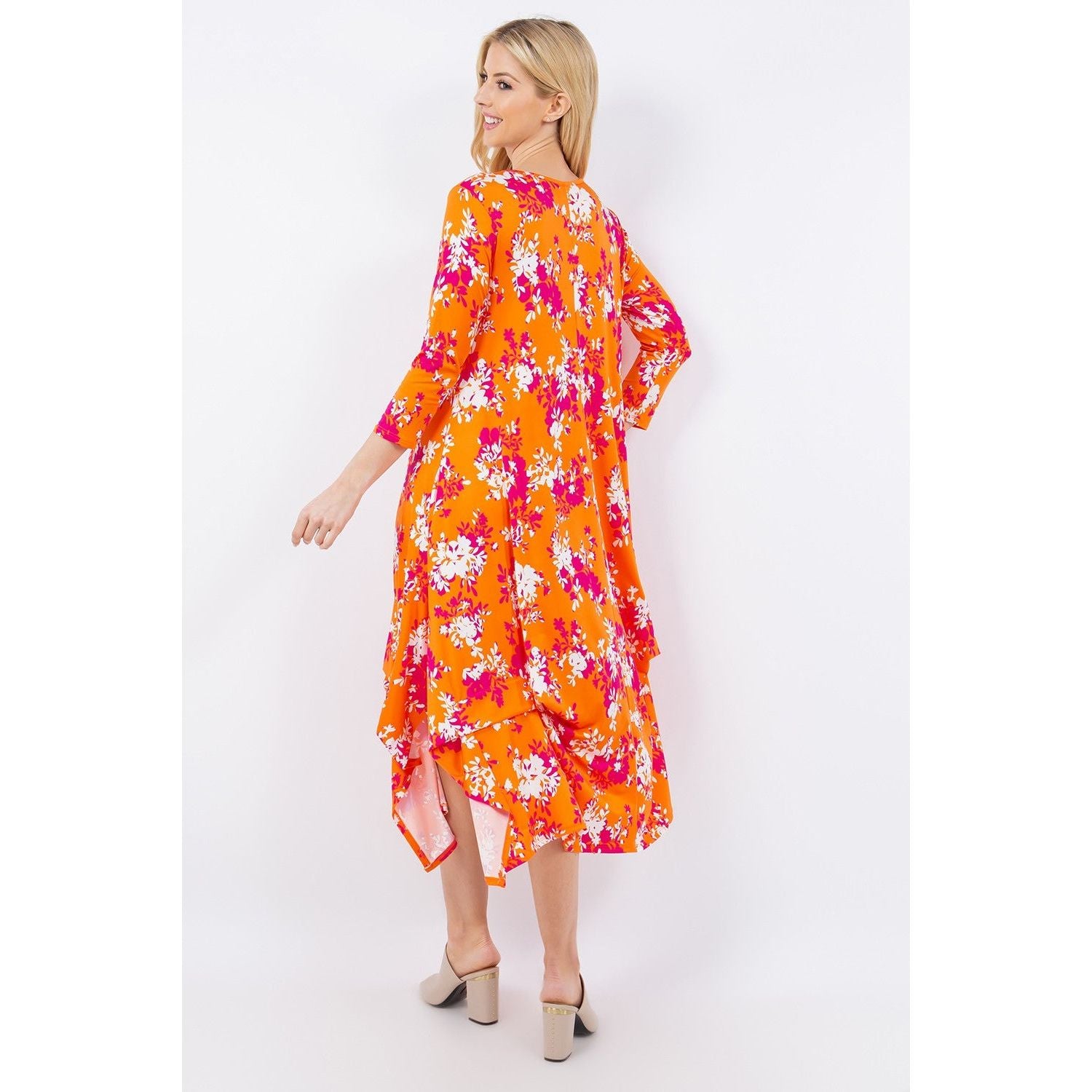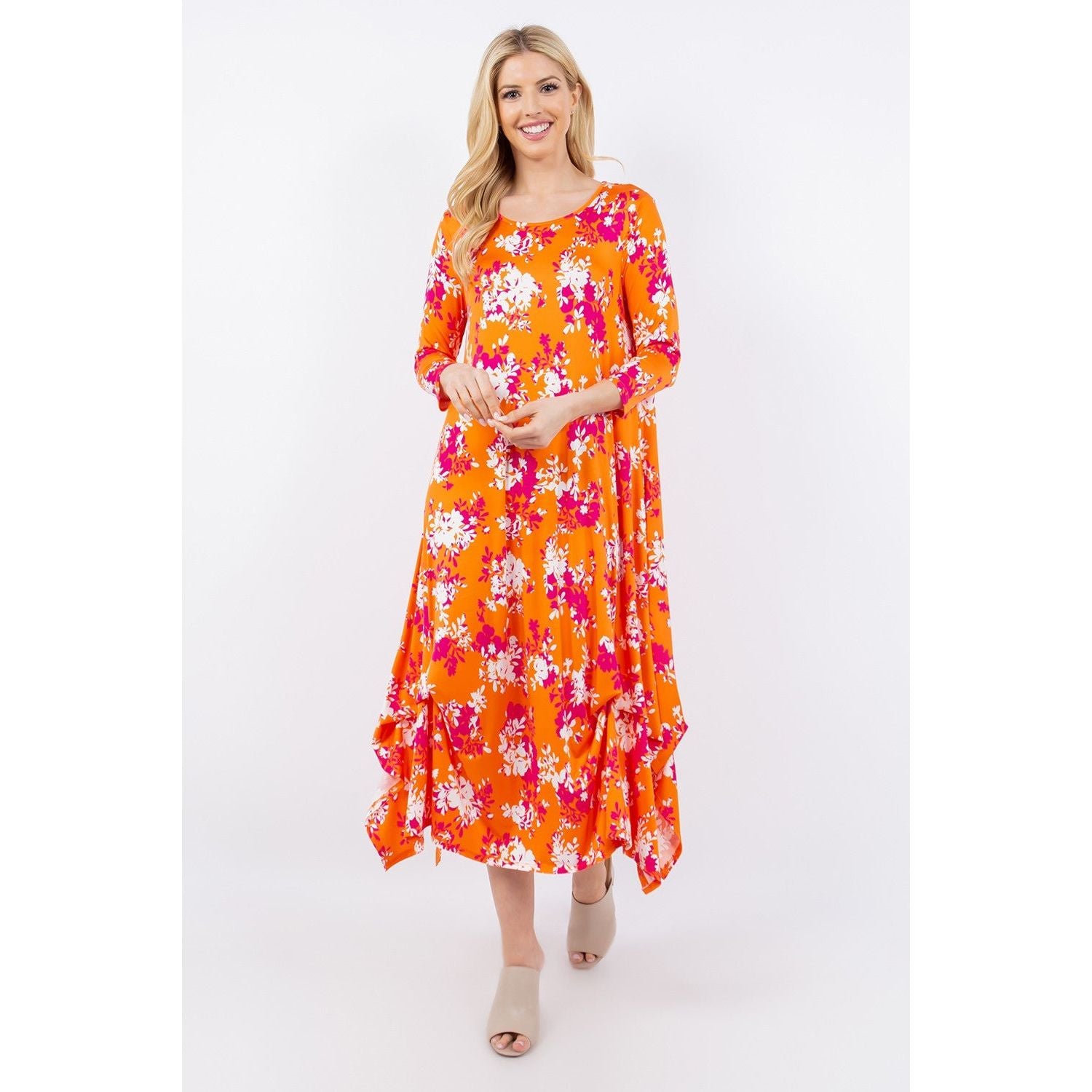 Celeste Full Size Pick-Up Hem Asymmetric Floral Midi Dress