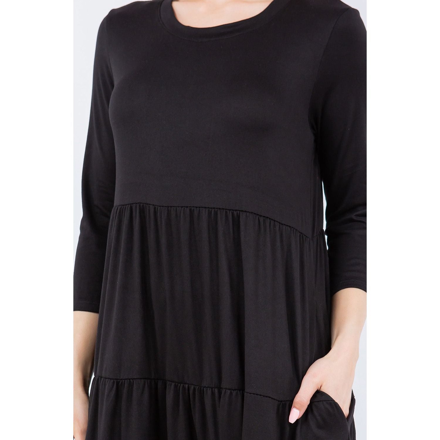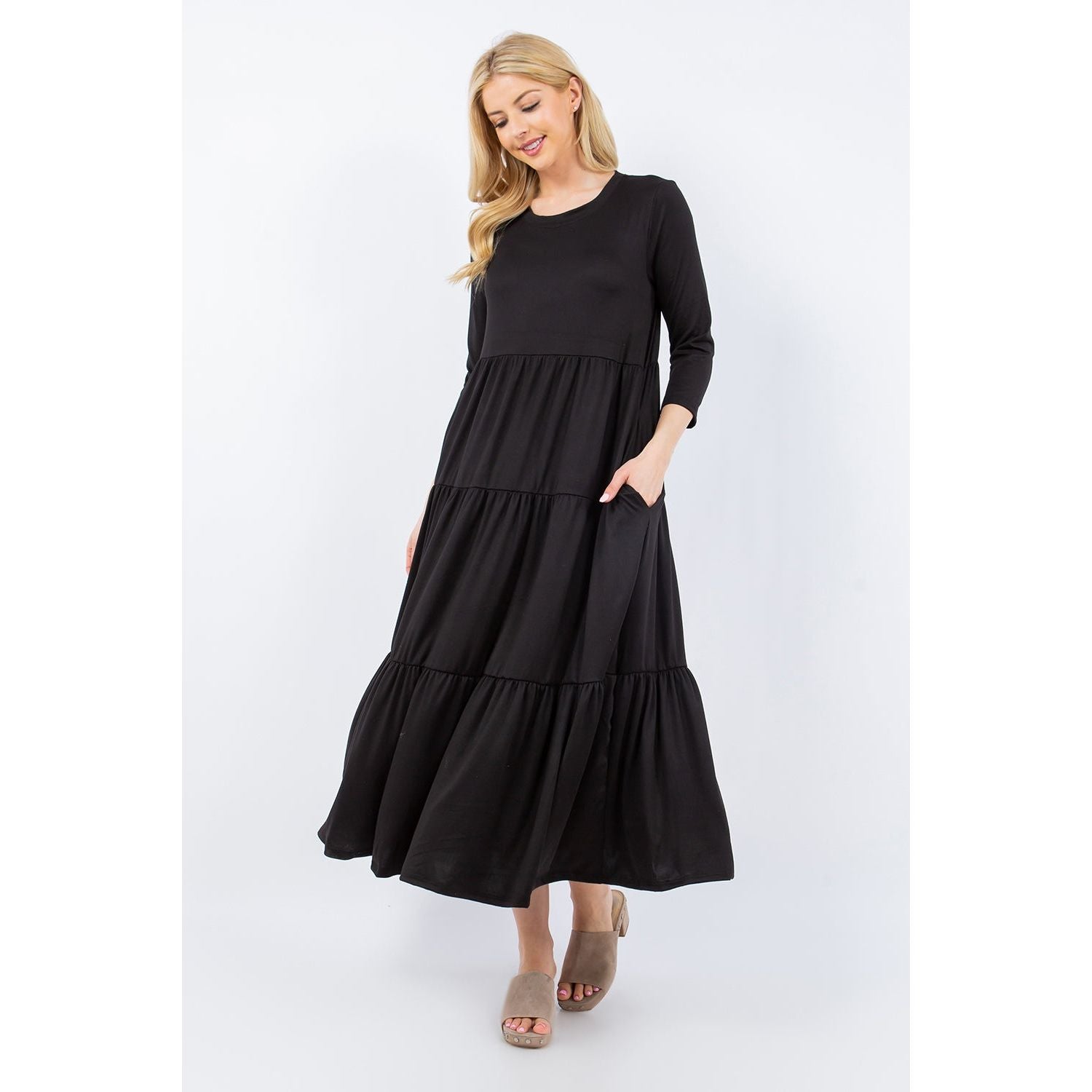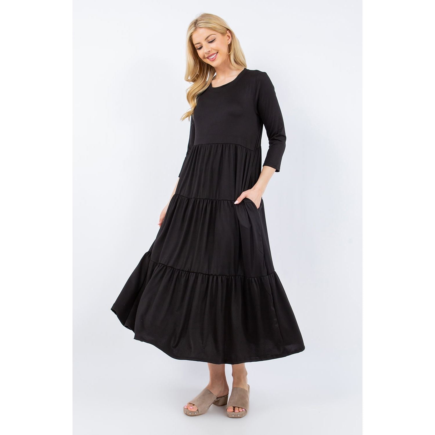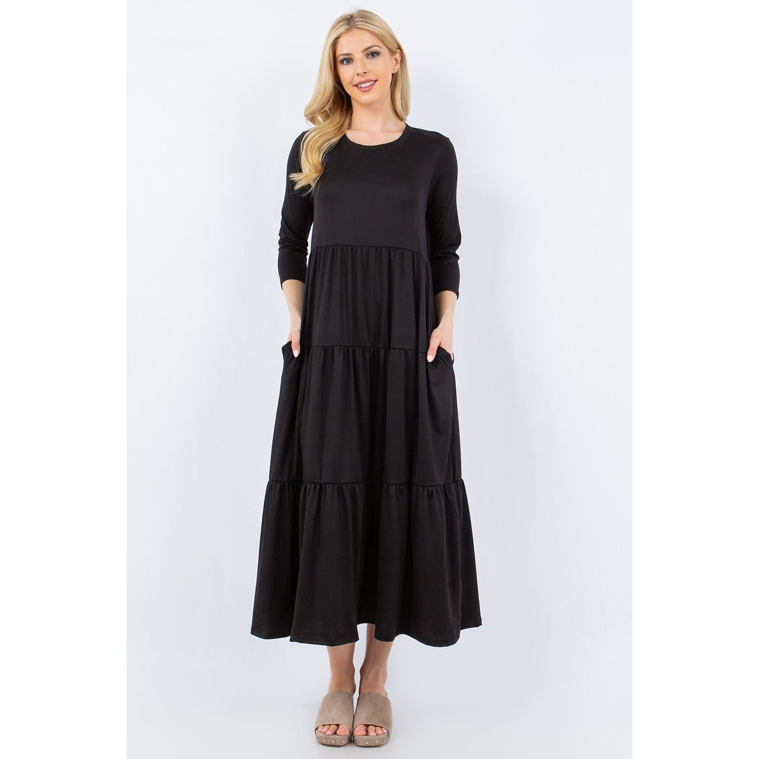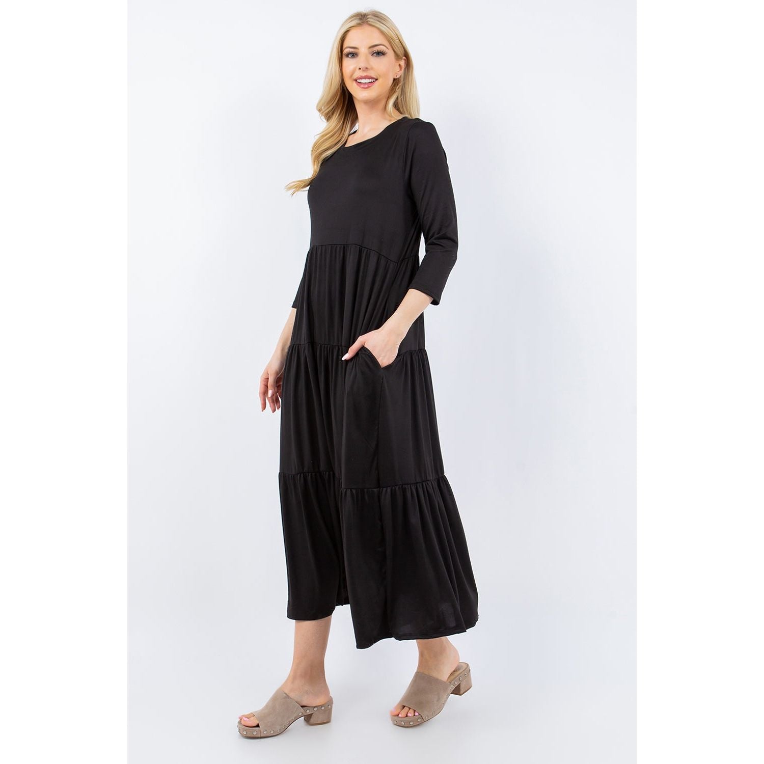 The Tiered Midi Dress with Pockets is a stylish and practical addition to your wardrobe. Featuring multiple tiers for a flowy and flattering silhouette, this dress is perfect for various occasions. The convenient pockets add a functional element to the dress, allowing you to carry essentials with ease. The midi length is versatile and can be dressed up or down with the right accessories. Made from high-quality materials, this dress is comfortable to wear all day long. Elevate your look with this chic and versatile Tiered Midi Dress with Pockets for a fashion-forward ensemble.