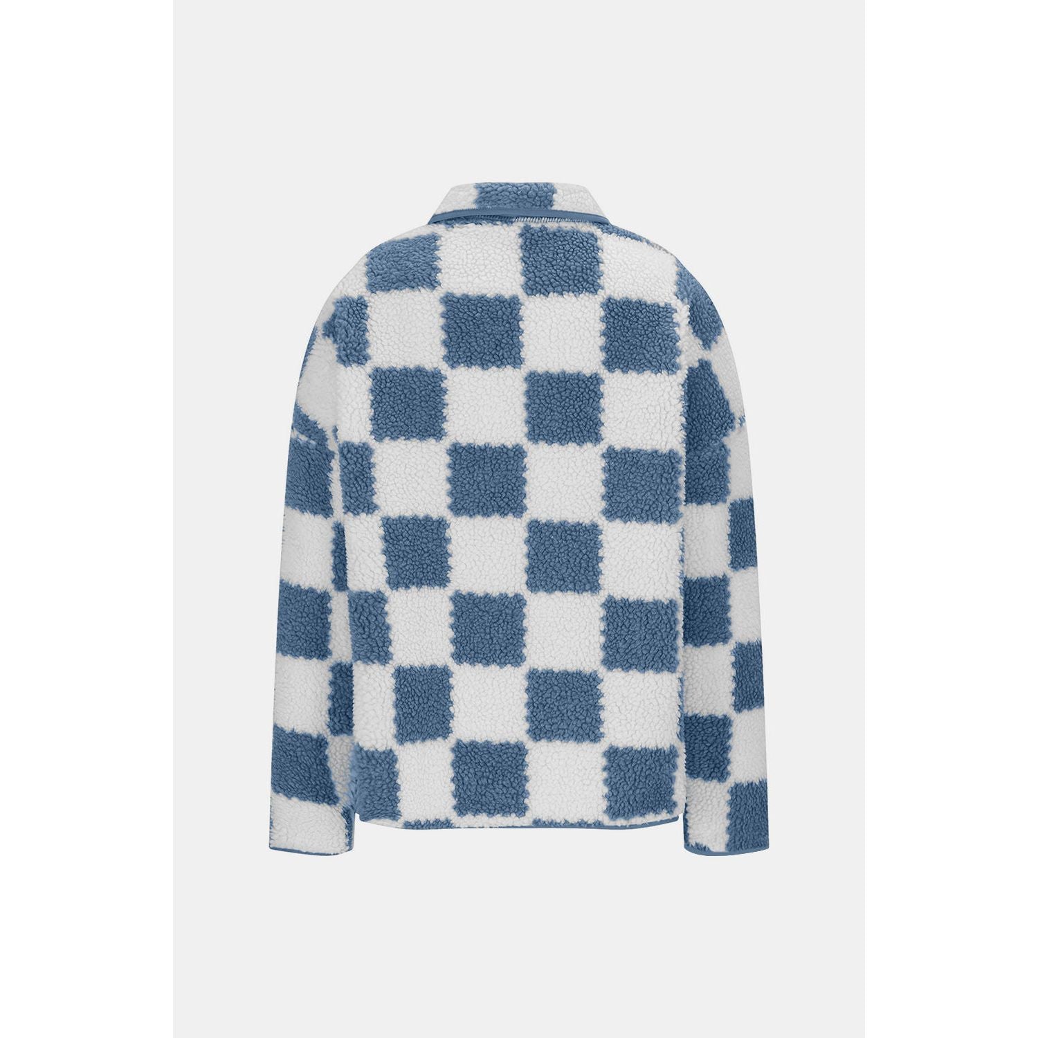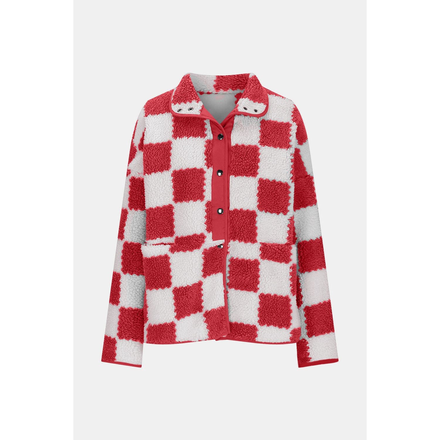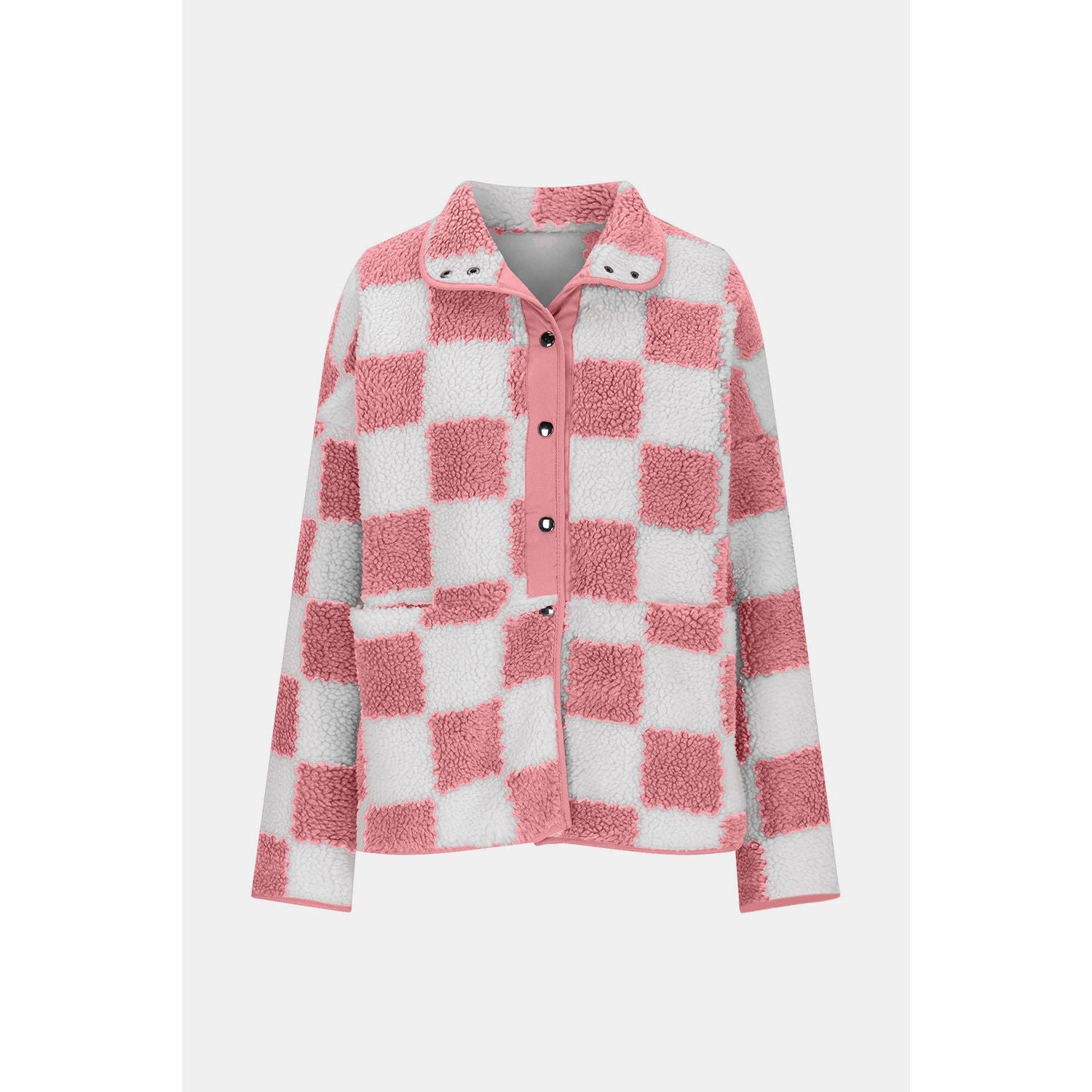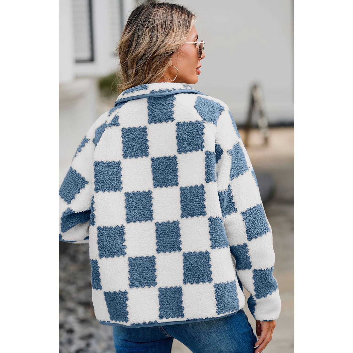 Checkered Snap Down Long Sleeve Teddy Jacket
