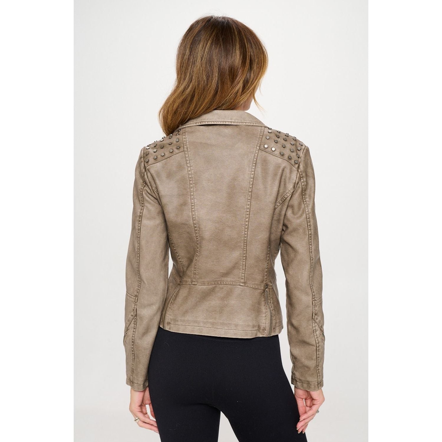 Coalition LA Studded Classic Moto Faux Leather Jacket