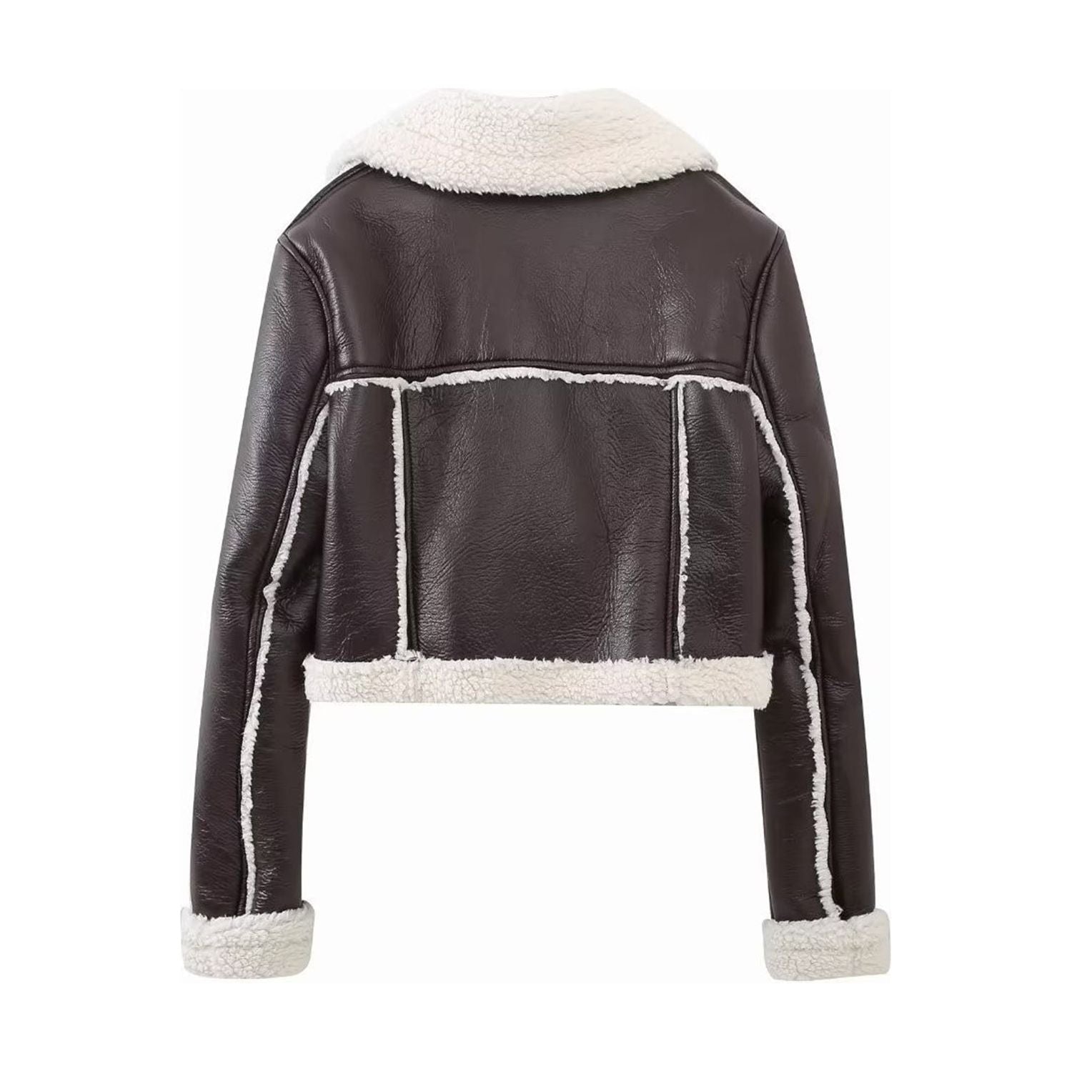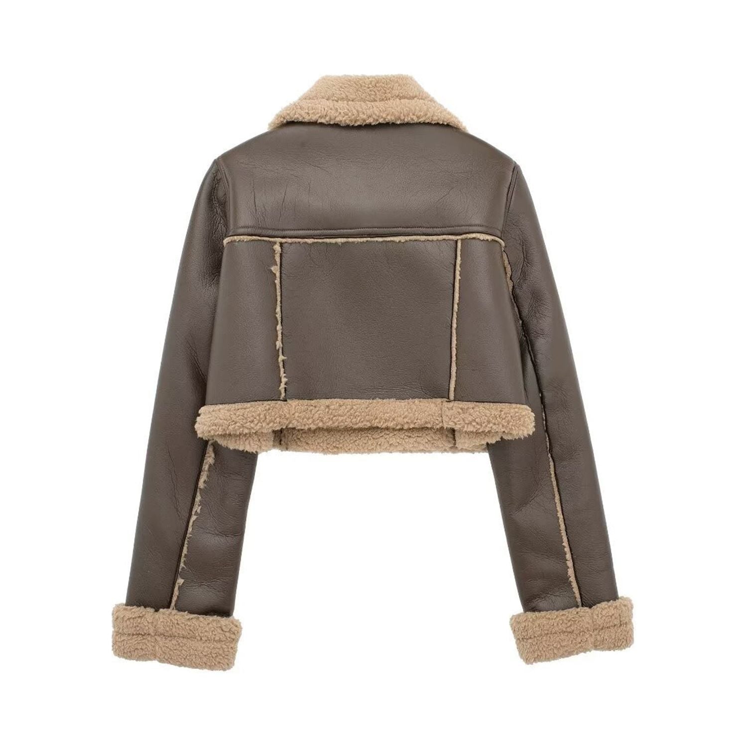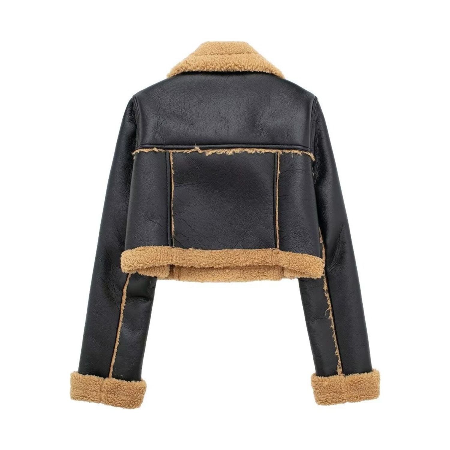 Collared Neck Long Sleeve Plush Cropped Jacket