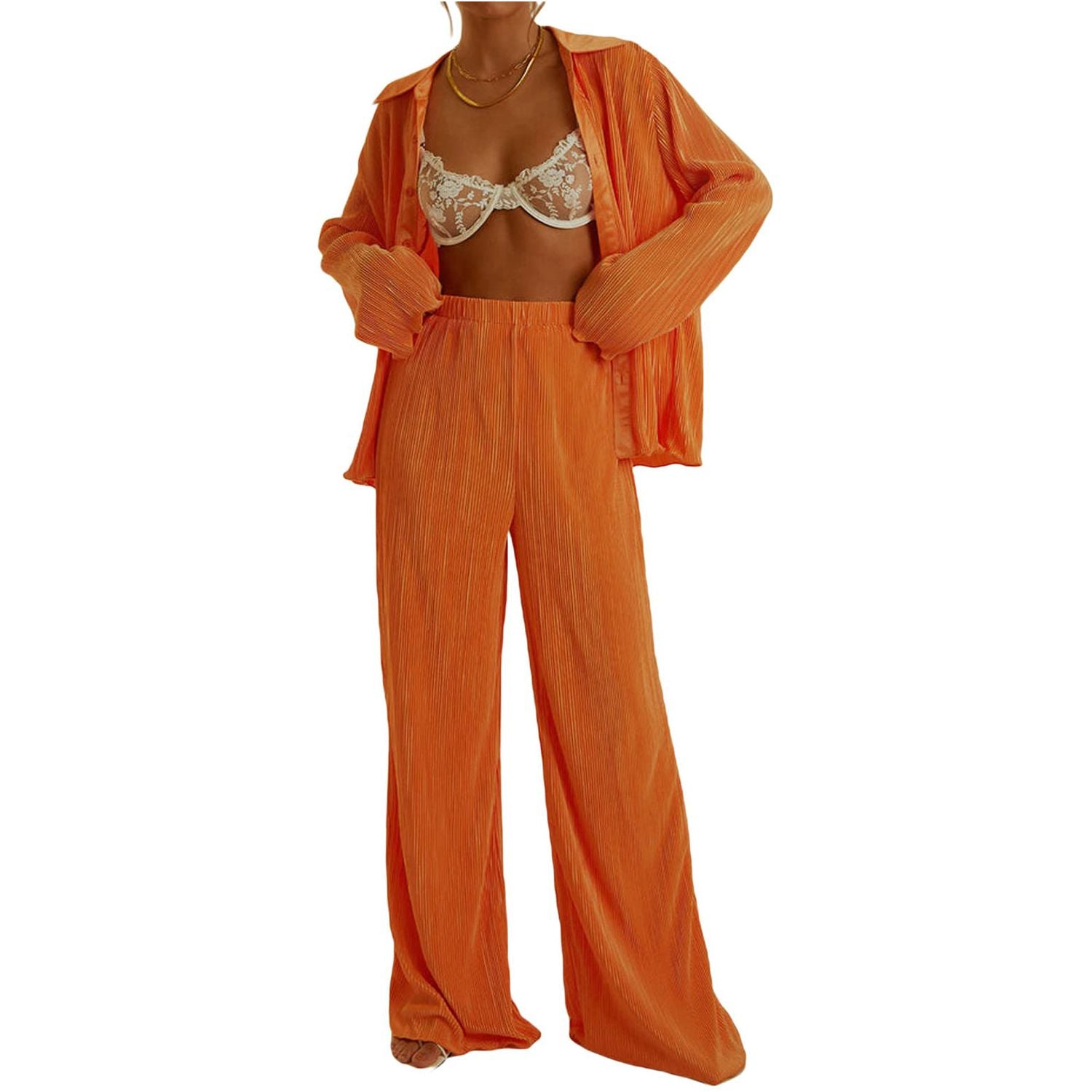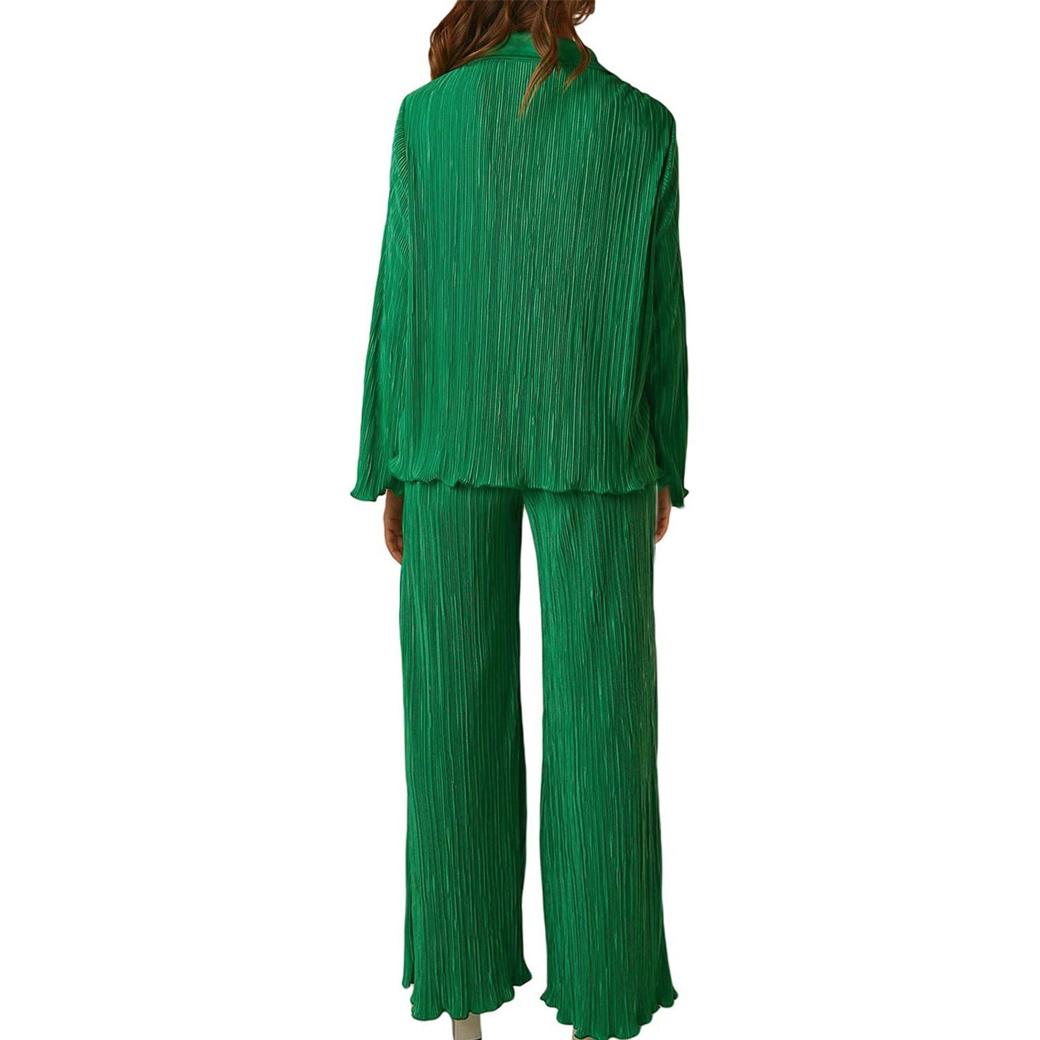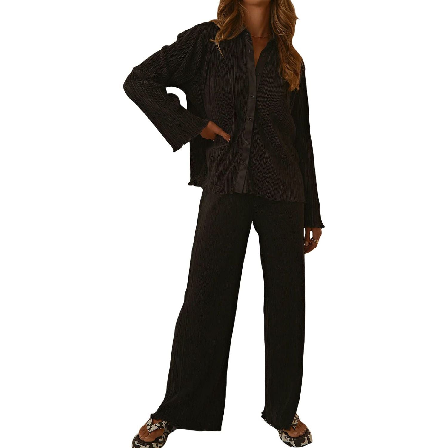 Collared Neck Long Sleeve Top and Pants Lounge Set