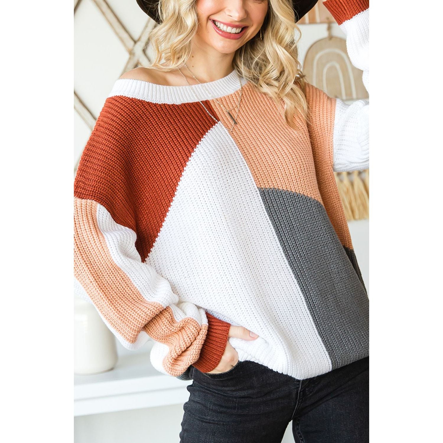 Color Block Drop Shoulder Long Sleeve Sweater