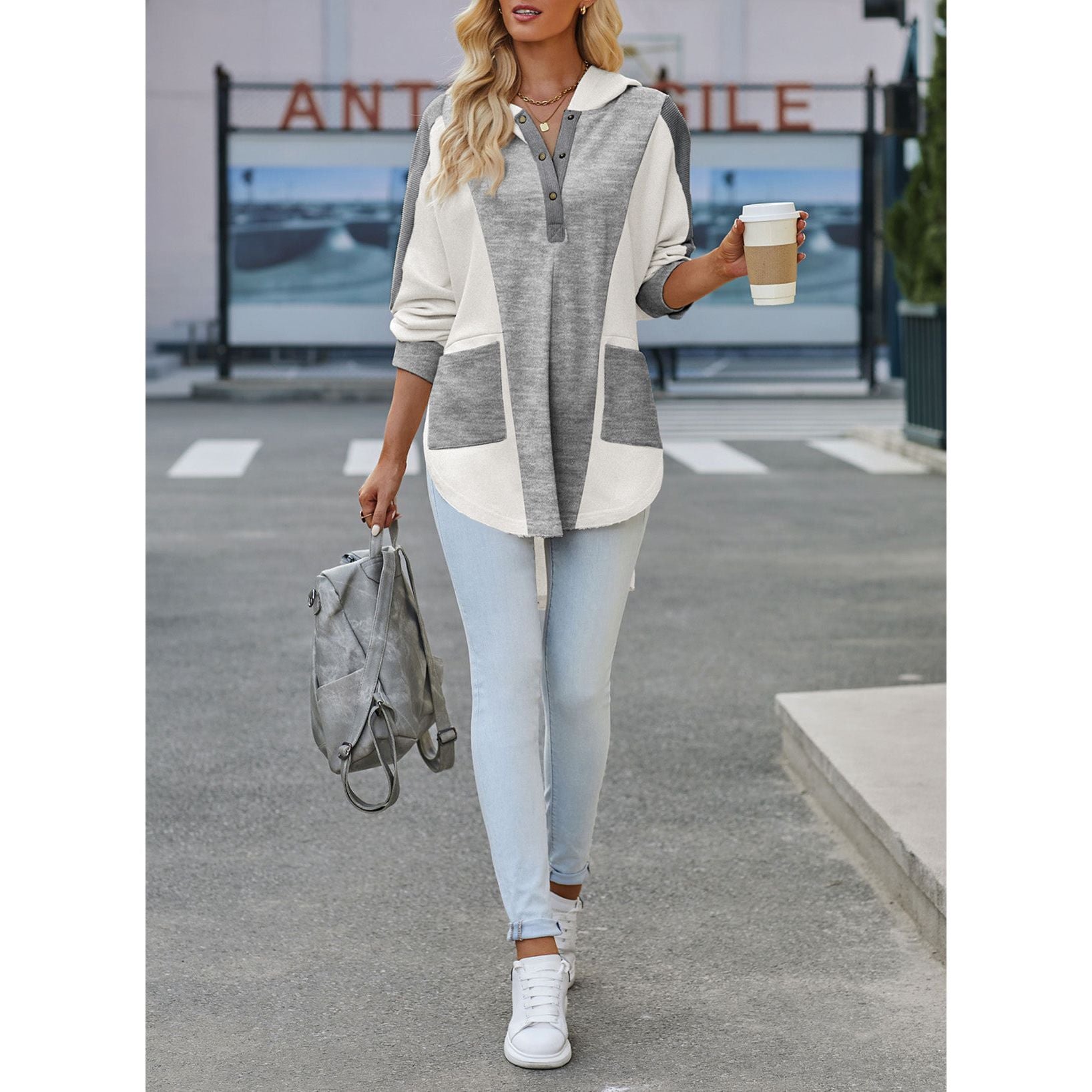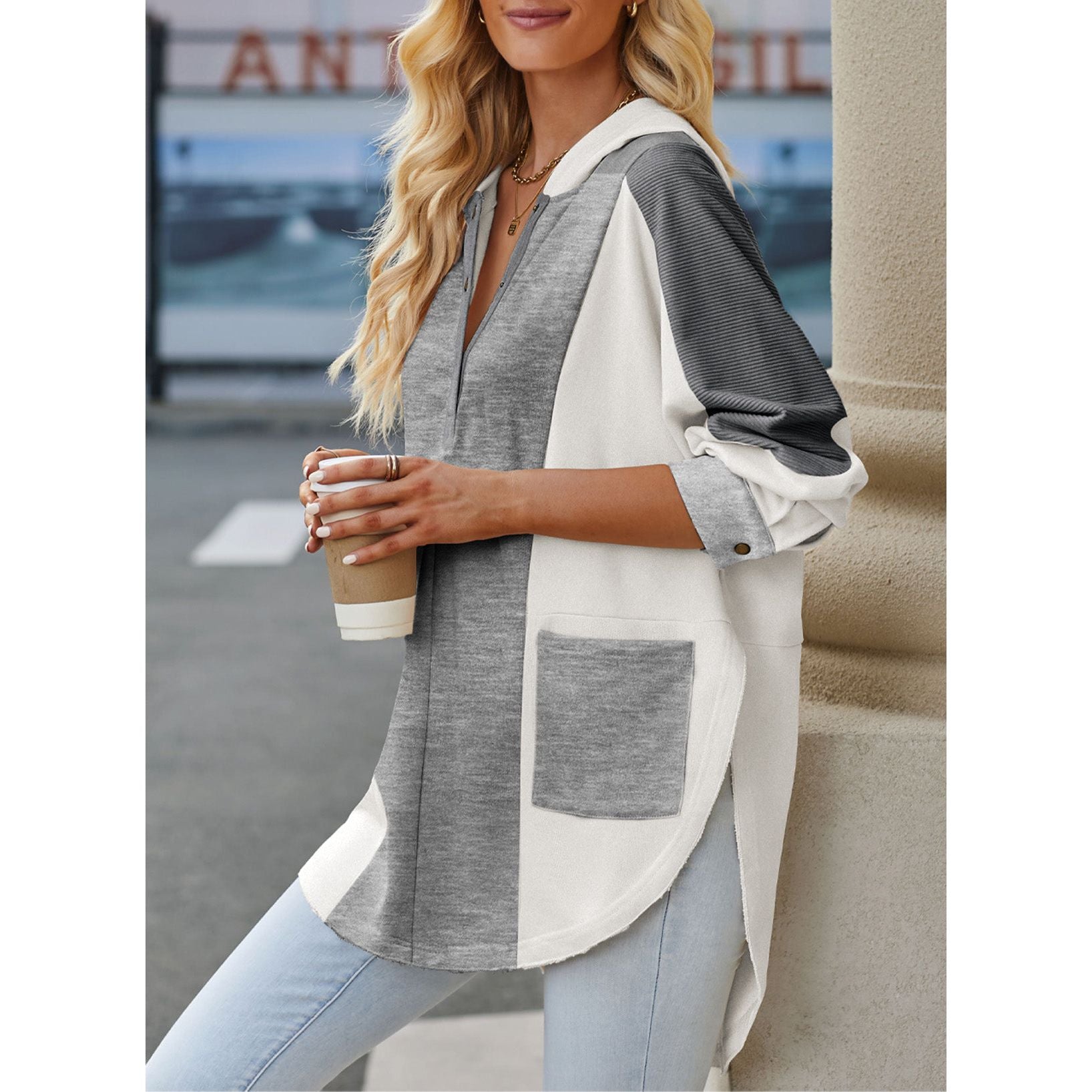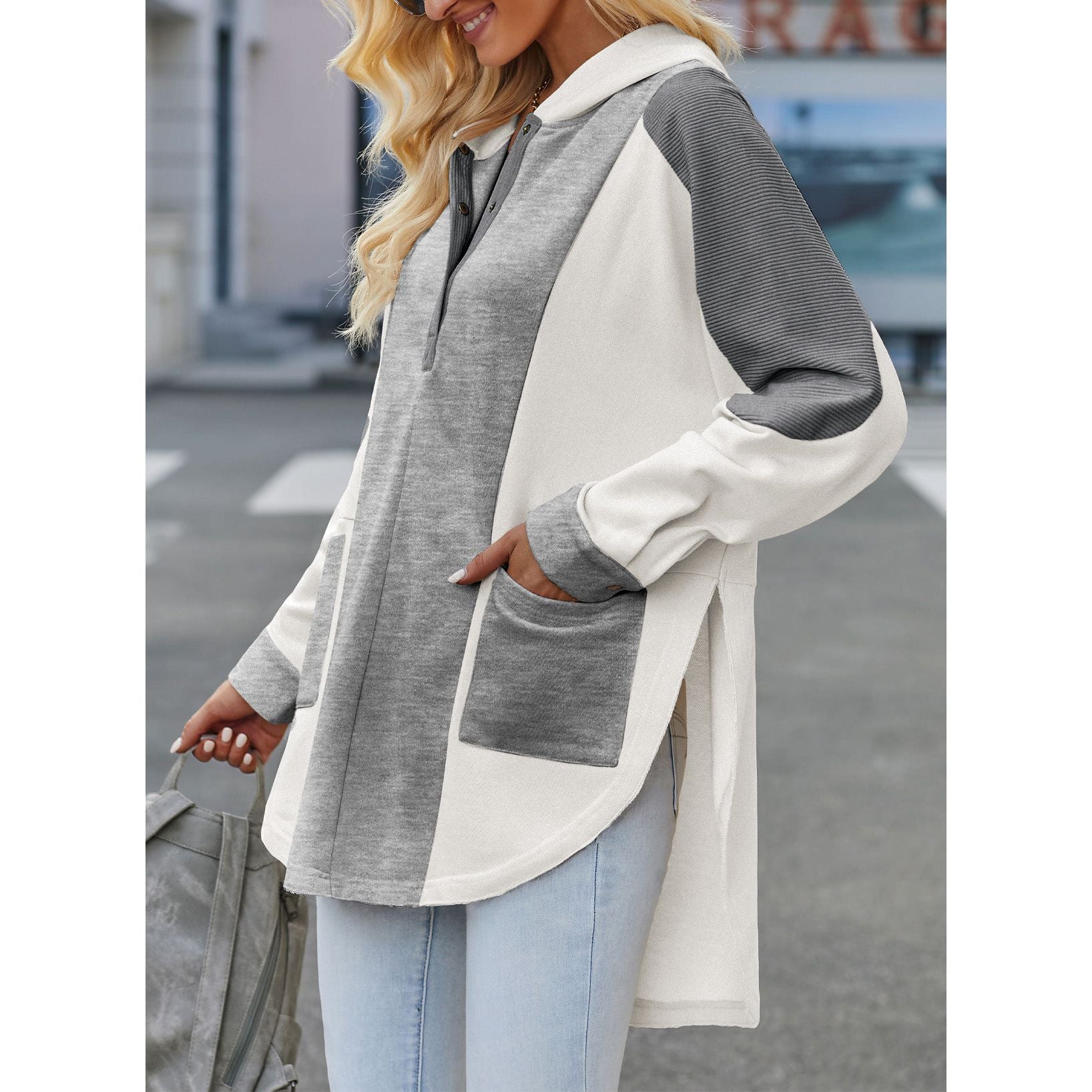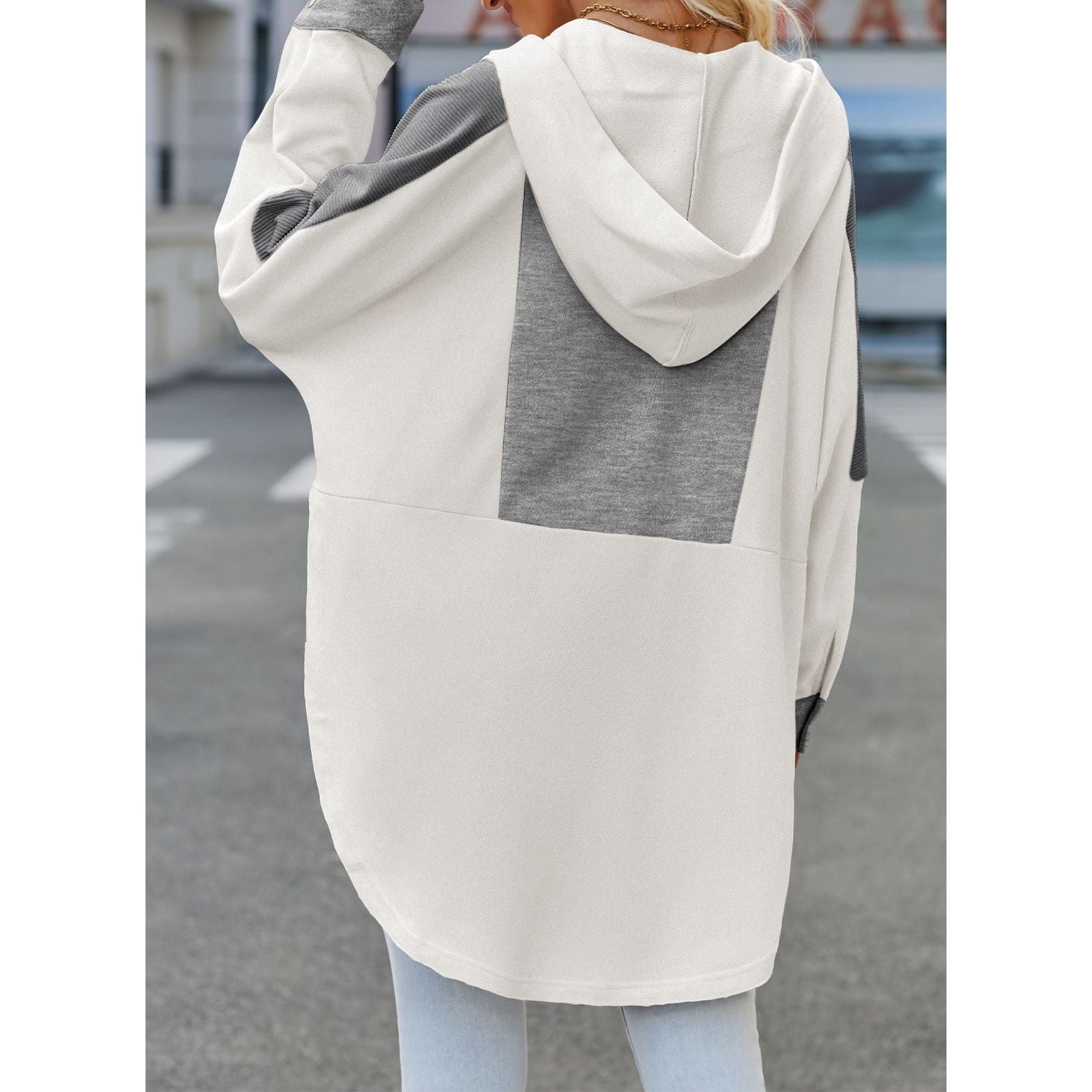 Color Block Quarter Snap Hoodie