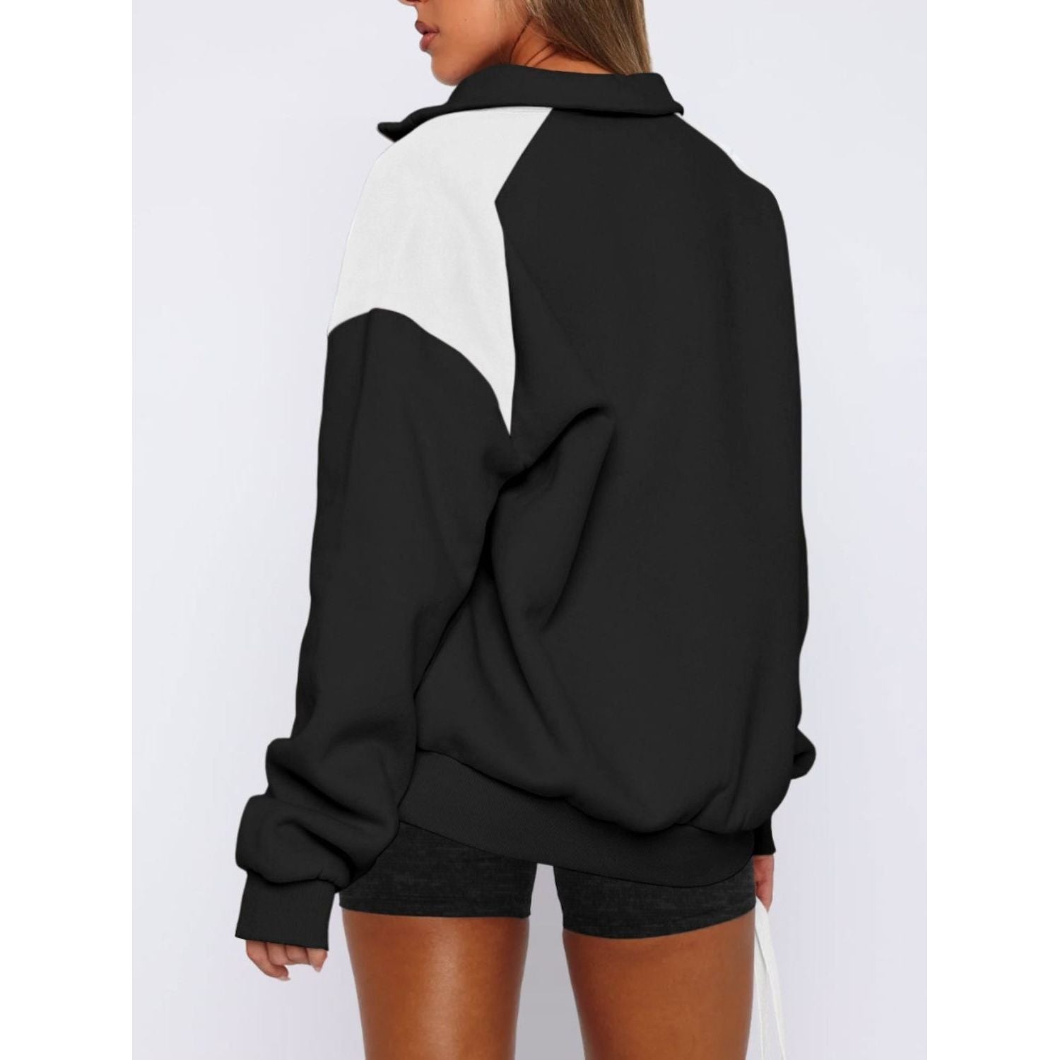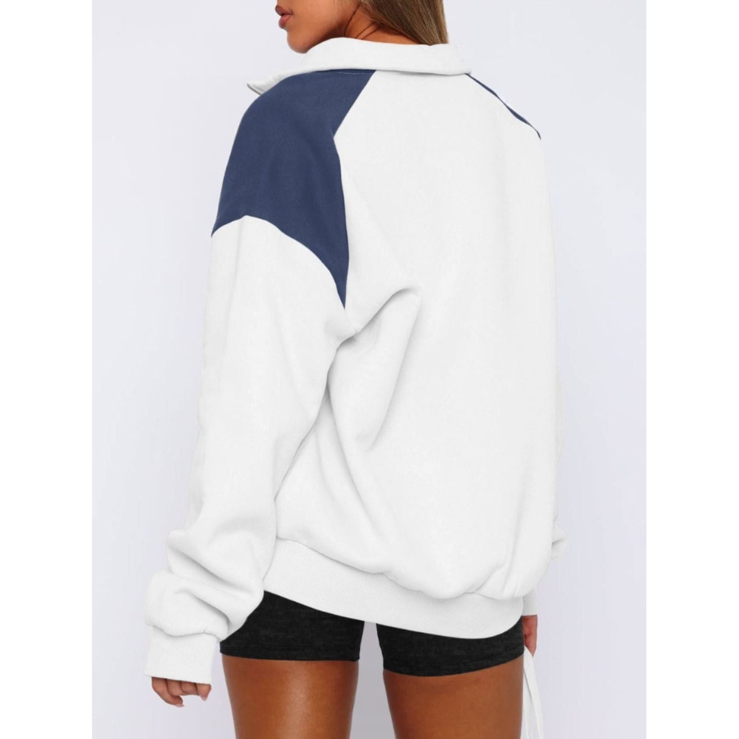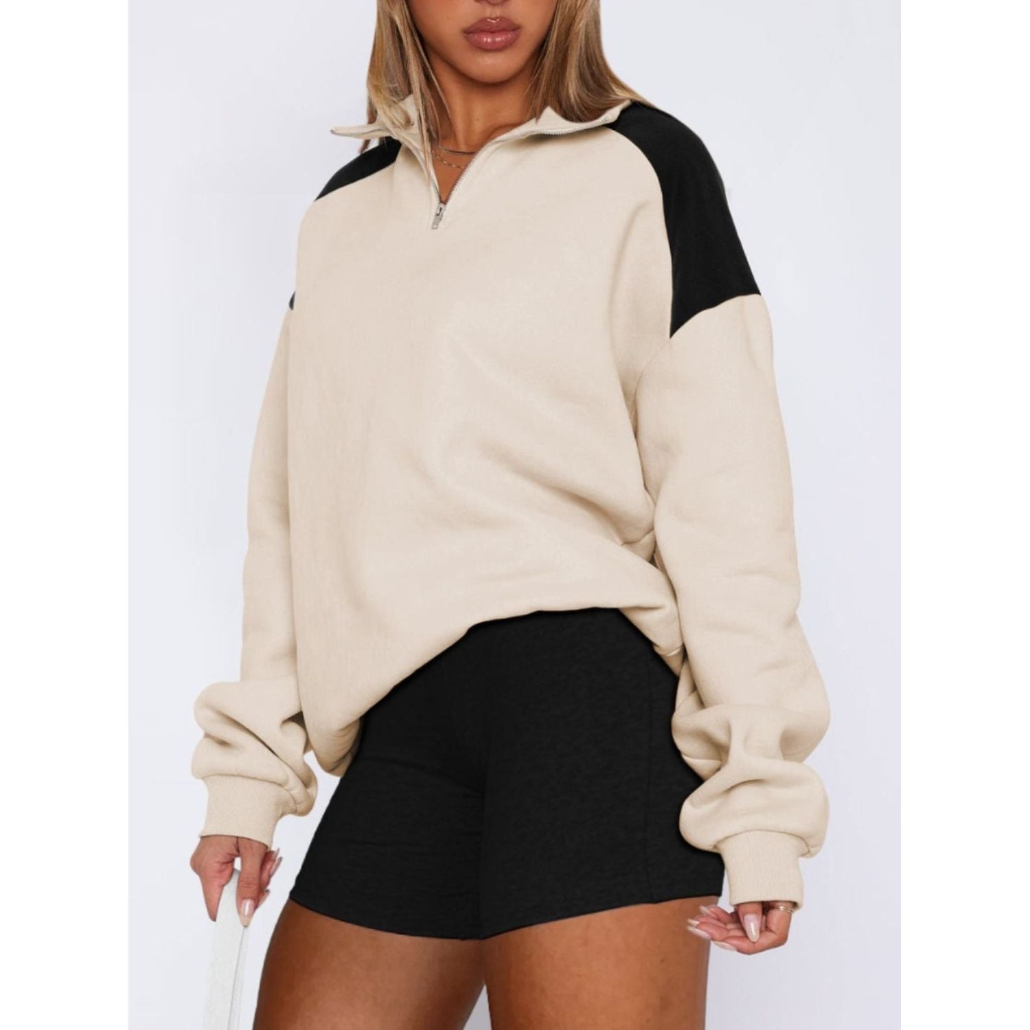 Contrast Quarter Zip Long Sleeve Sweatshirt