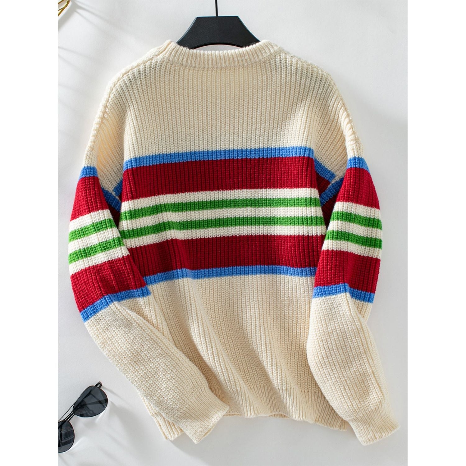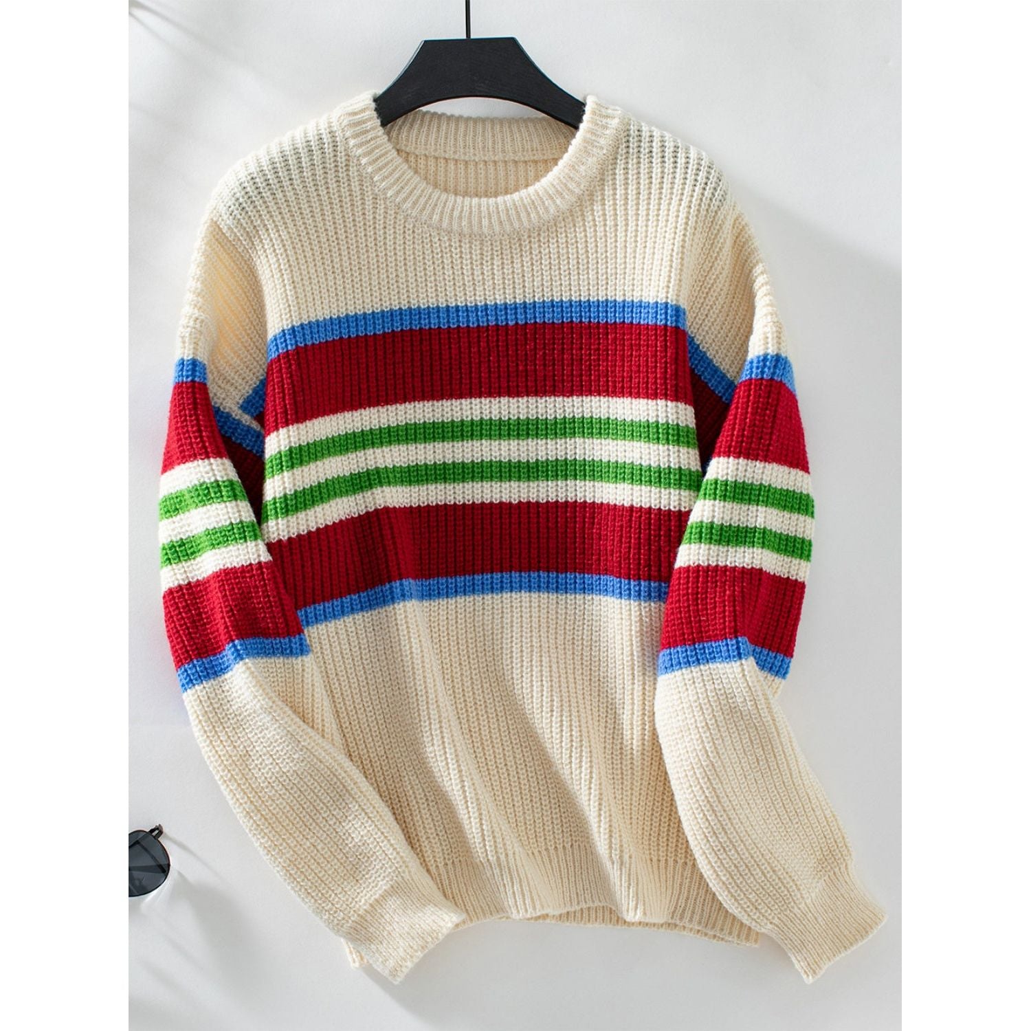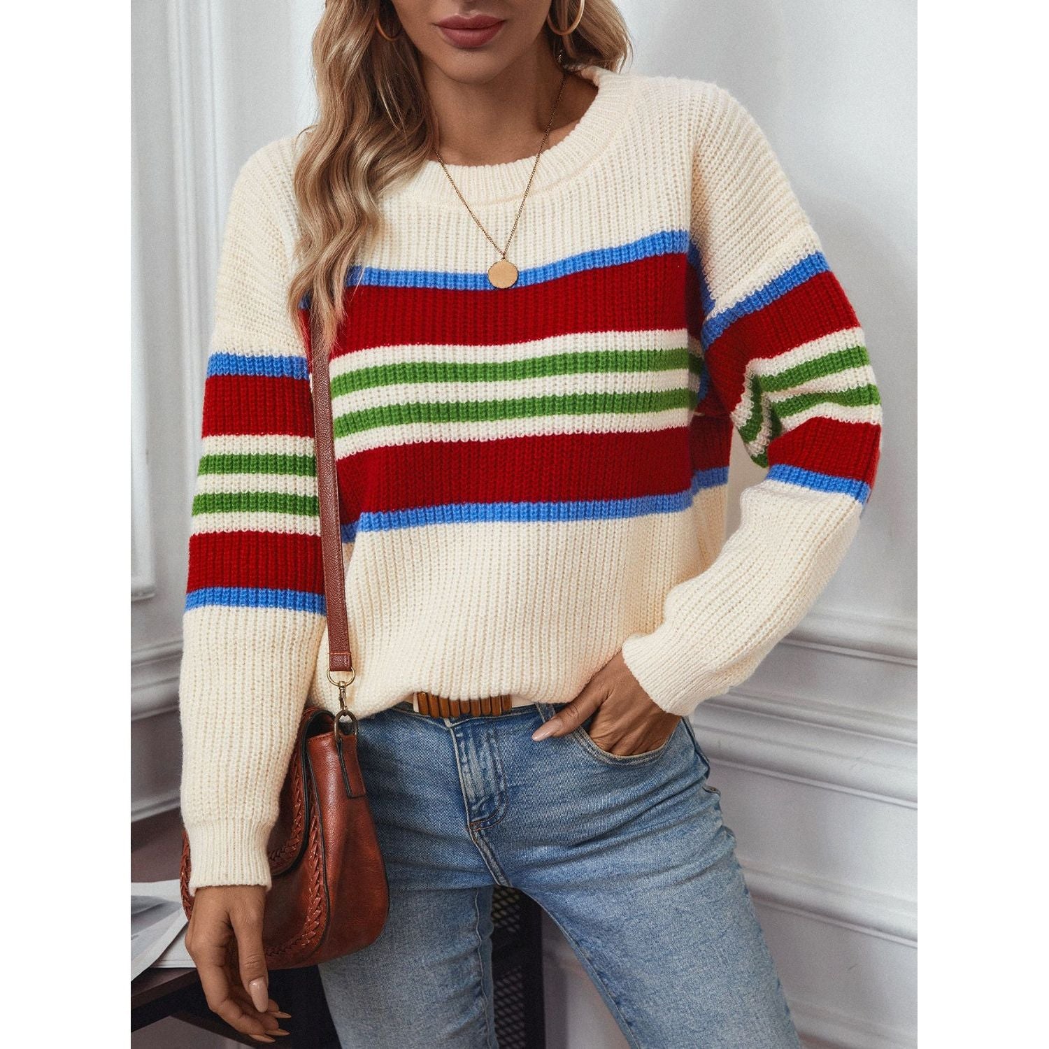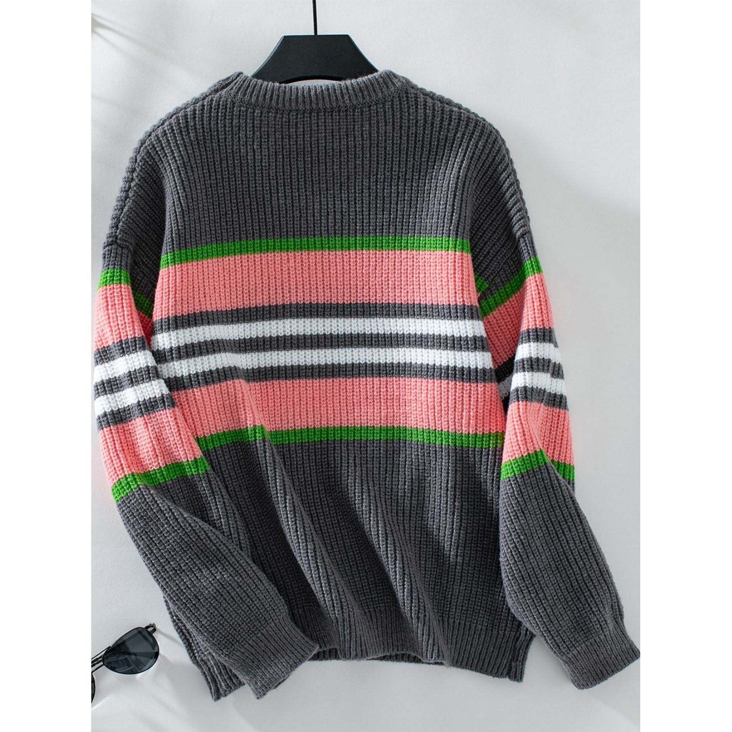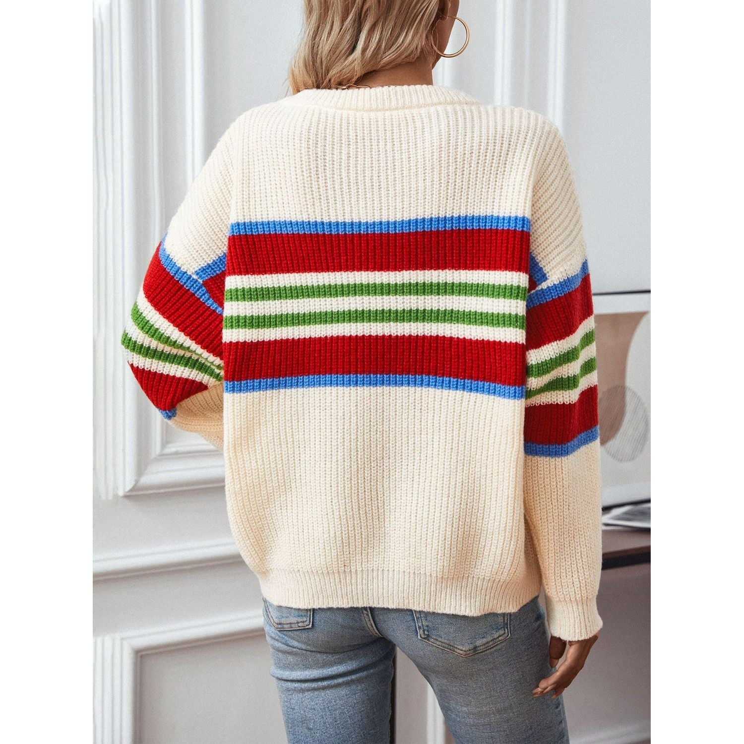 Contrast Stripes Round Neck Long Sleeve Sweater