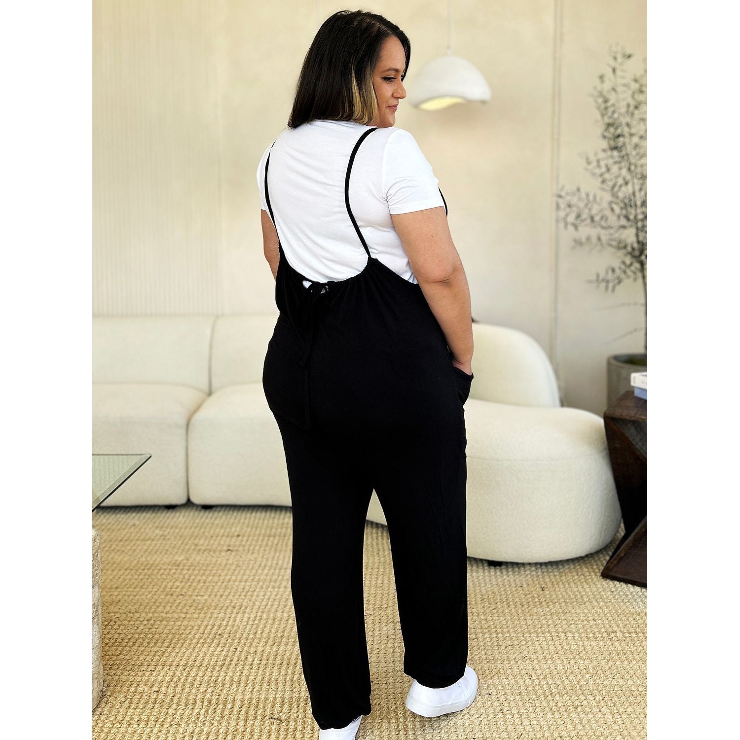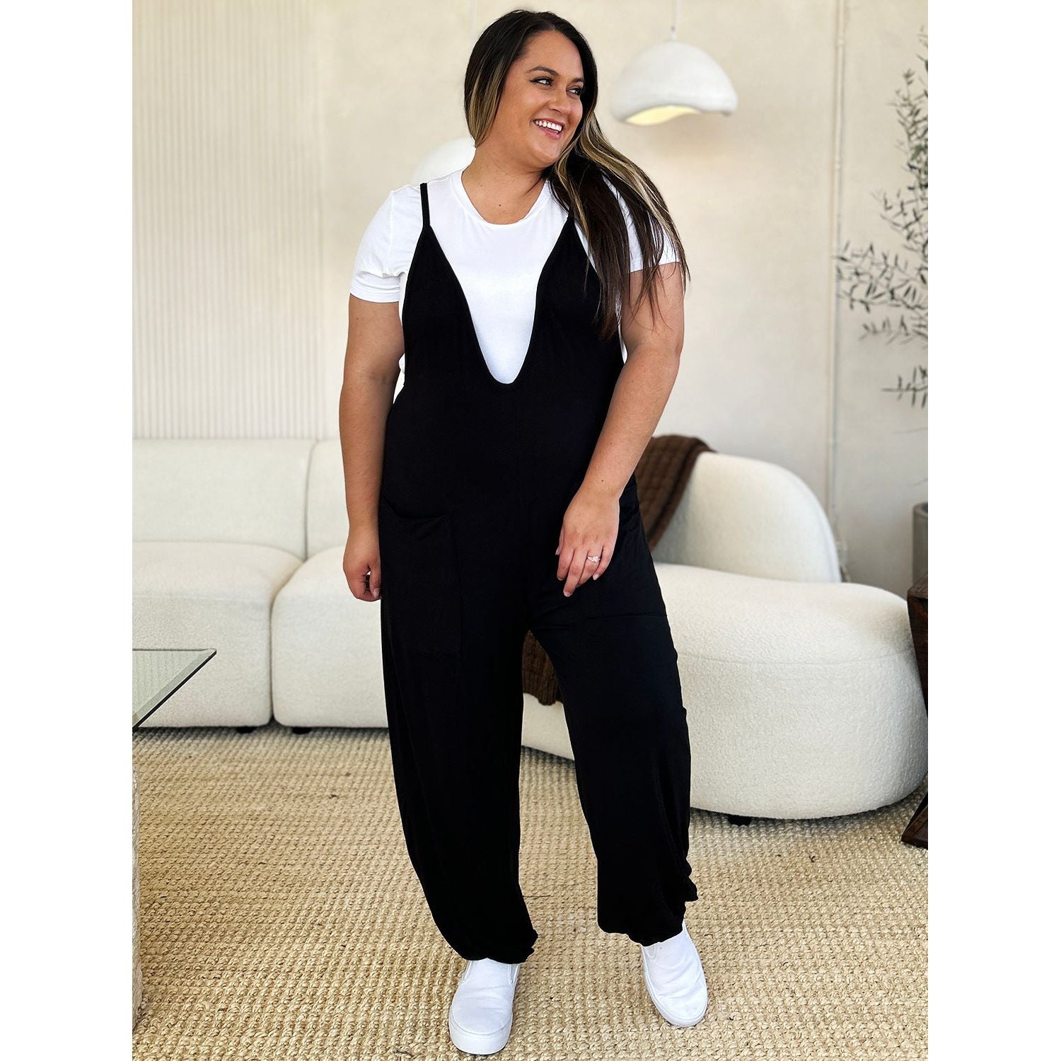 Culture Code Full Size Plunge Sleeveless Jumpsuit with Pockets