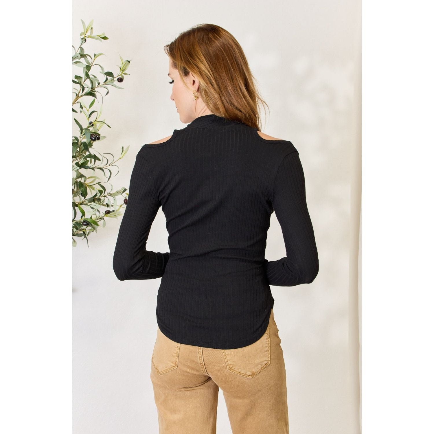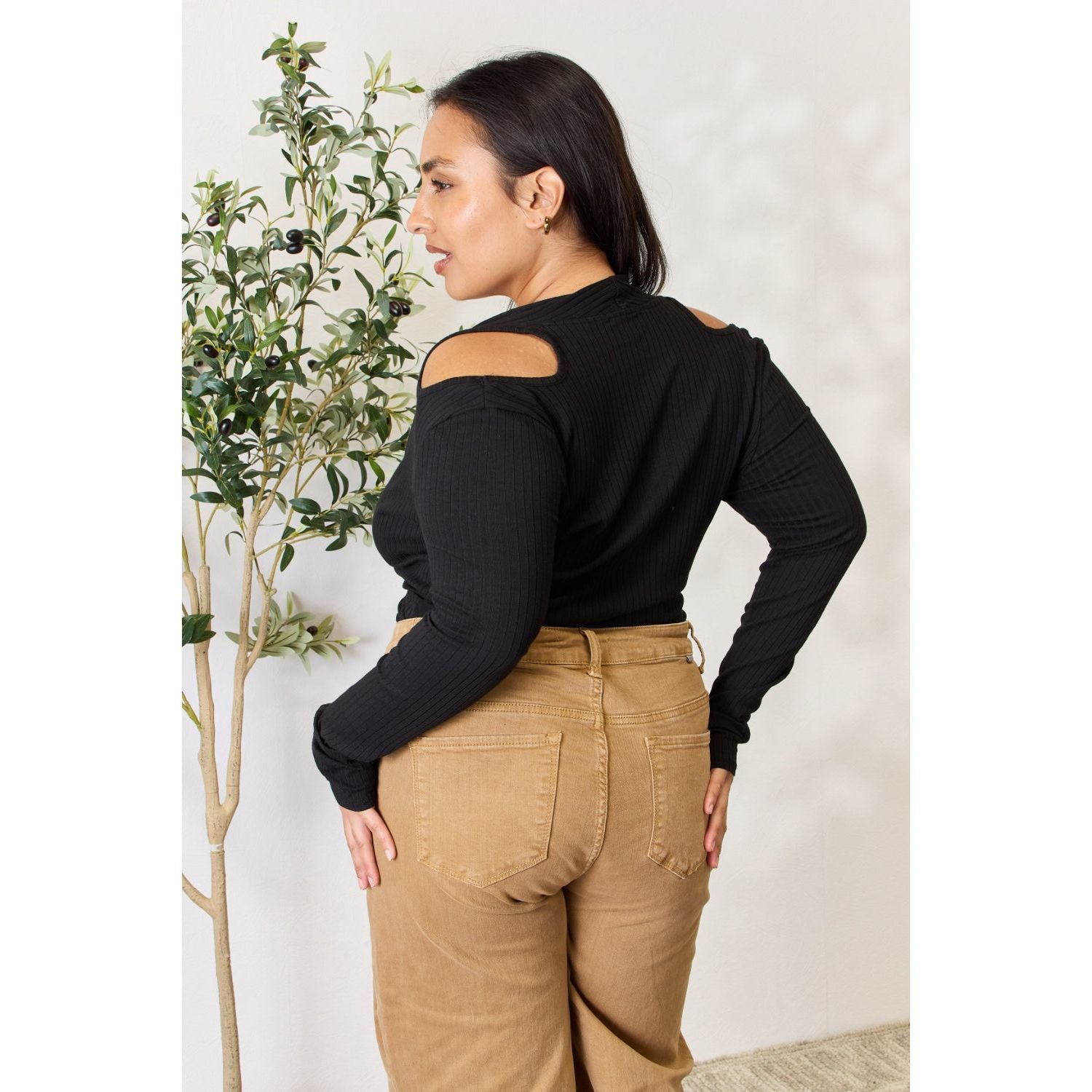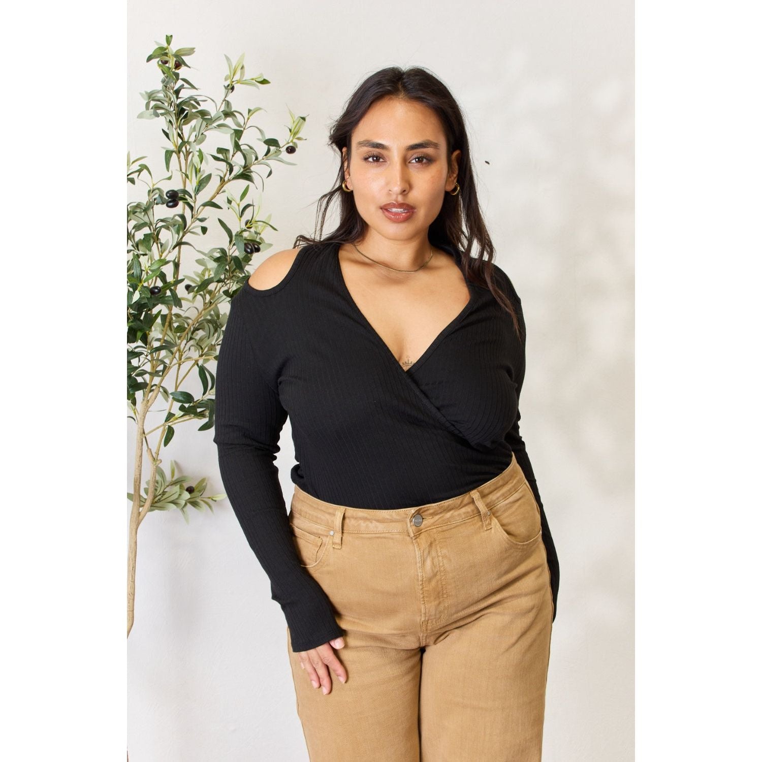 Culture Code Full Size Ribbed Surplice Cold Shoulder Top