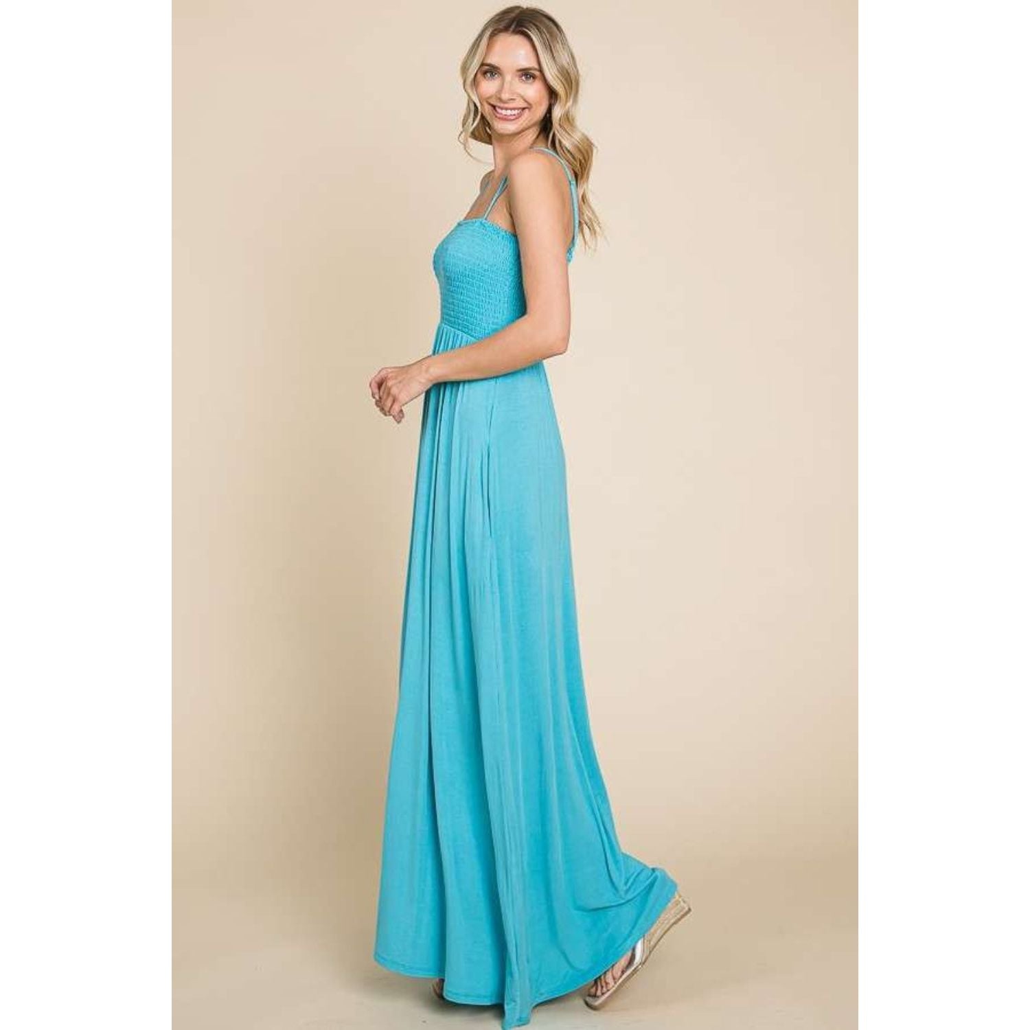 Culture Code Full Size Smocked Cami Maxi Dress with Pockets